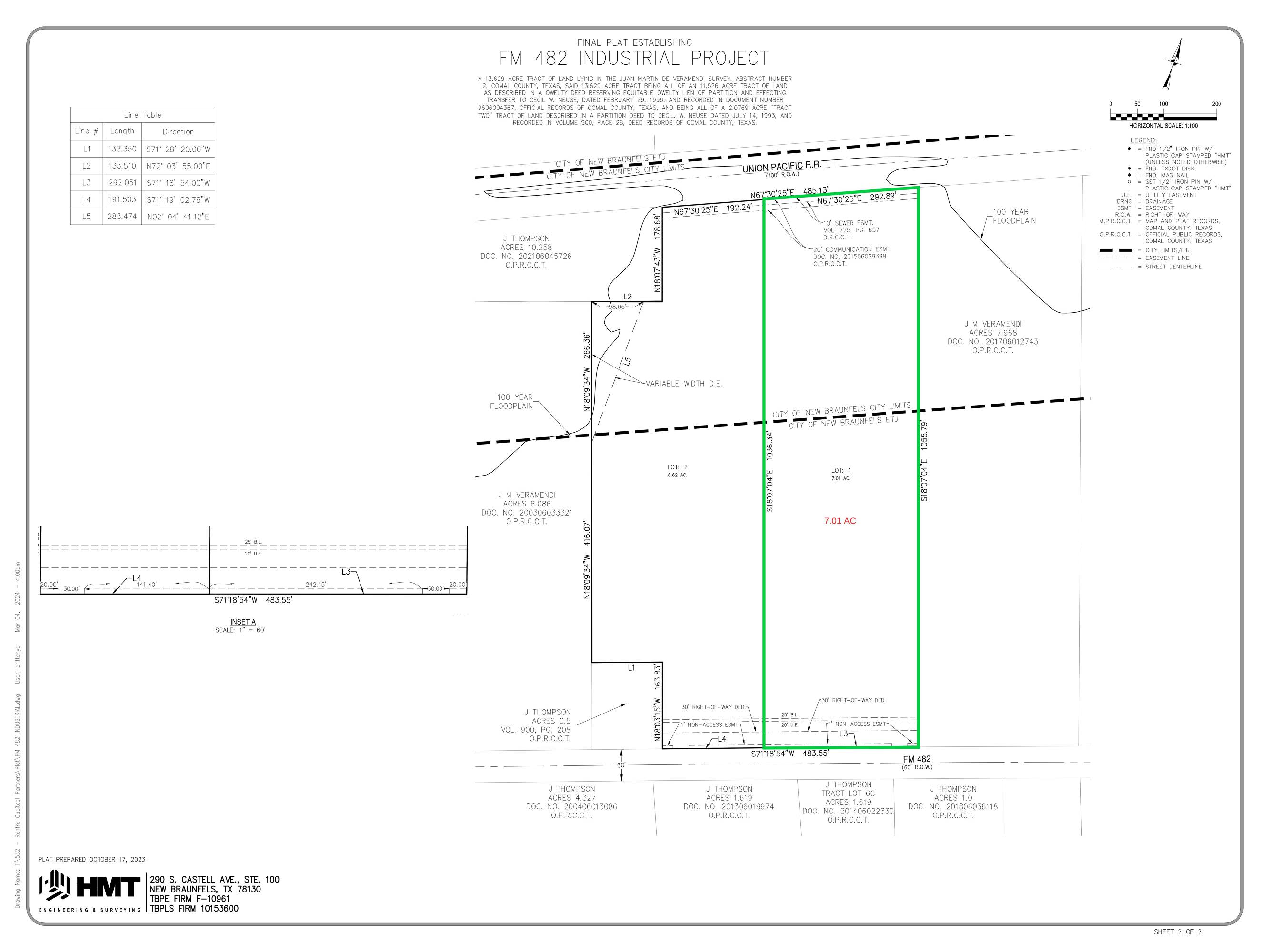 This 7.01-acre industrial property is located at 4868 FM 482 Lot#1, New Braunfels, TX. The site includes water, electric, and sewer utilities. Zoned M-2 within the New Braunfels City Limits, the property also has partial ETJ inclusion. This property is suited for industrial expansion or land development projects.
