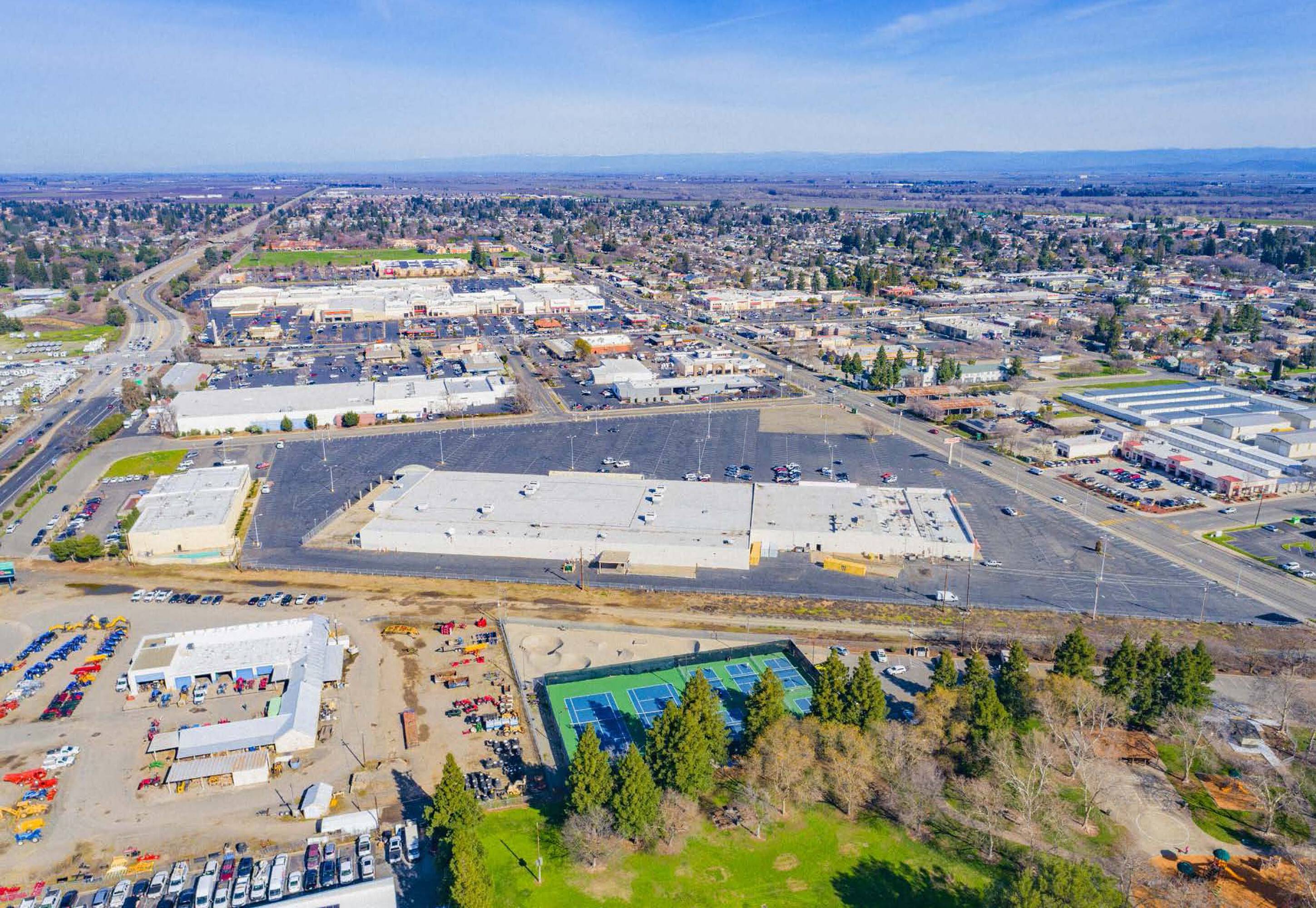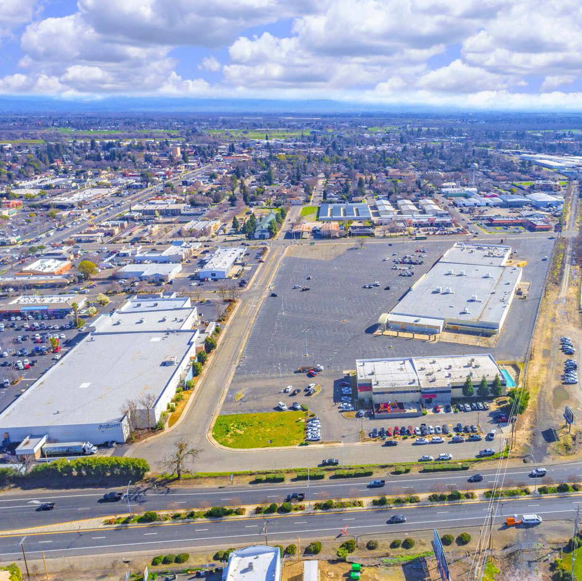 This 13.4-acre retail site is located within a quarter mile of both Highway 99 and Highway 20 in Yuba City. The property includes a 122,078 square foot building constructed in 1975, comprising two sections: one with 34,866 square feet consisting of 5 retail spaces, and a single space of approximately 90,000 square feet formerly occupied by K-mart. The site is an assemblage of three separate parcels, with the easternmost parcel featuring 456 square feet of Gray Avenue frontage, potentially allowing for two or three separate pad sites suitable for quick service restaurants. The property benefits from marquee signage visible from Highway 99, which has a daily vehicle count of 37,080. It is also located within a quarter-mile of the Sutter Avenue/Highway 99 on and off-ramp. The property has frontage on Gray Avenue with traffic counts exceeding 13,100 vehicles per day. Nearby is the Yuba Sutter Marketplace, with retailers such as Burlington, Ross, JC Penney, and Verizon, reporting 3,600,000 visits per year. Other national retailers in the immediate vicinity include Target, Panera, Bank of America, and Chipotle. The property currently has several leases providing approximately $20,000 in monthly income plus pro-rata NNN reimbursements. This represents a retail development opportunity.