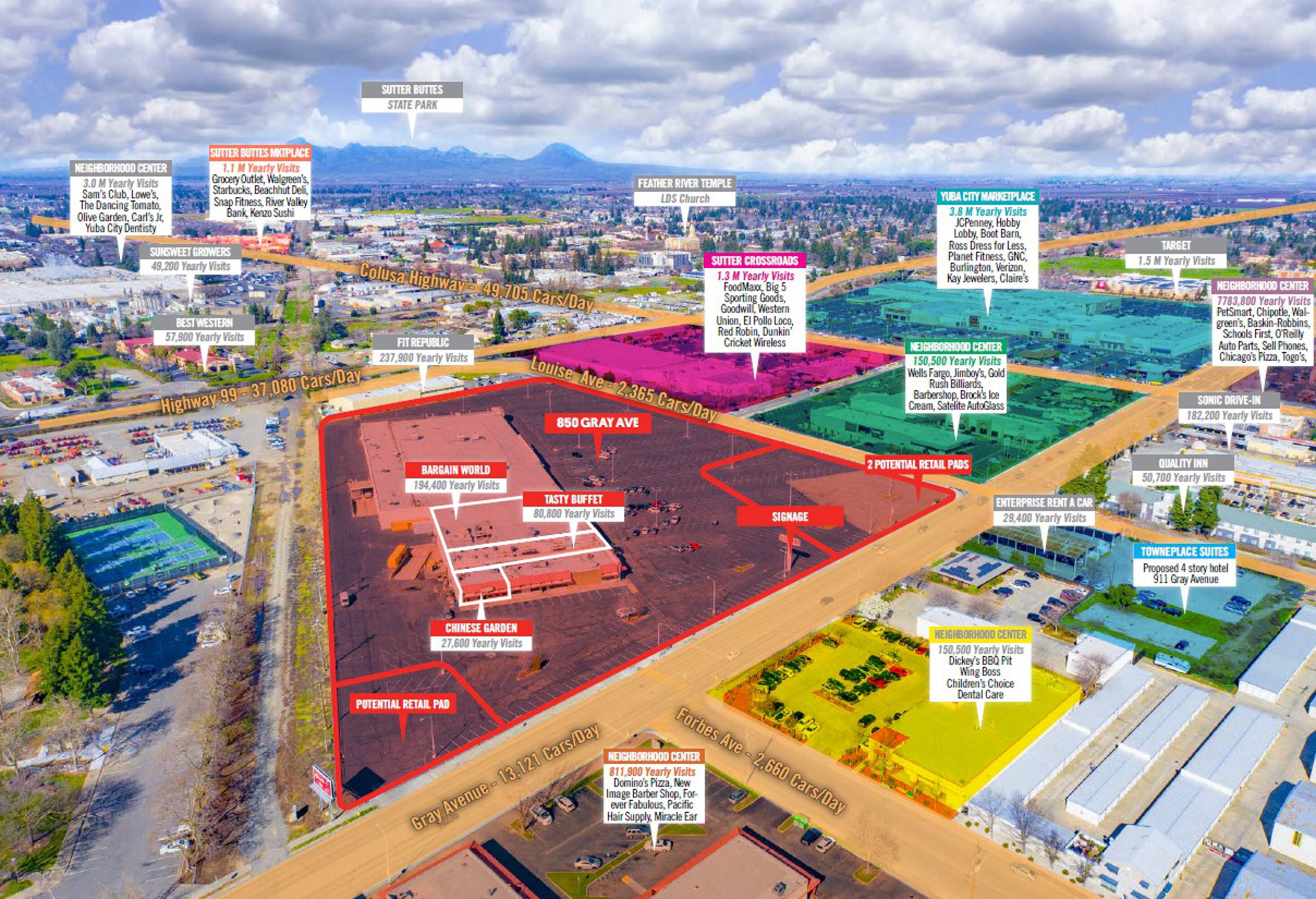 The property is located at 812-850 Gray Ave Yuba City, CA.