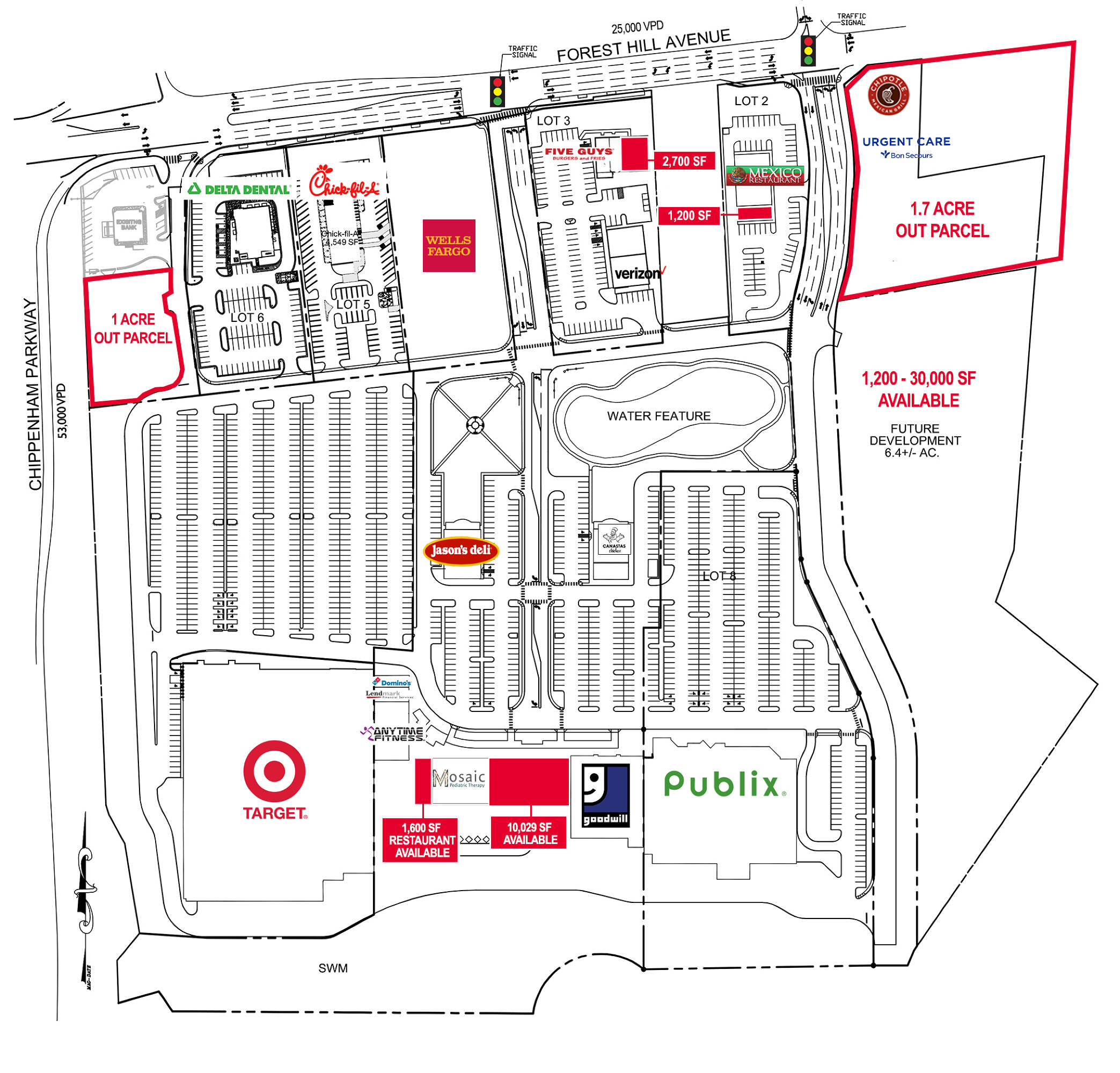Retail spaces and outparcels available near Publix and Target.