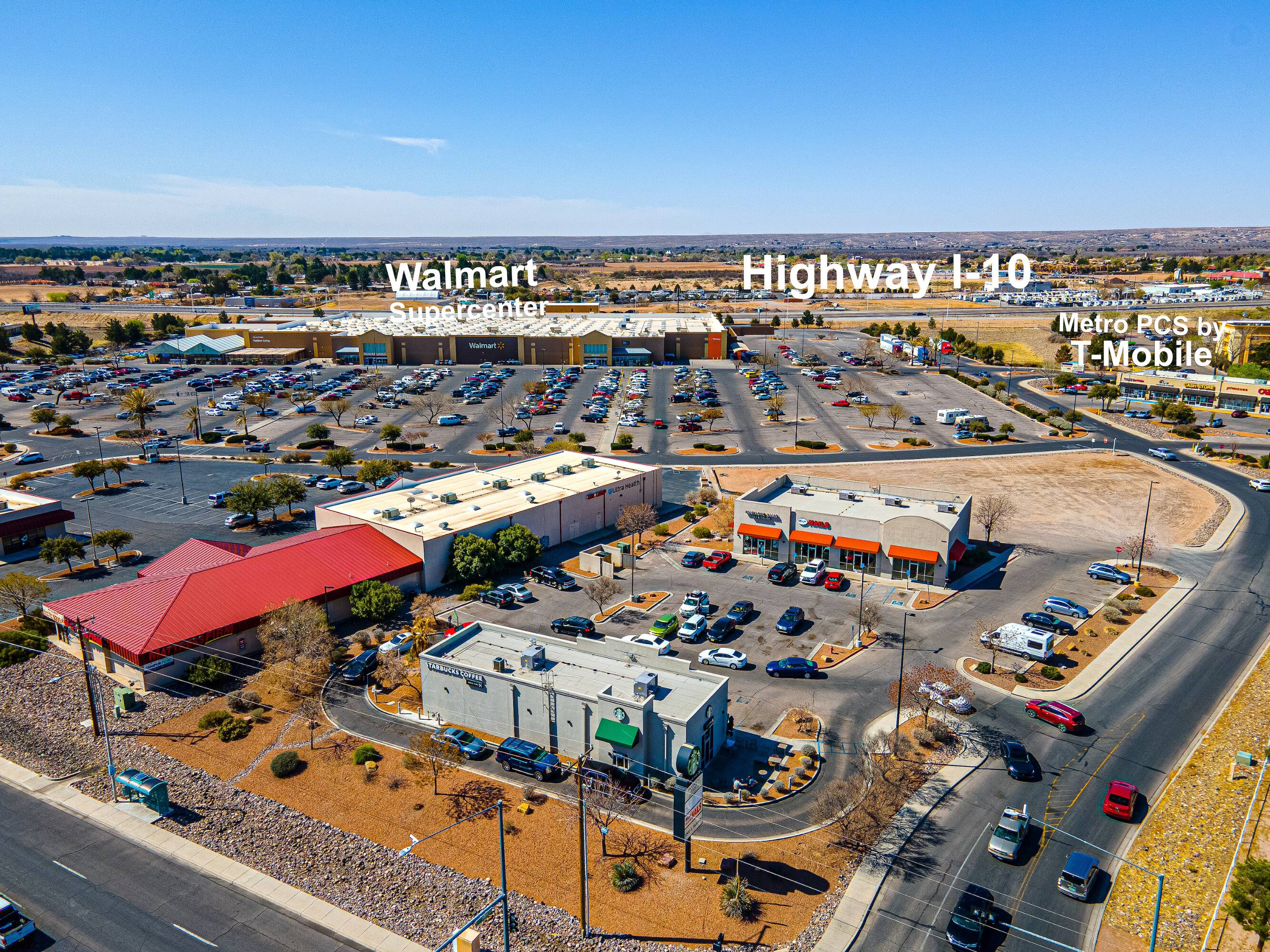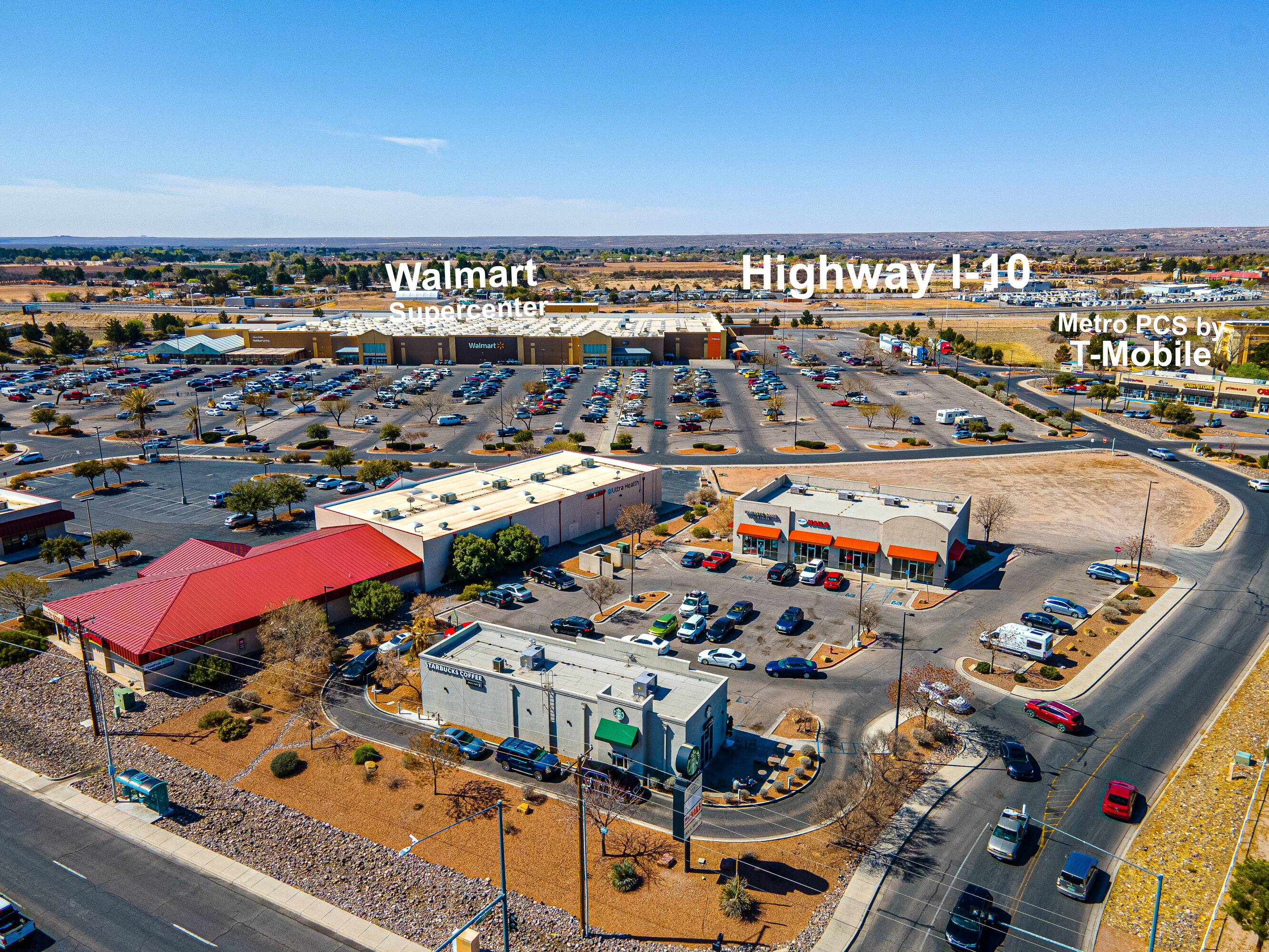 This 1,250 square foot retail space is located in a strip center anchored by Starbucks. The property is situated on a Walmart outparcel at a signalized corner in Las Cruces, offering a retail opportunity for small-shop users. The location benefits from Starbucks' daily traffic, Walmart's customer draw, and exposure from the hard signalized intersection. The property also offers outparcel visibility and the potential for impulse purchases, along with the credibility of national co-tenants. This space is suited for high-margin, small-footprint businesses.