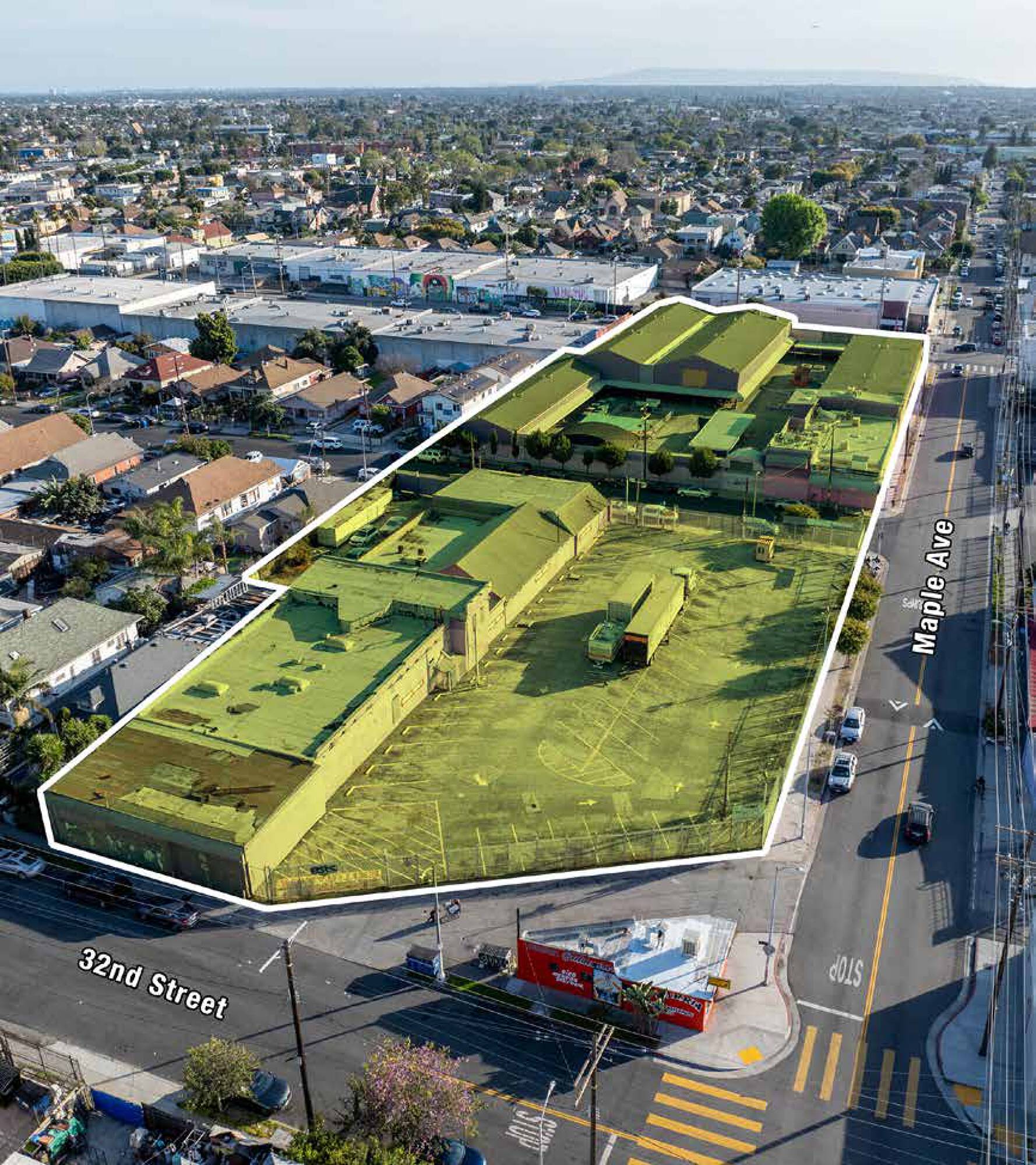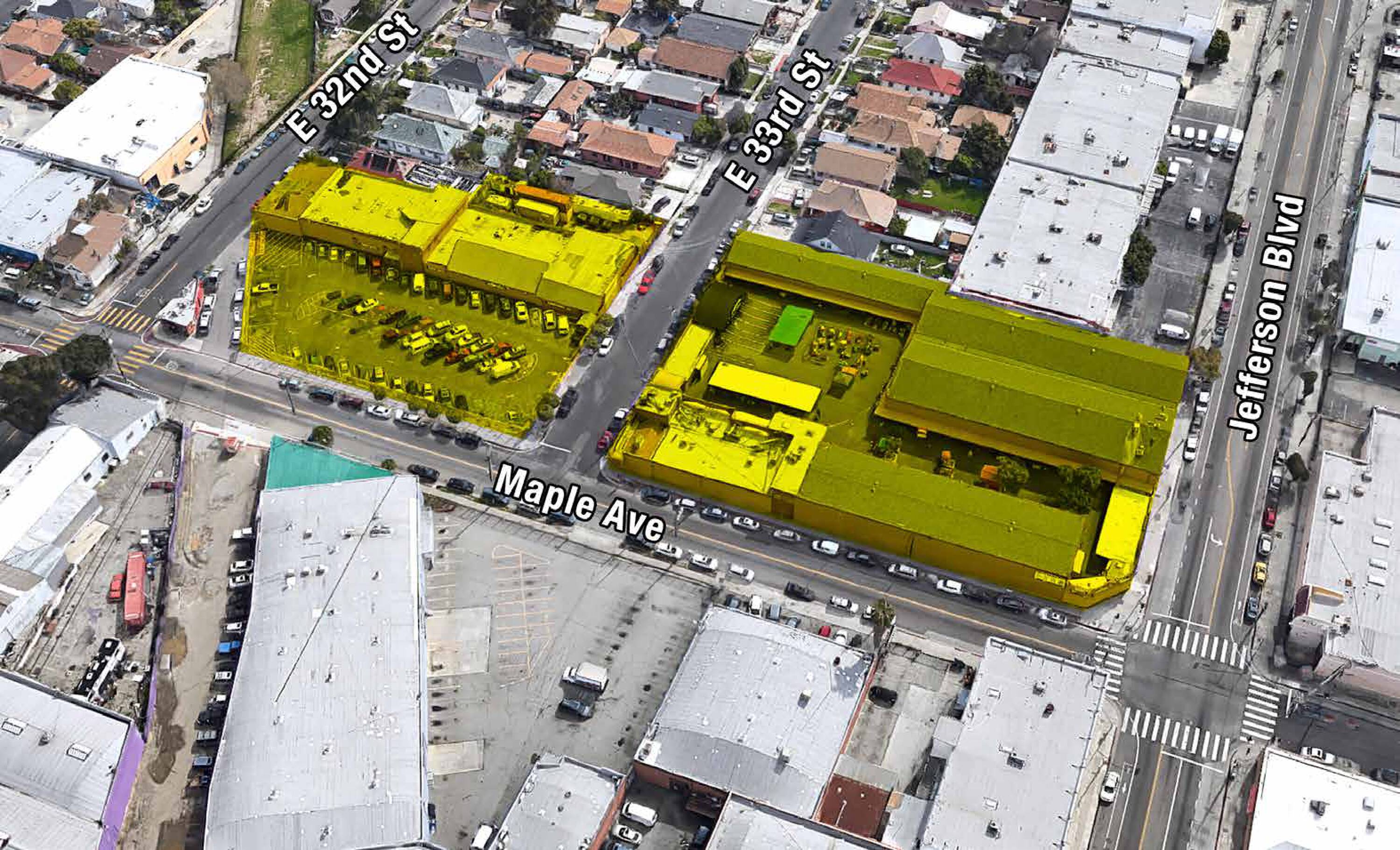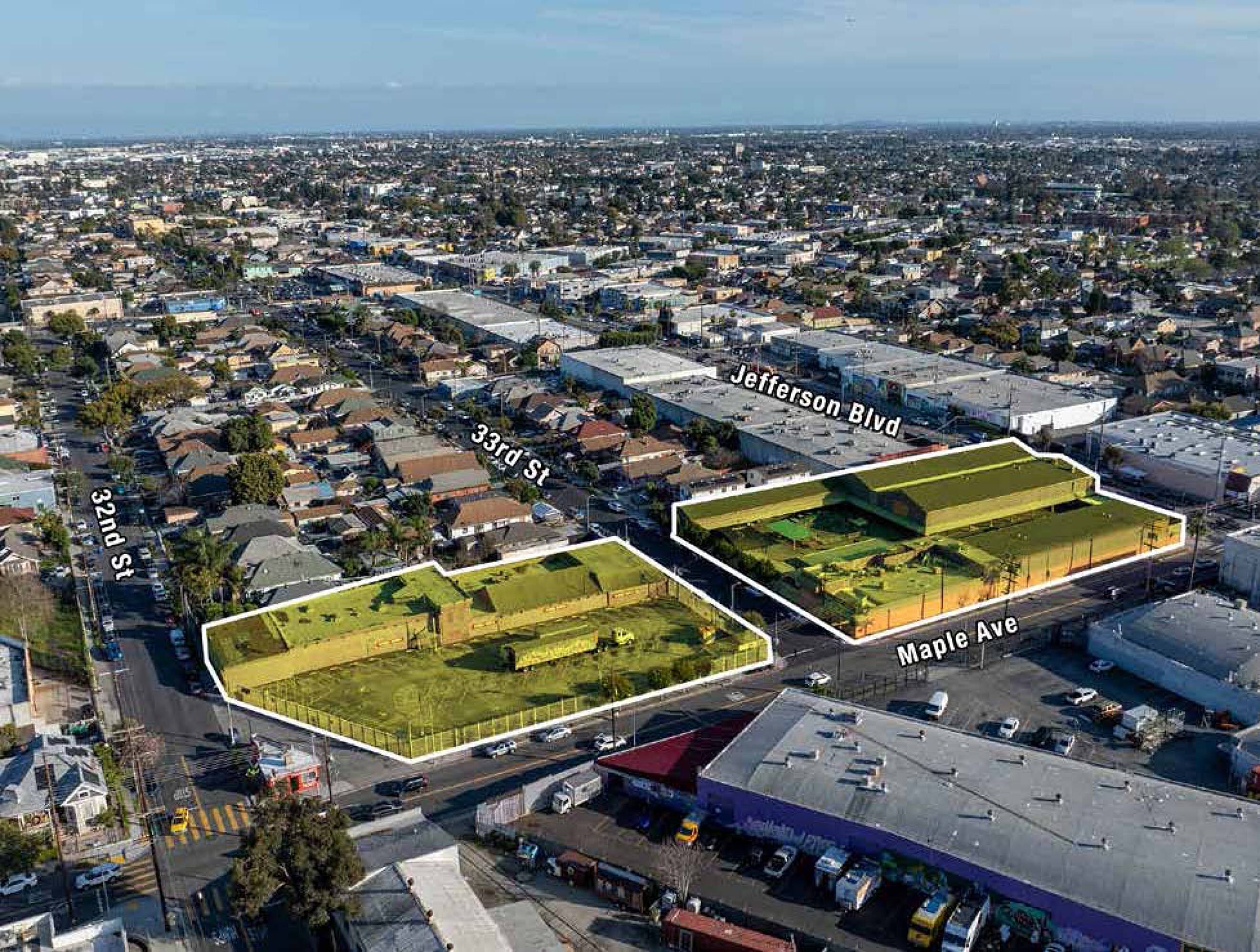 The property comprises four contiguous parcels situated block-to-block along Maple Ave between Jefferson Blvd and 33rd St, along with two parking lot parcels on 33rd St separated by an industrial building on two additional parcels. Totalling approximately 99,980 sq.ft. (2.3 acres), the site includes 47,575 sq.ft. of vacant buildings formerly used as the Los Amigos Retail Outlet/Swap Meet. Located in the Historic South-Central District of Los Angeles, the property is a short distance south of Downtown Los Angeles. USC, Bank of California Stadium, Exposition Park and the Natural History Museum are approximately 1/2-mile to the west. The South Park District, the Convention Center, Crypto.com Arena, and LA LIVE are also nearby. A Metro Bus Line stop in front of the property on Maple Ave provides access to light rail, rail, subway and bus destinations in Los Angeles County. The Harbor (110) and Santa Monica (I-10) Freeways are within one mile. This property offers an opportunity to reposition the site for various applications, including an open-air facility for a brewery, gym, food court or ghost kitchen. Other potential uses include a creative campus, charter school, artist community, or industrial compound. The site is also suitable for new commercial, residential, or mixed-use construction.