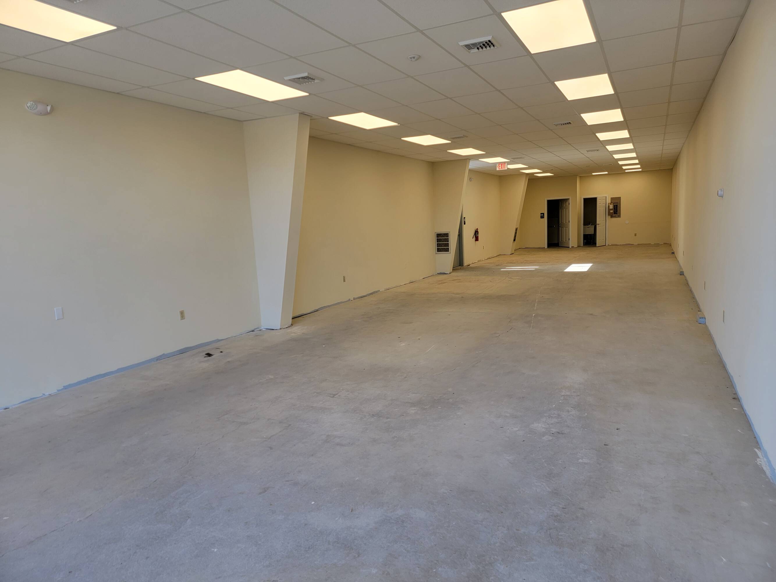 End-cap retail space with high ceilings and convenient access.
