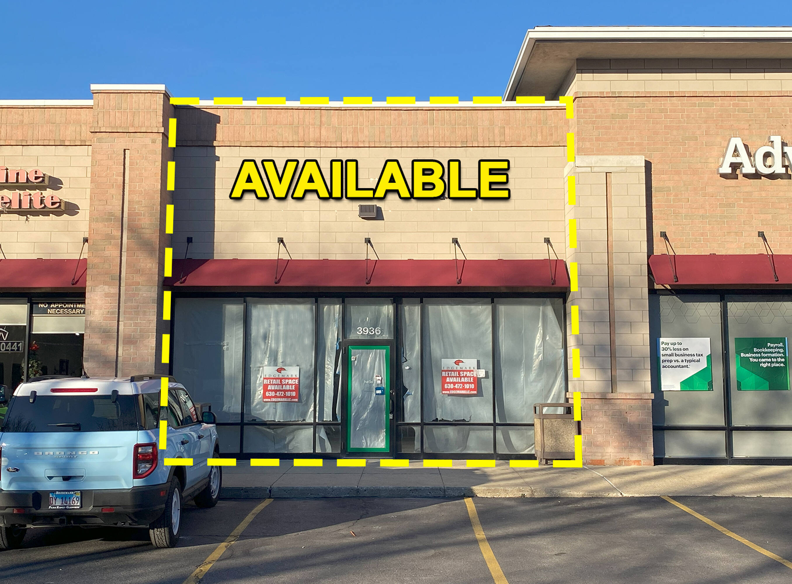 Retail space available at a lighted intersection near Bryn Mawr.