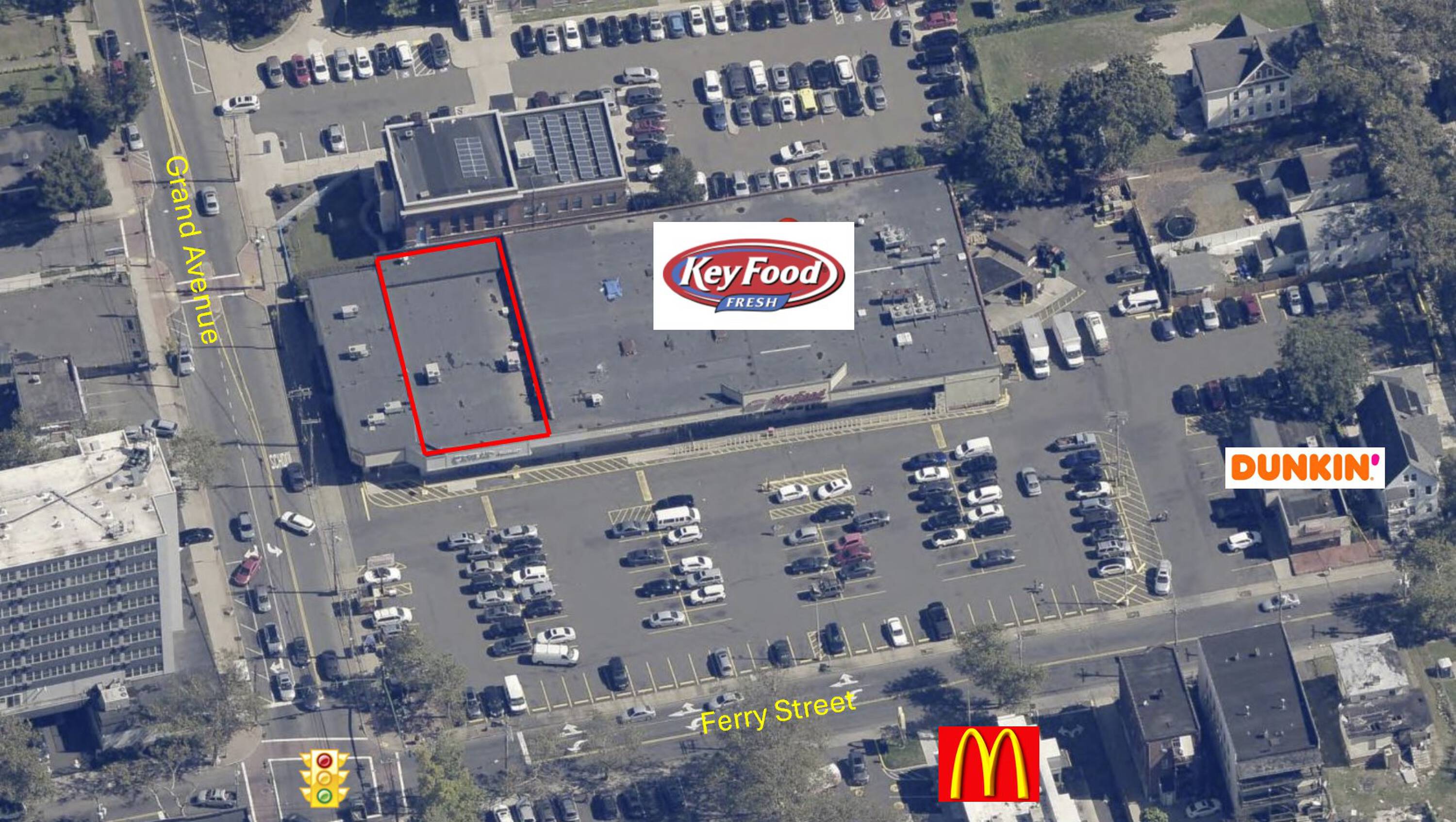 This property features: High Traffic Location: Boasting 13,500 ADT on Ferry Street and 10,800 ADT on Grand Avenue.; Corner Lot Location: Situated at the corner of Grand Avenue and Ferry Street.; Adjacent to Key Foods: Benefits from the proximity to a grocery store.