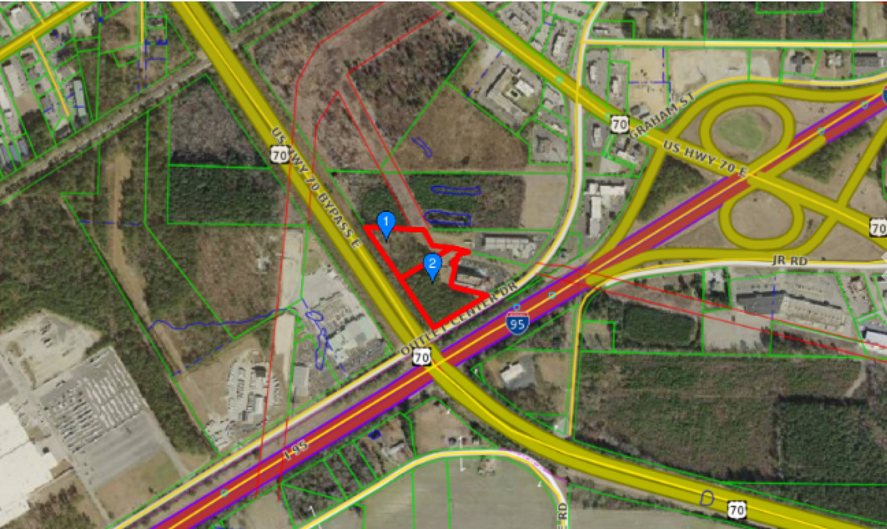This property features: Prime location at the I‑95/US 70 Interchange (Exit 97).; Suitable for hotels, retail, restaurants, or other commercial businesses.; High traffic area with 7‑9 million visitors per year.