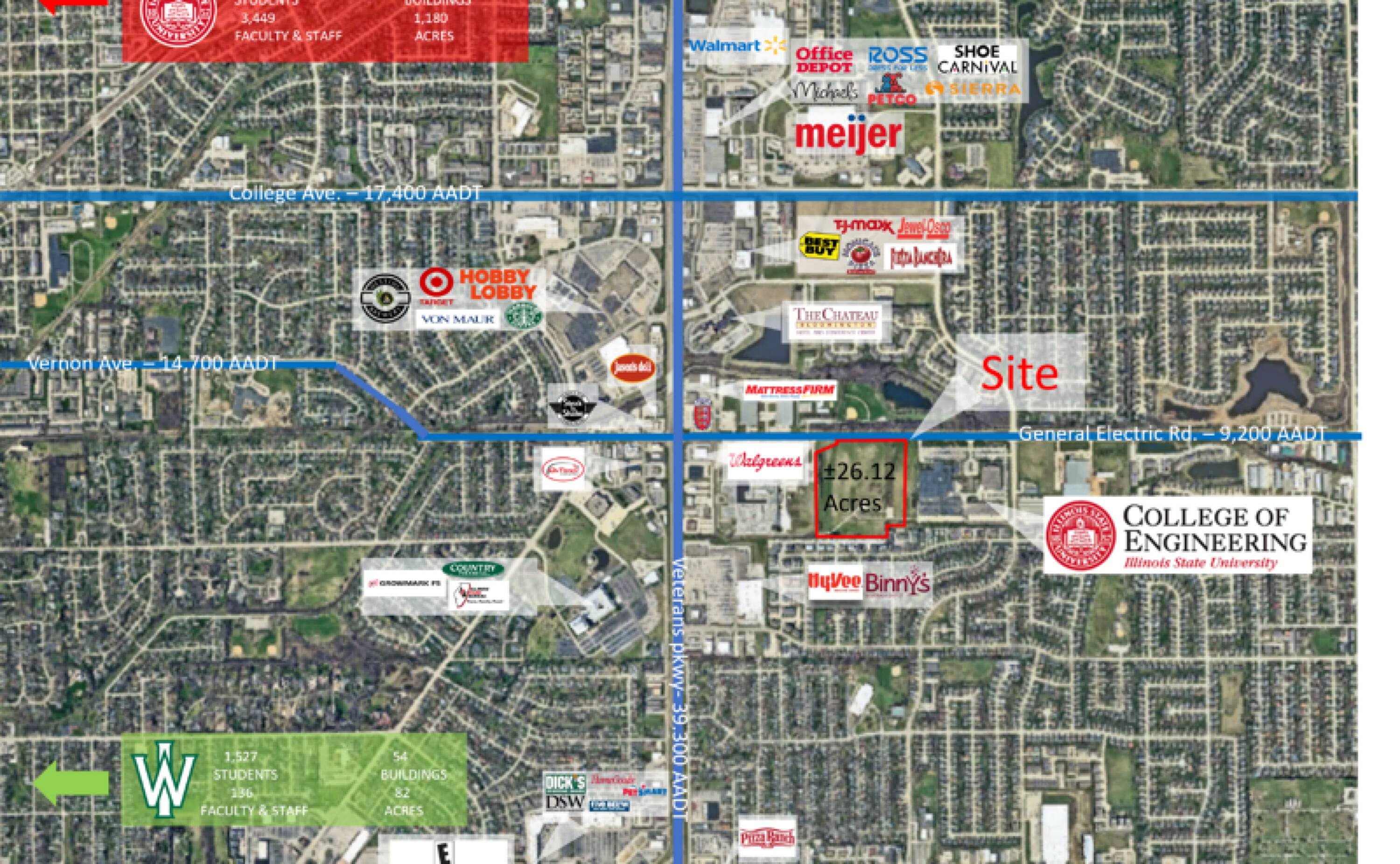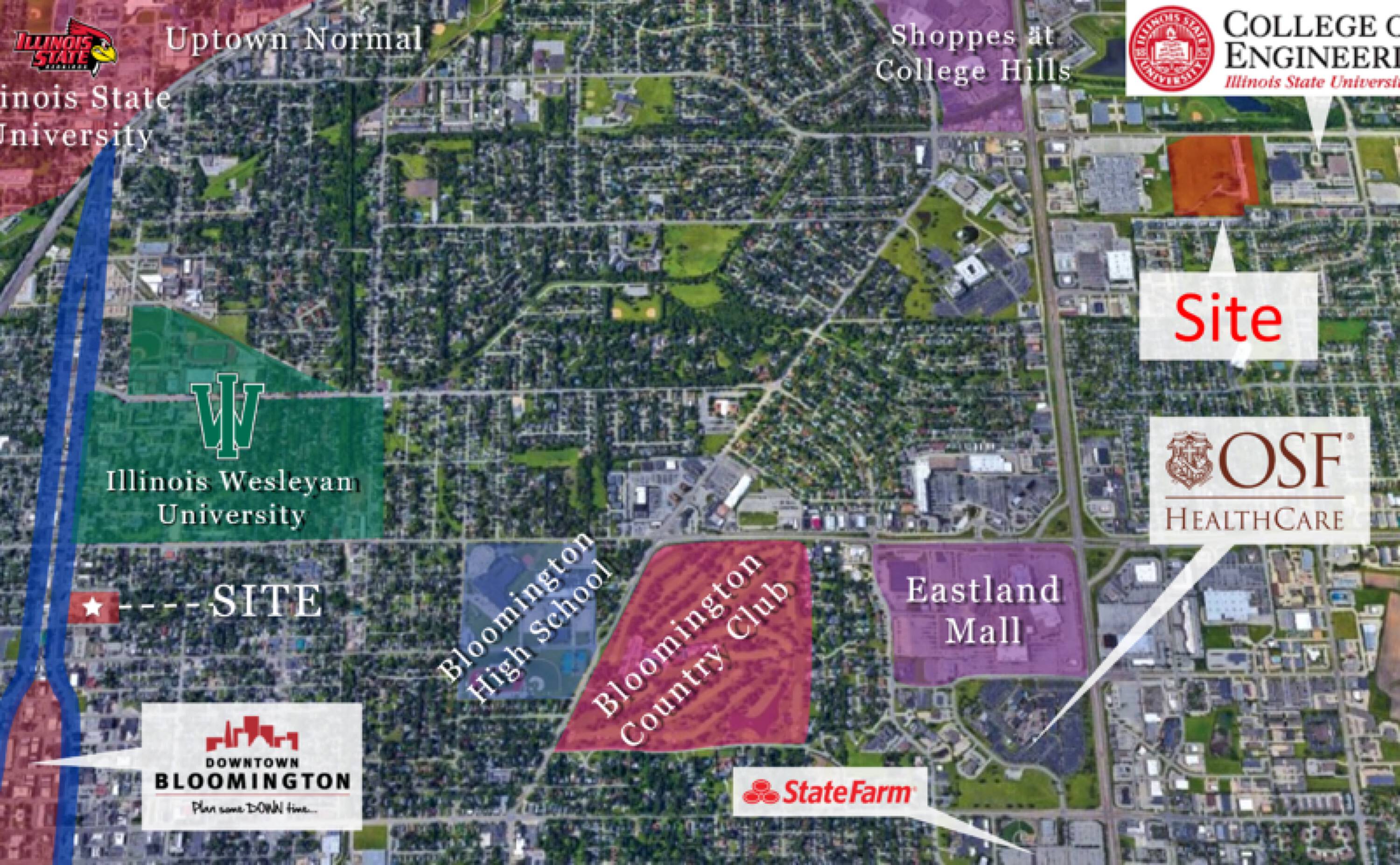Three developable land parcels on General Electric Road in Bloomington, IL.