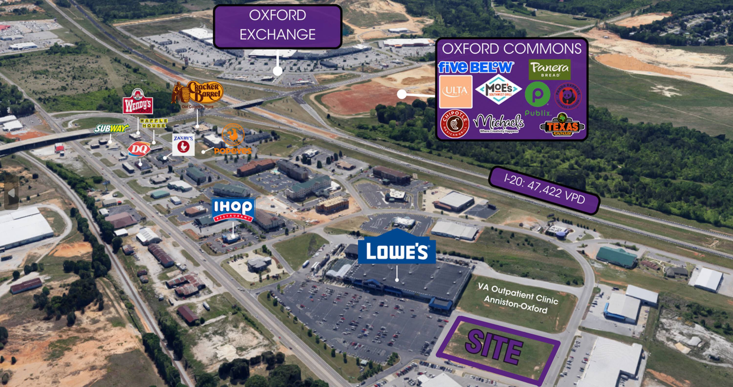 This +/- 2.2 AC outparcel is located adjacent to Lowe’s, providing excellent visibility and accessibility. The property is positioned right off US Hwy 78 E, which experiences a daily traffic count of 24,066 vehicles. It is situated near Oxford Commons, a shopping center that includes a variety of national retailers and restaurants.