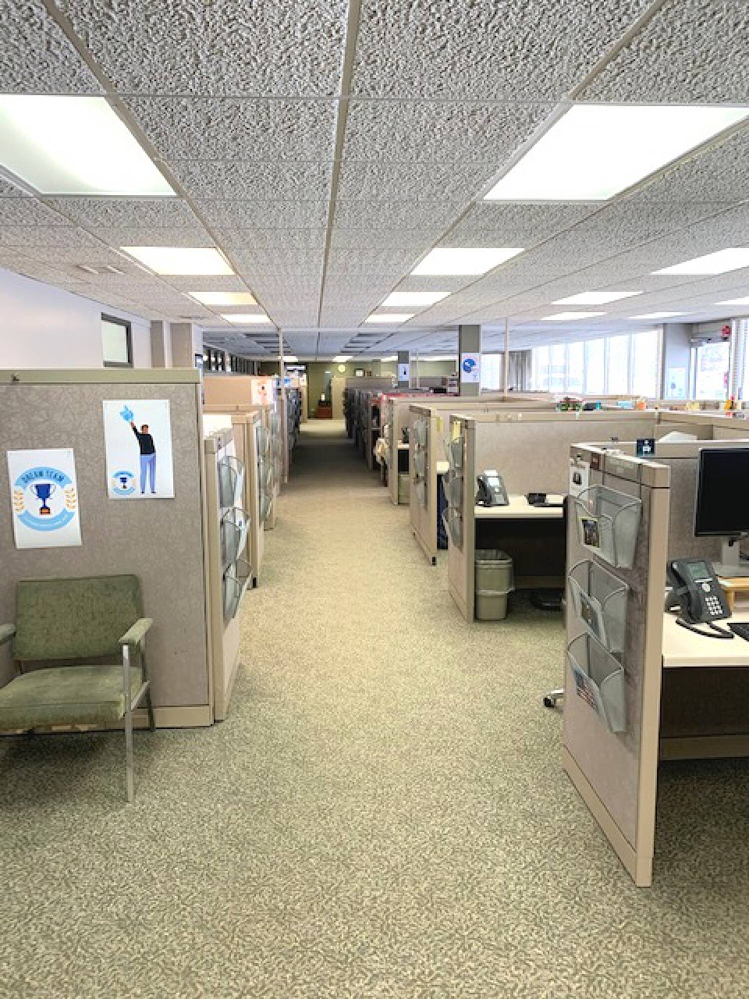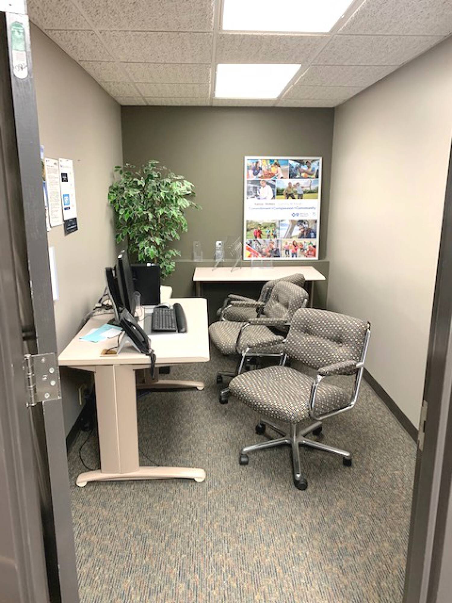 Multi-tenant office suites with Class A finishes for rent.