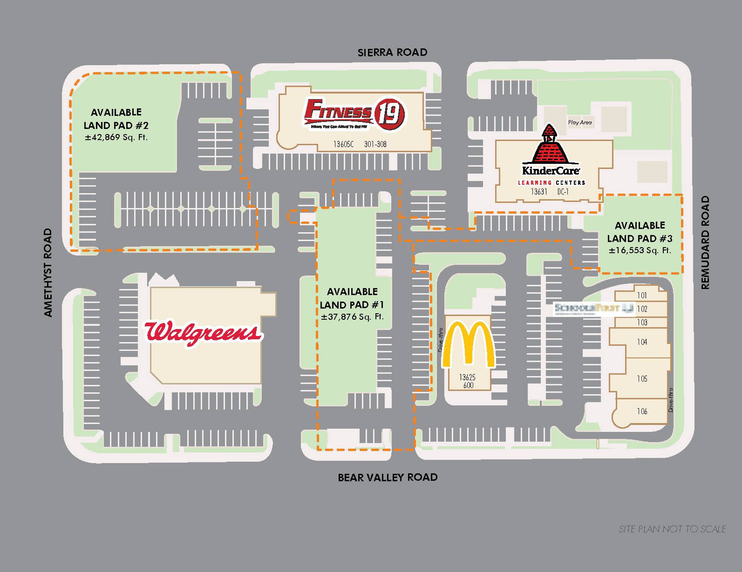 Retail spaces available, ranging from 16,553 to 42,869 SqFt.