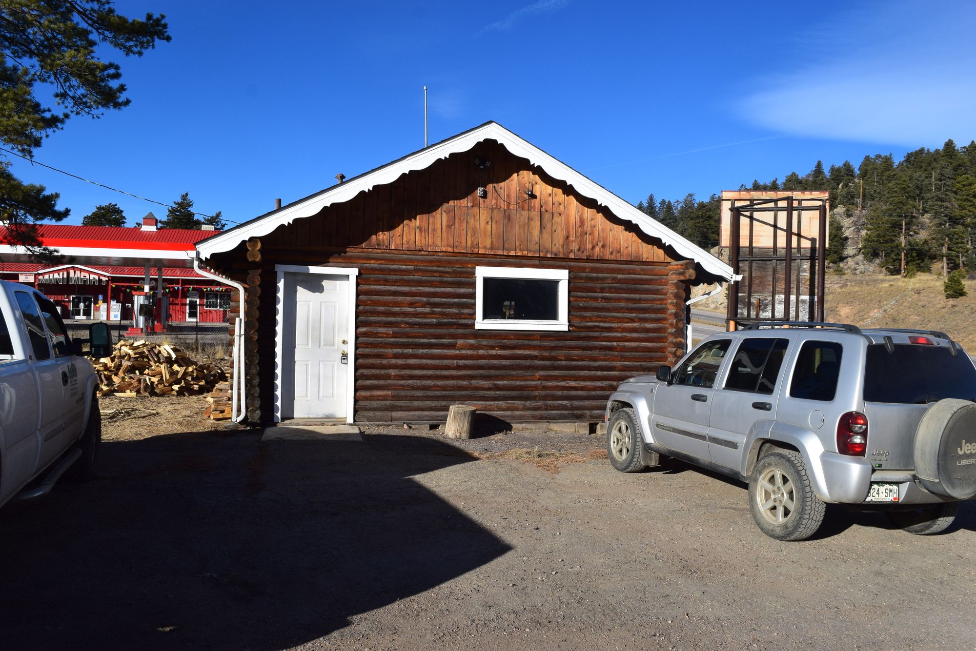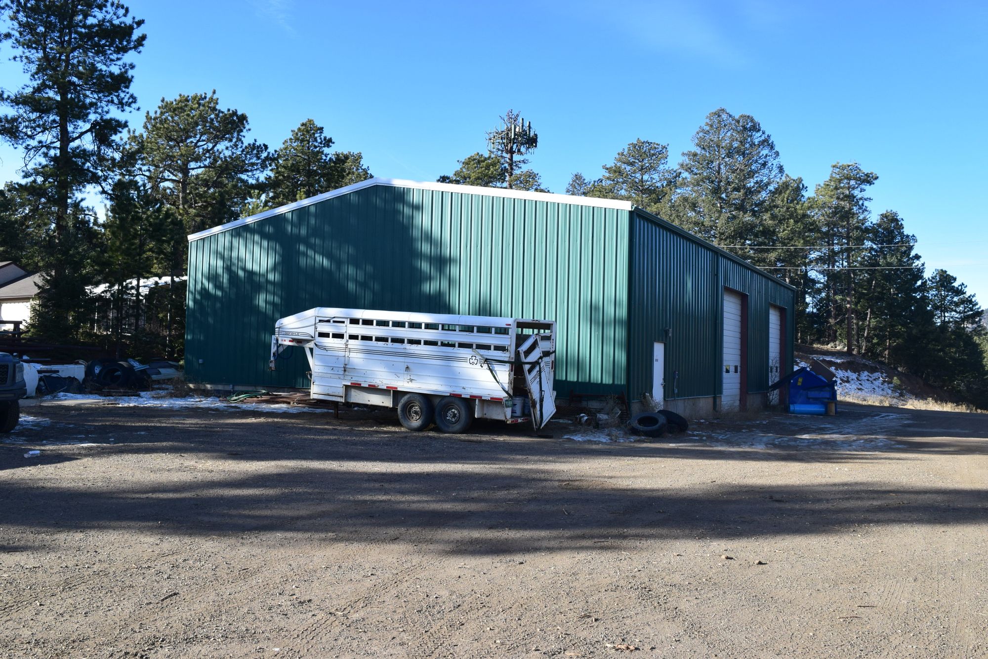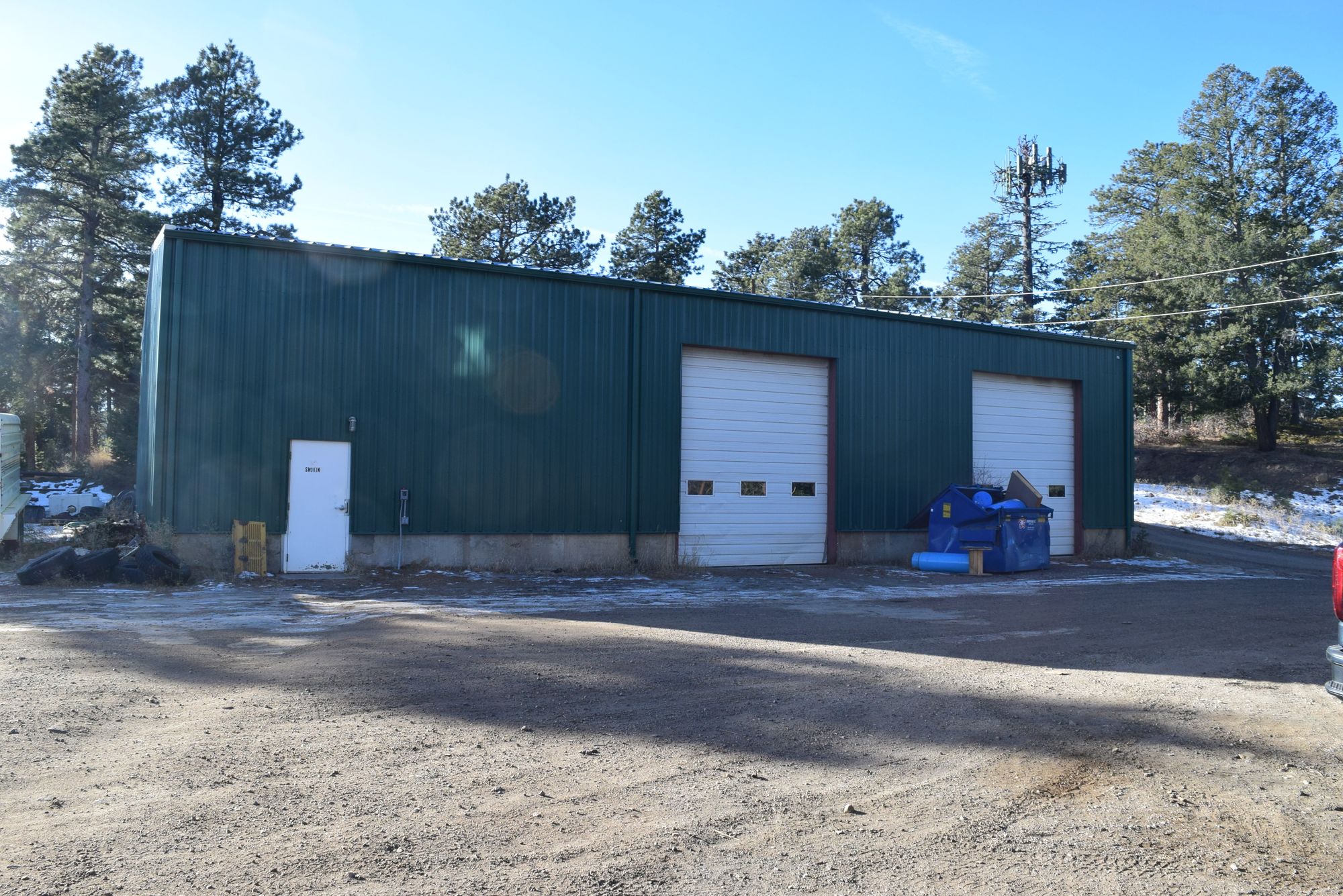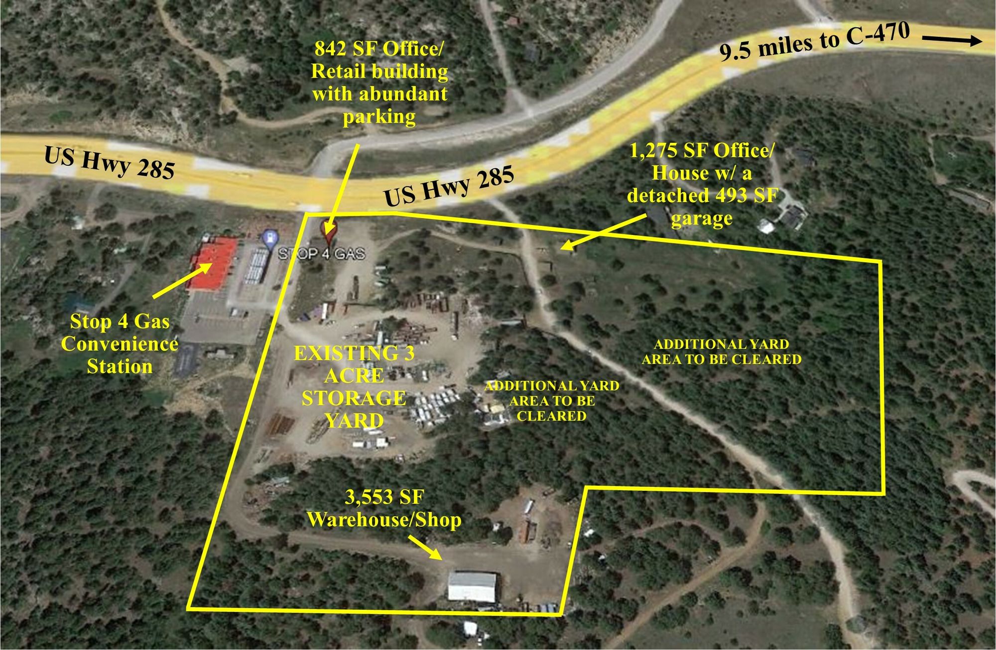 Multiple buildings and outdoor storage on Highway 285 for lease.