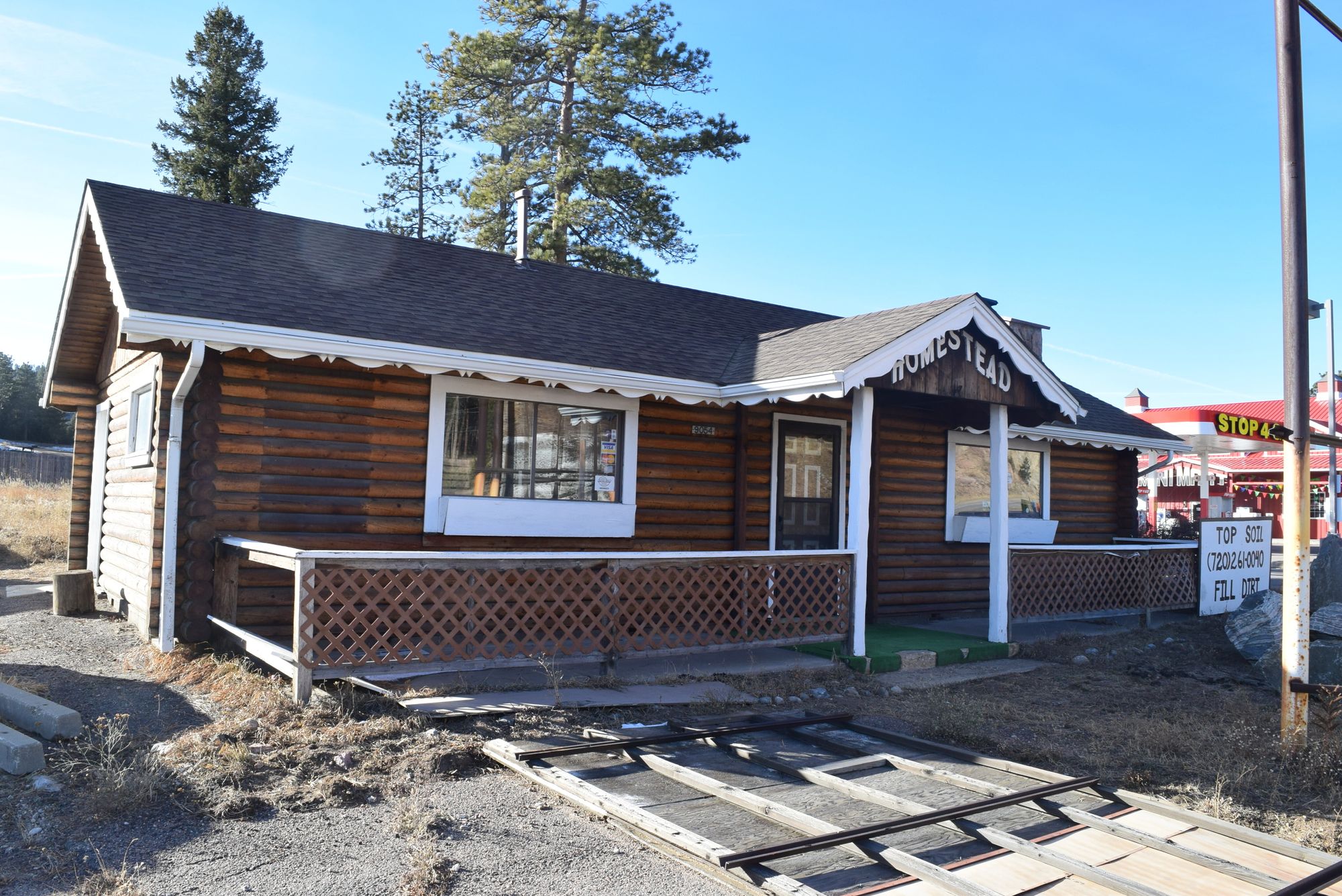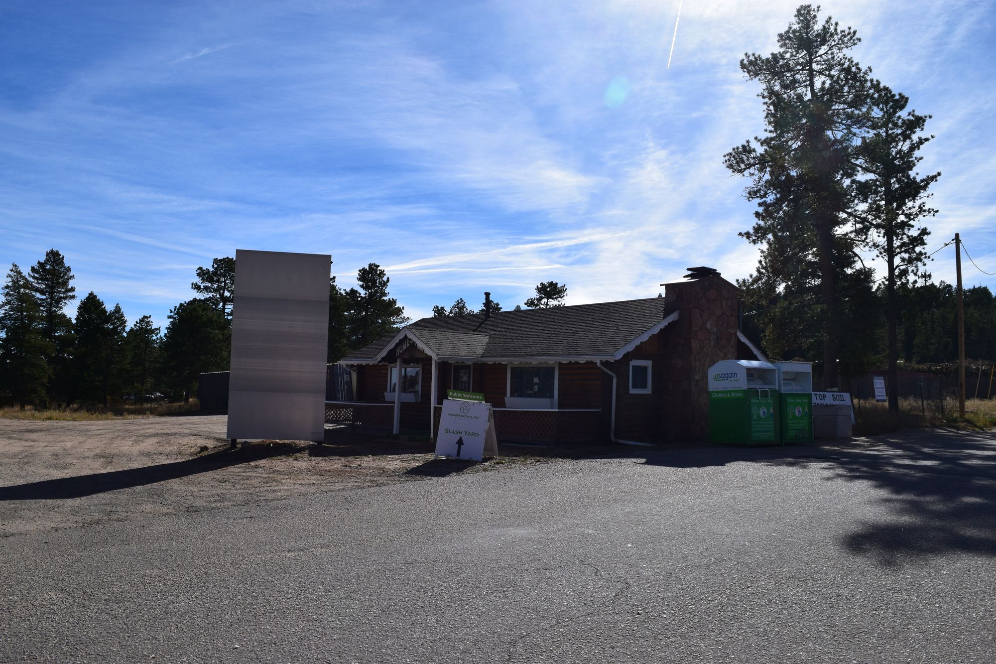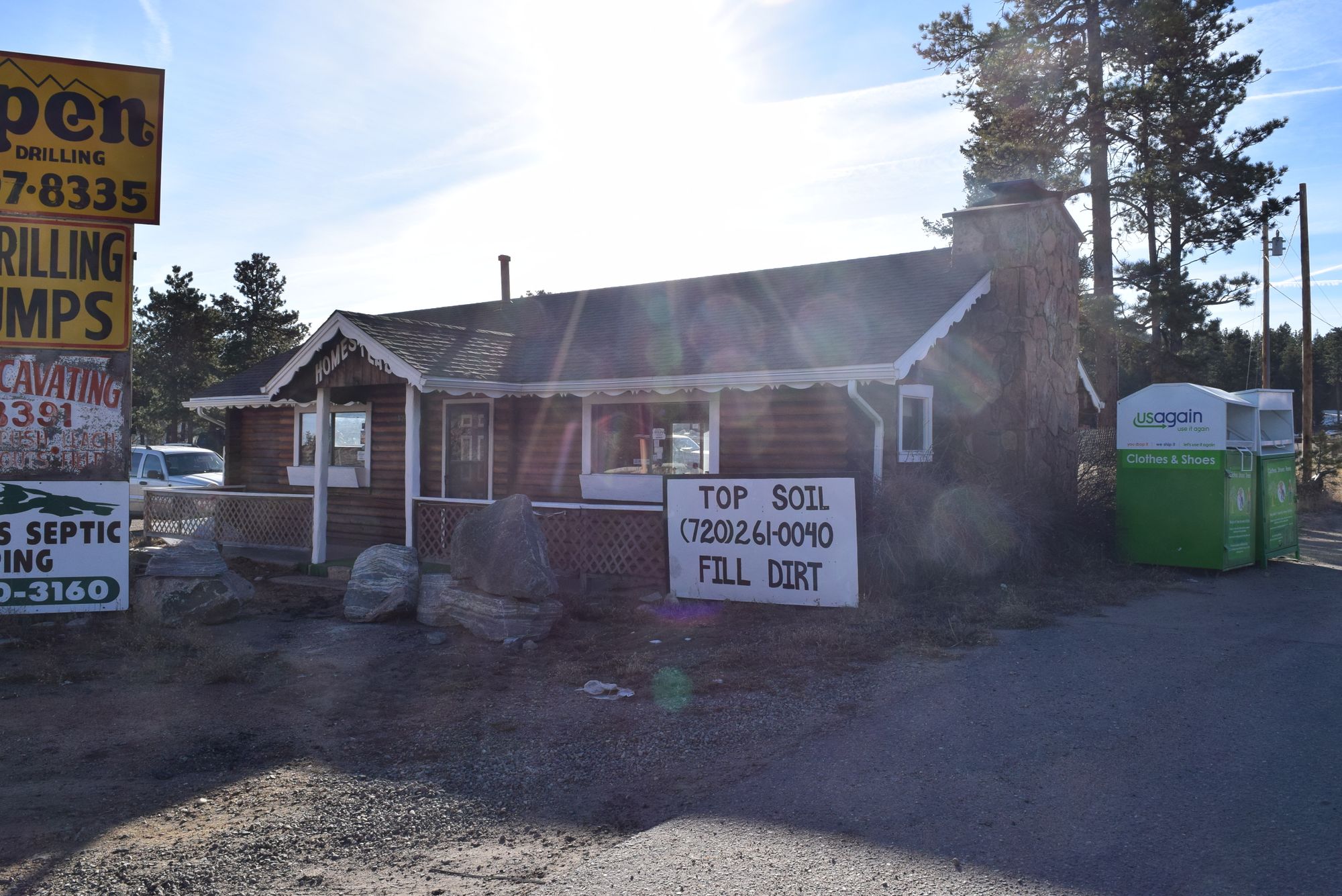 Multiple buildings and outdoor storage on Highway 285 for lease.