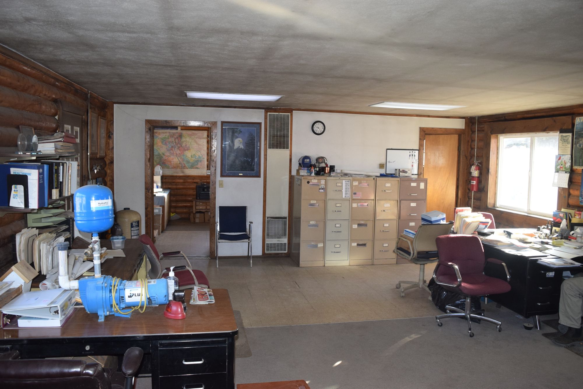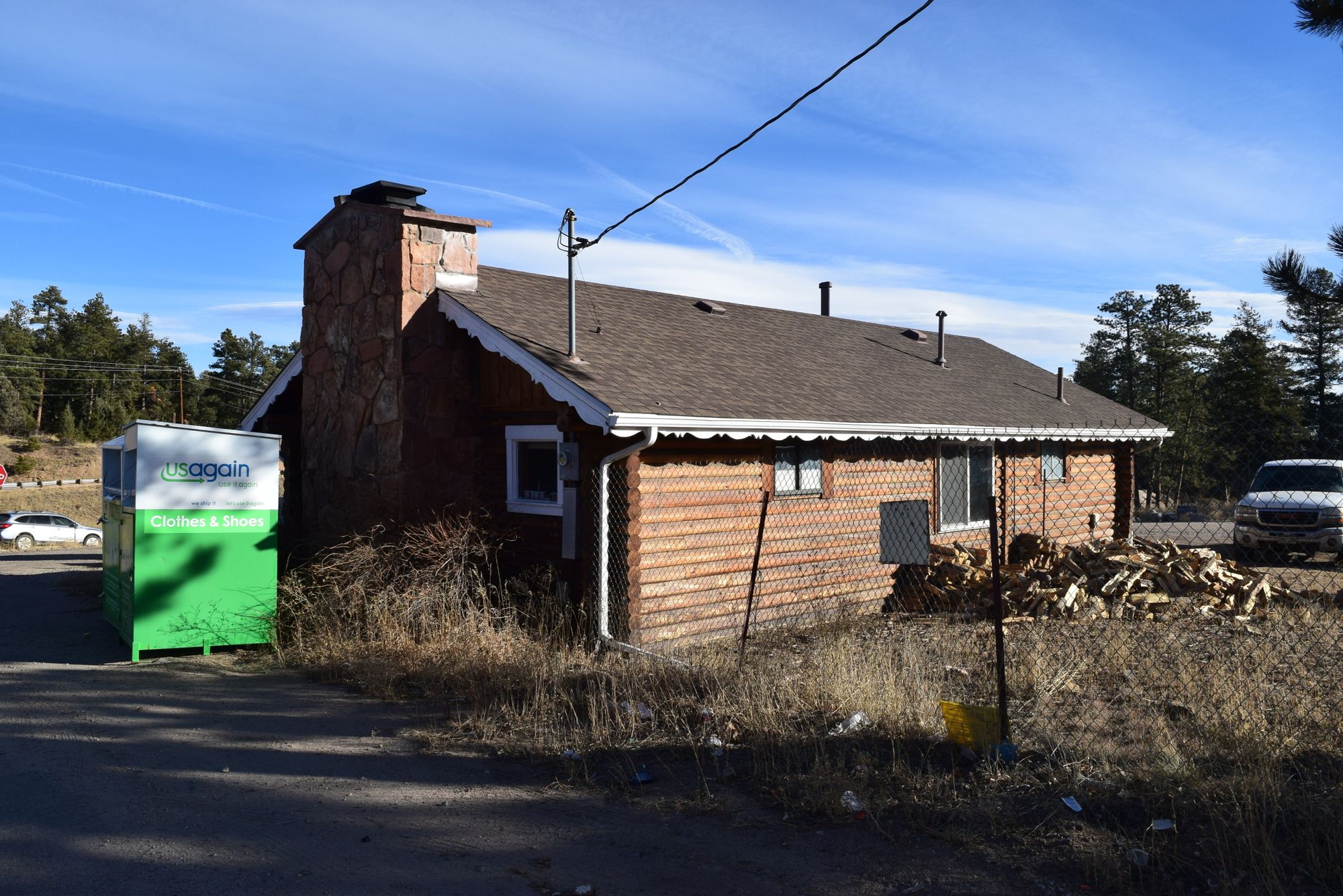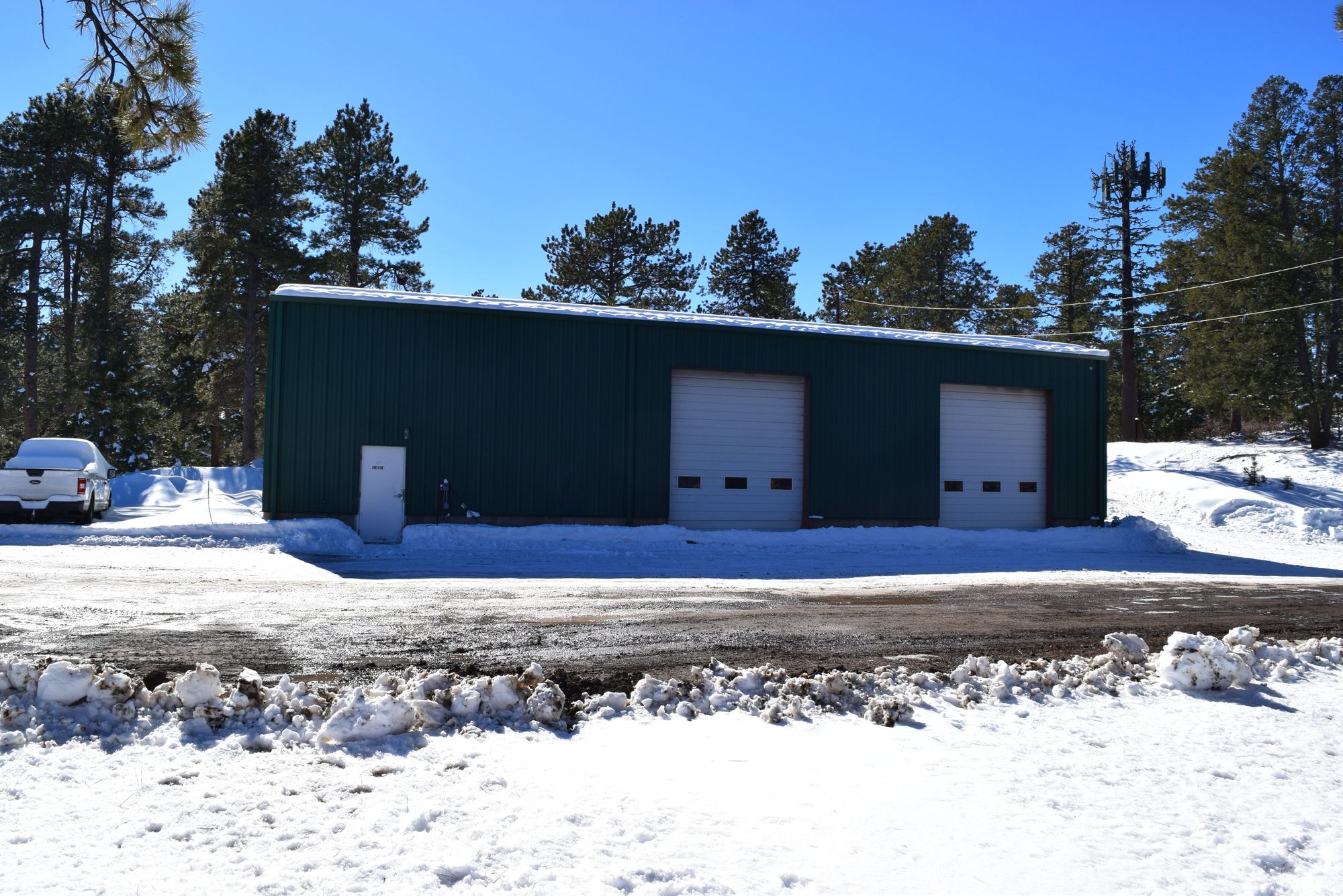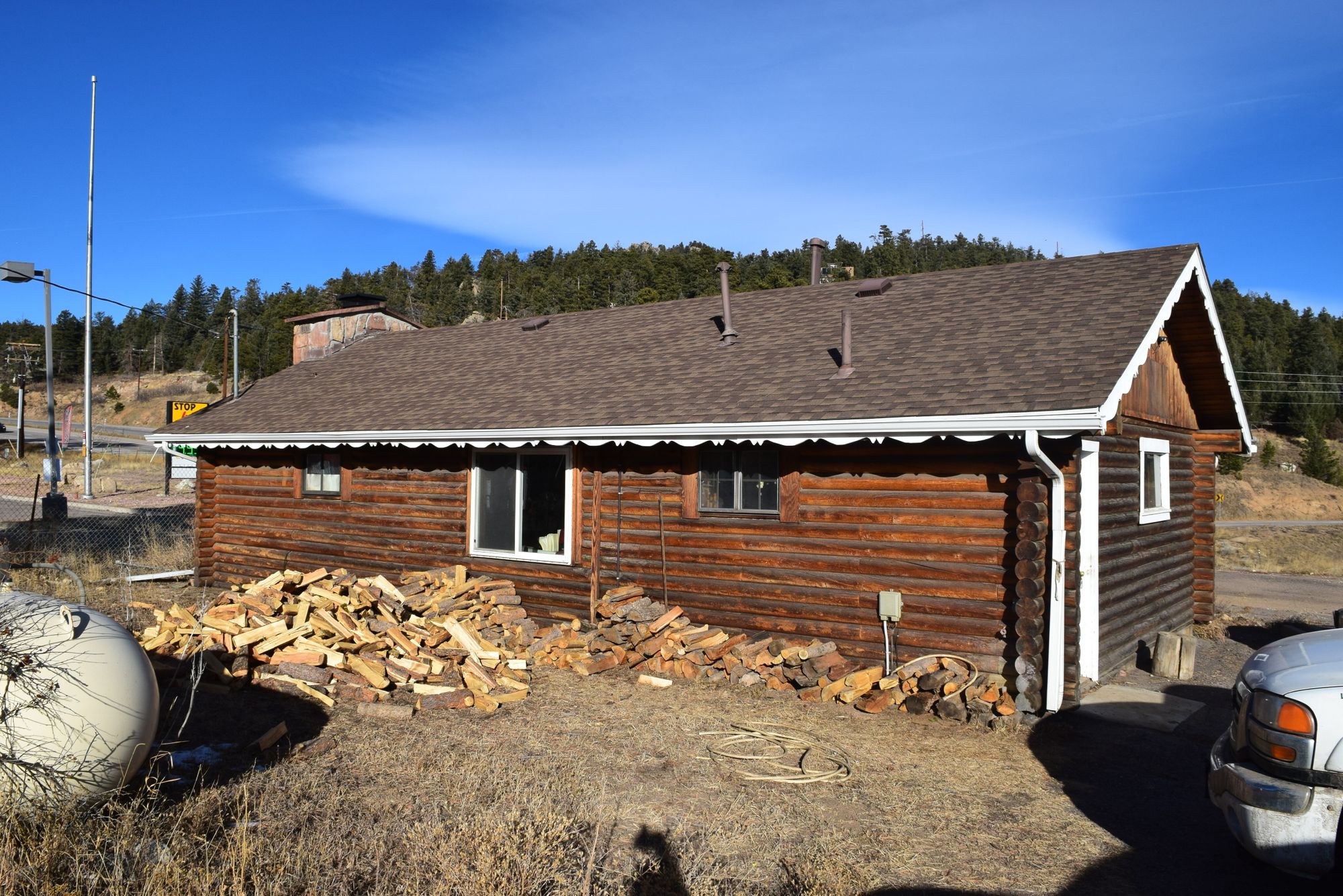 Multiple buildings and outdoor storage on Highway 285 for lease.