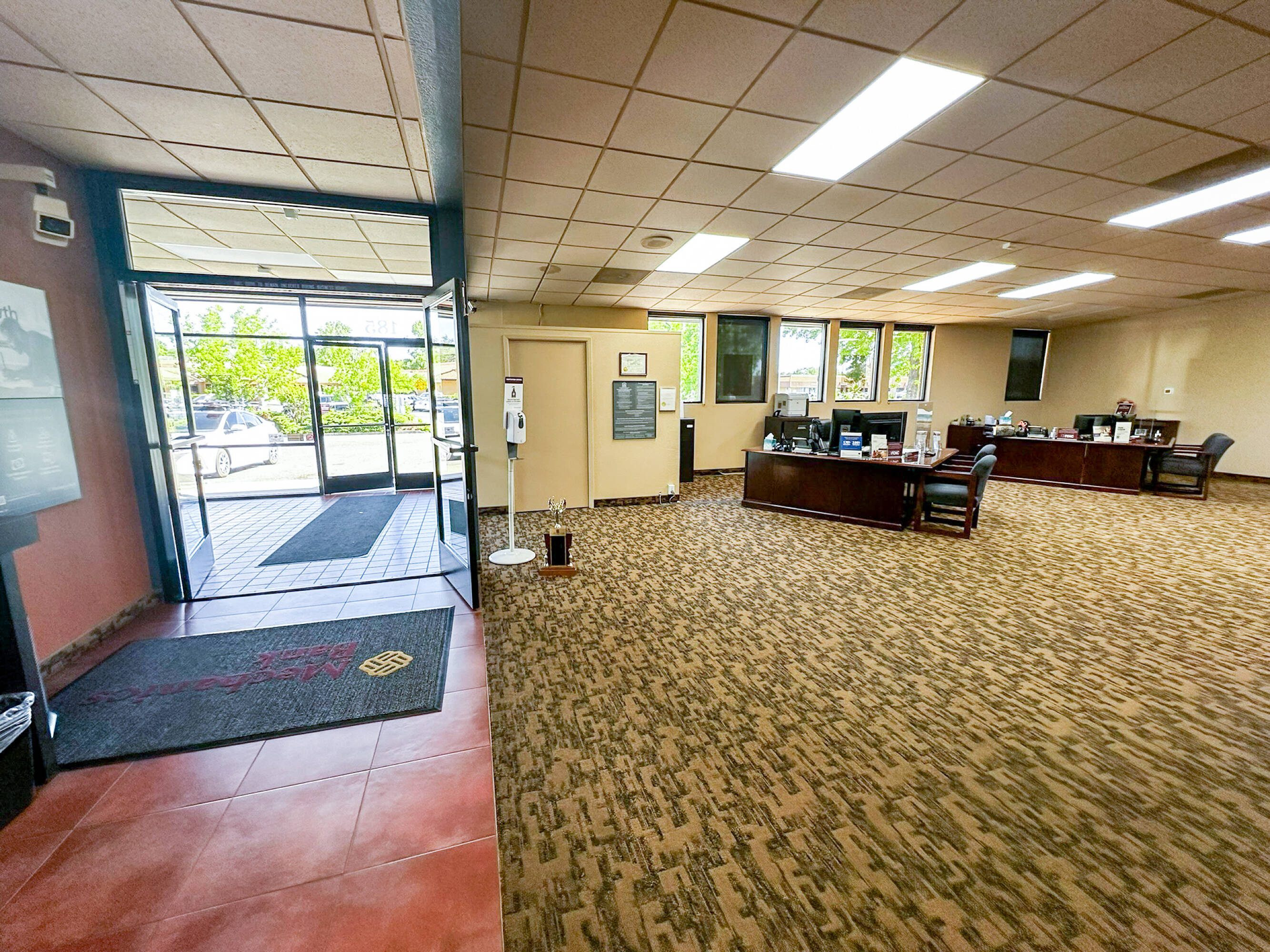Two-story commercial property with high visibility and ample parking.