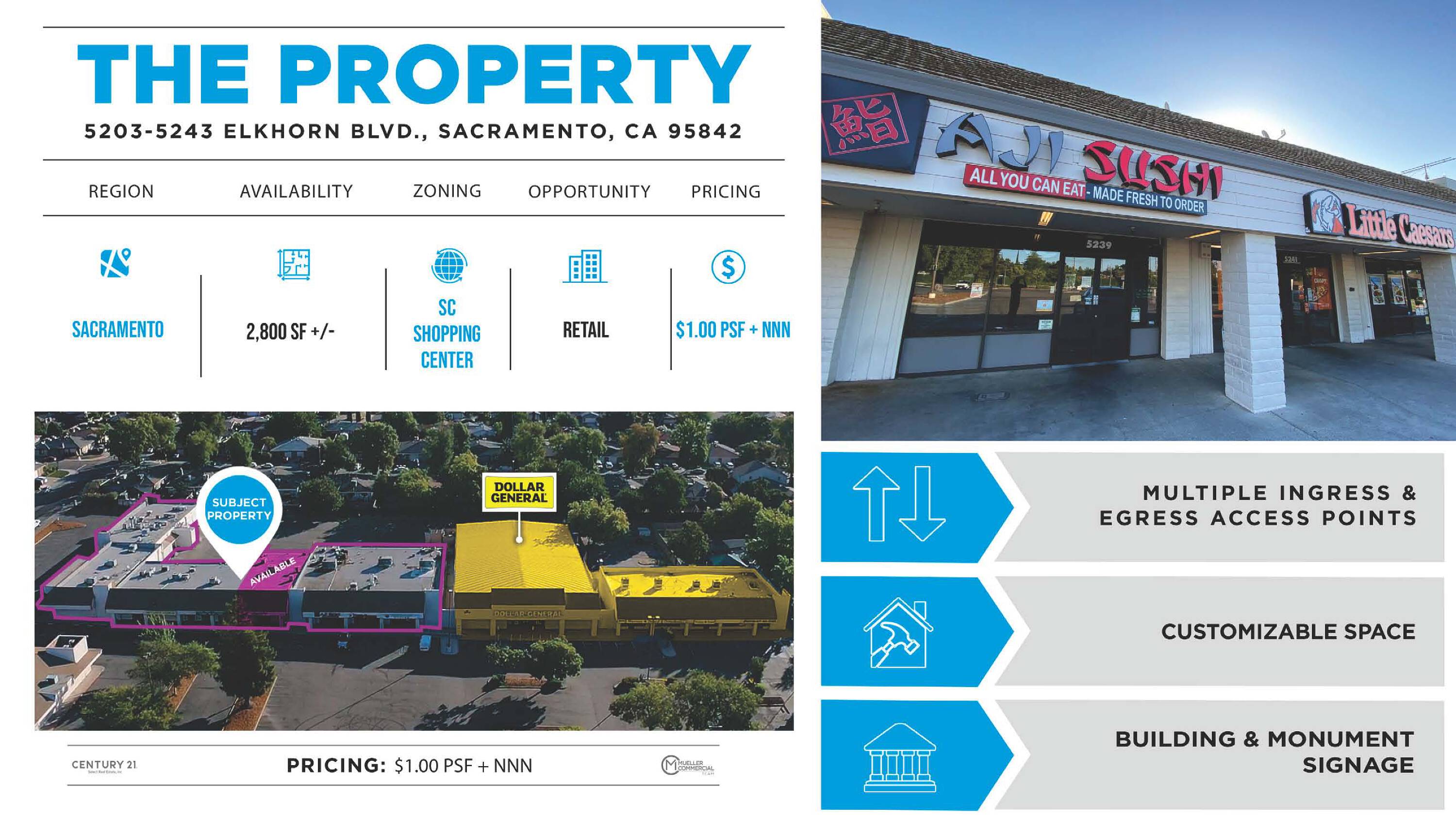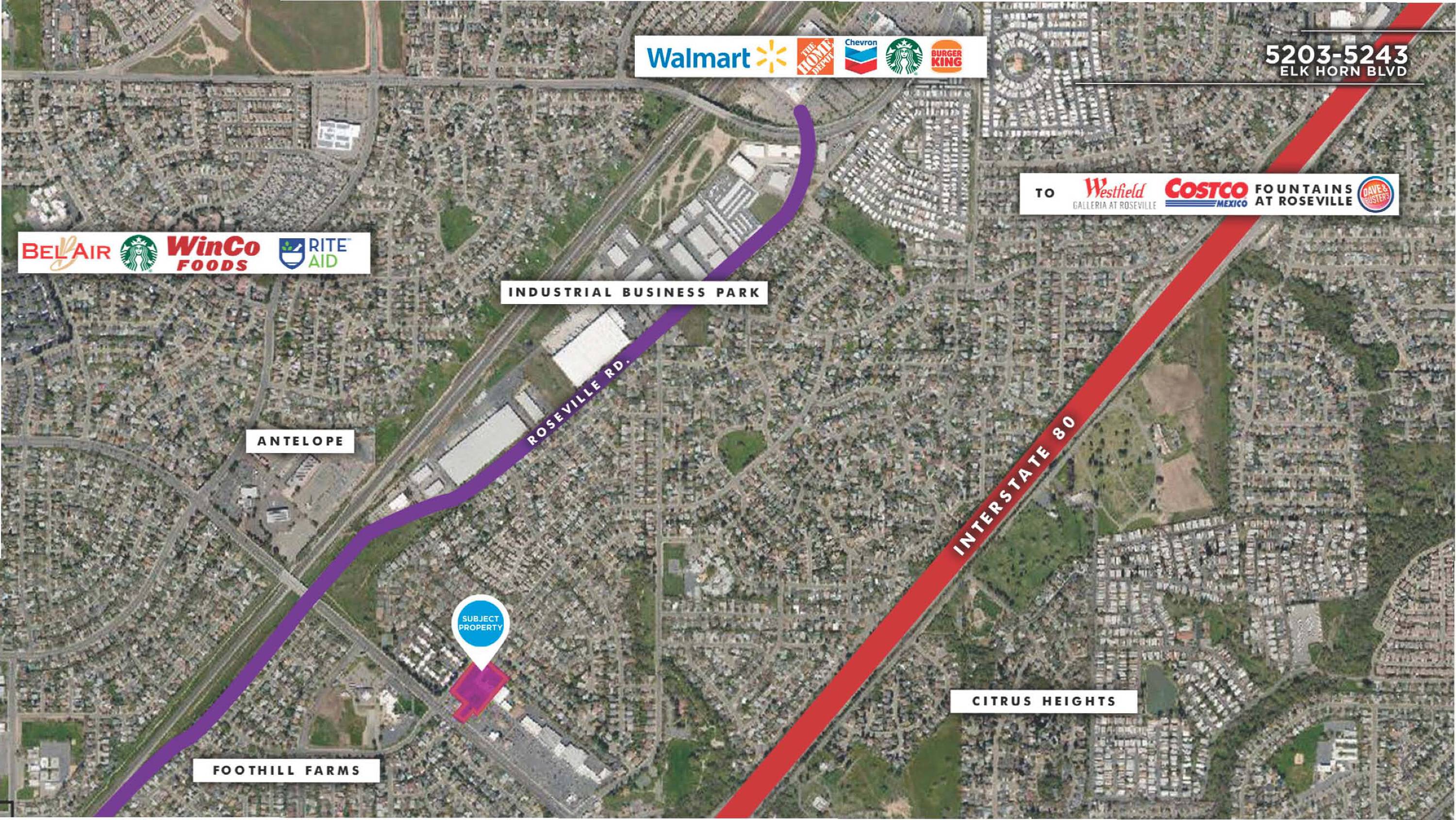 The property is located at 5203-5243 Elkhorn Blvd Sacramento, CA.