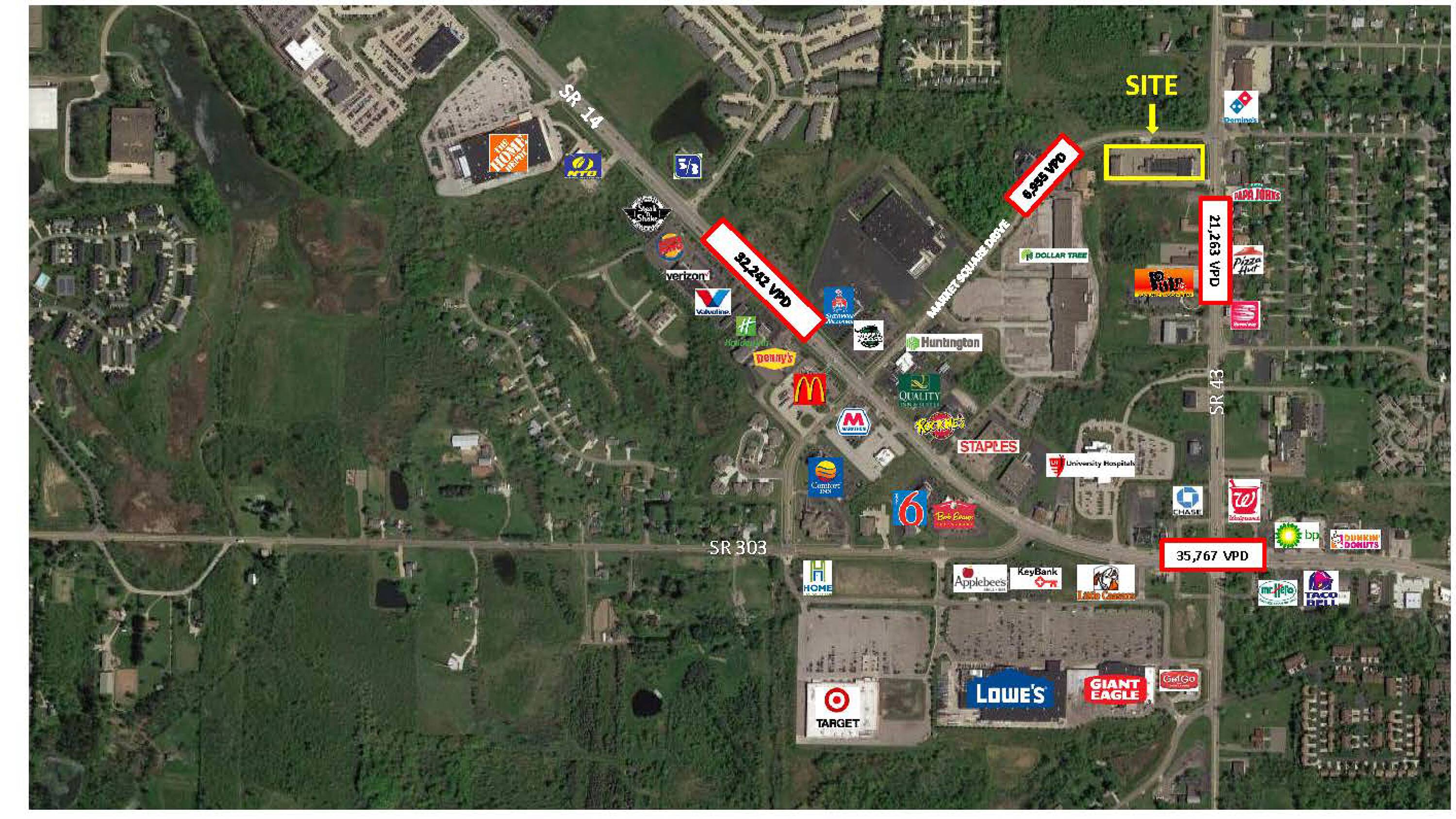 This property features: Move‑in ready medical/office space on the first floor.; Prominent corner location at State Route 43 and Market Square Drive.; High average household income ($113,137) within 5 miles.