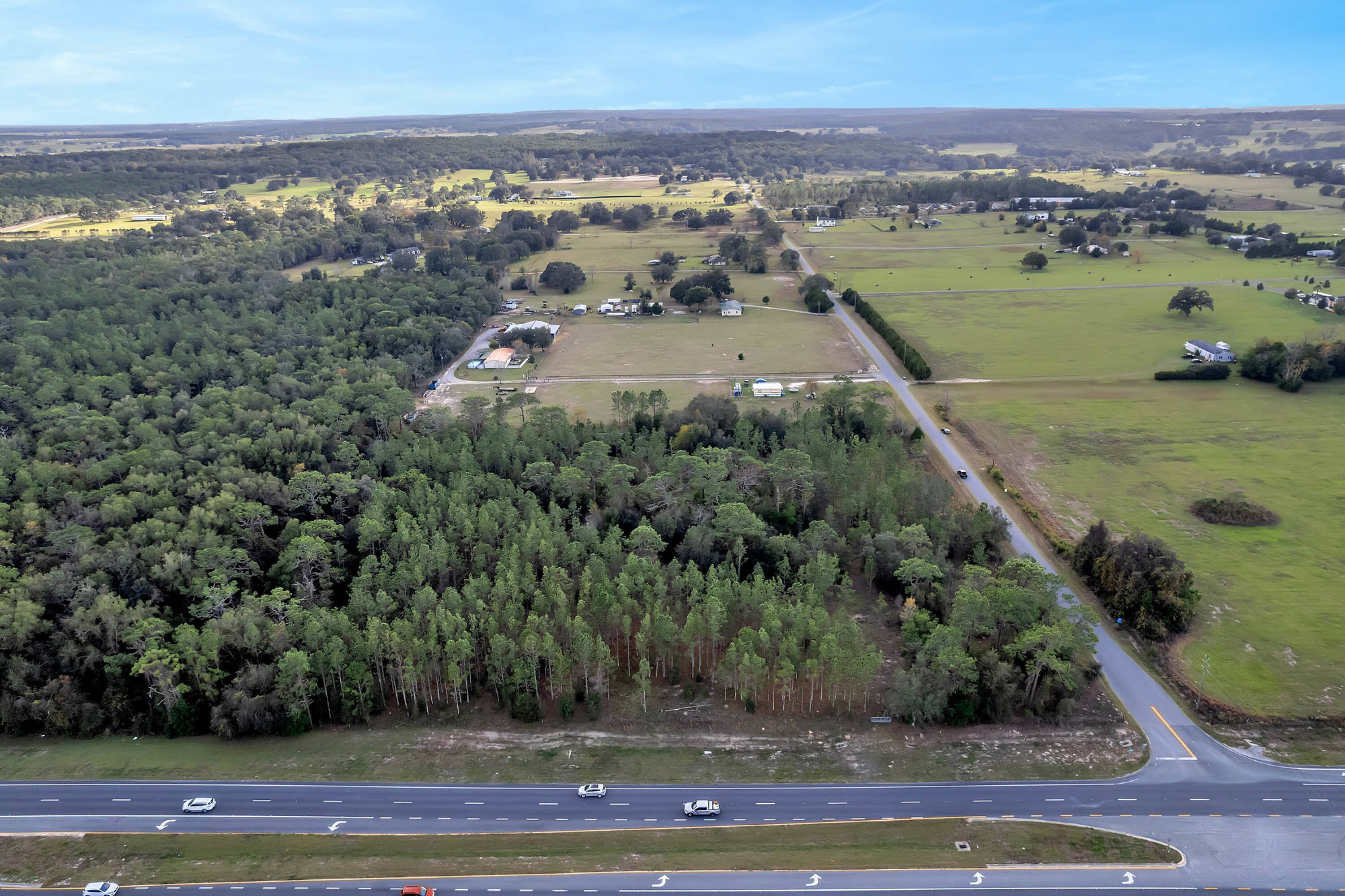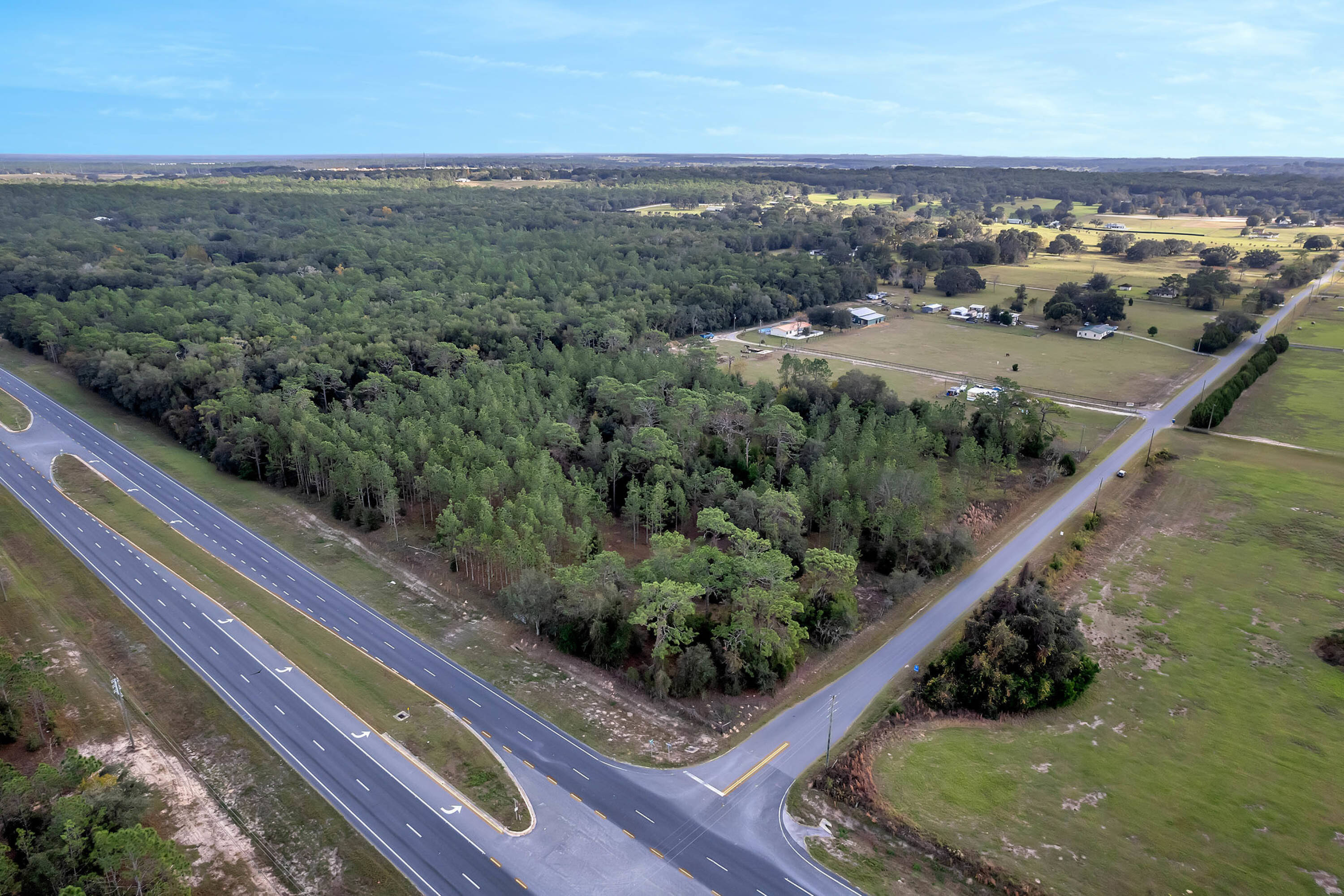 This property features 8.7 acres of land with a 4,536 square foot heated building constructed in 1981, situated at the back of the parcel. The building is suitable for use as a warehouse, maintenance garage, or for storage purposes. The property's versatility allows for various potential uses, including farmland, ranch, RV park, and residential development.
