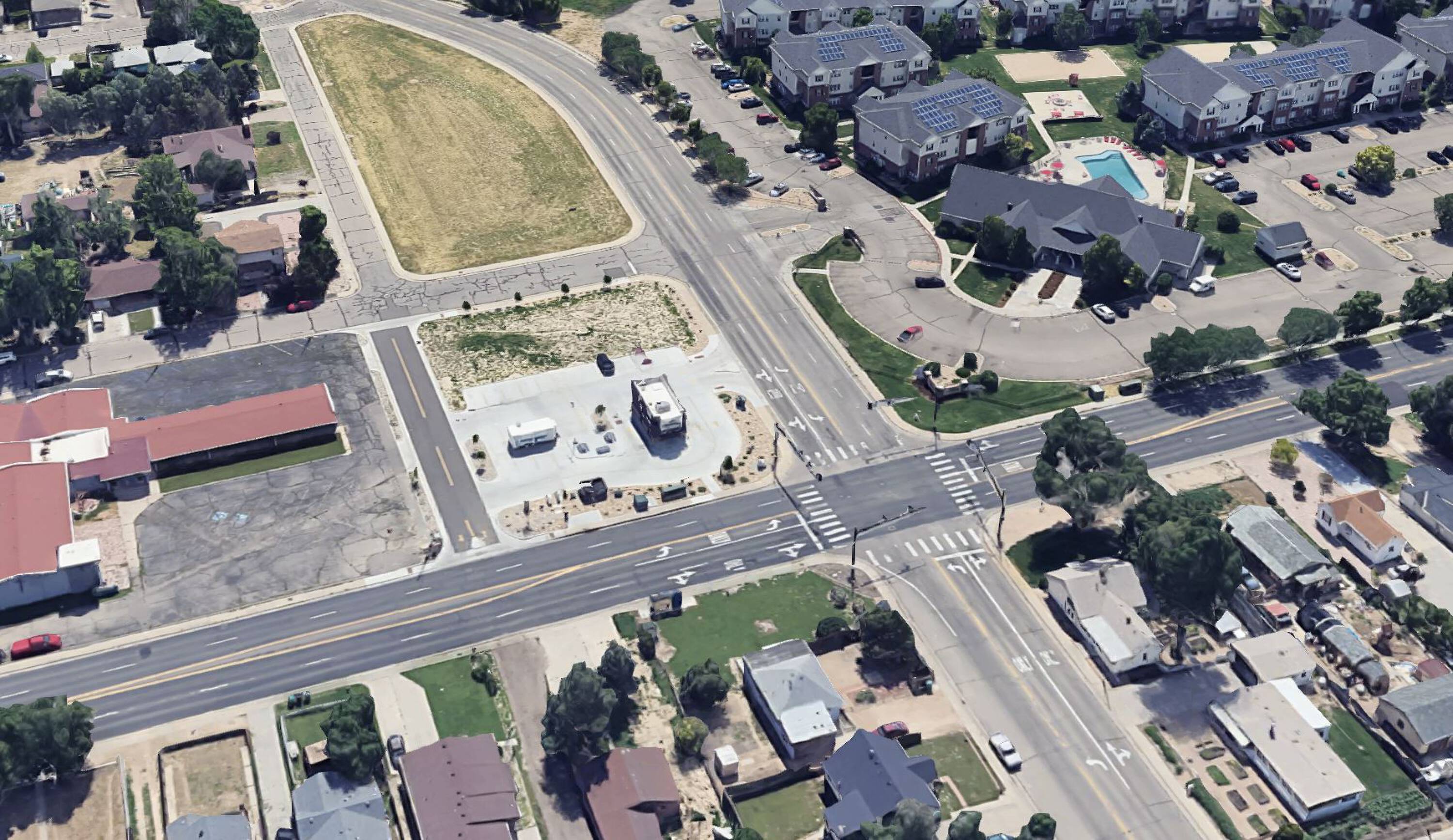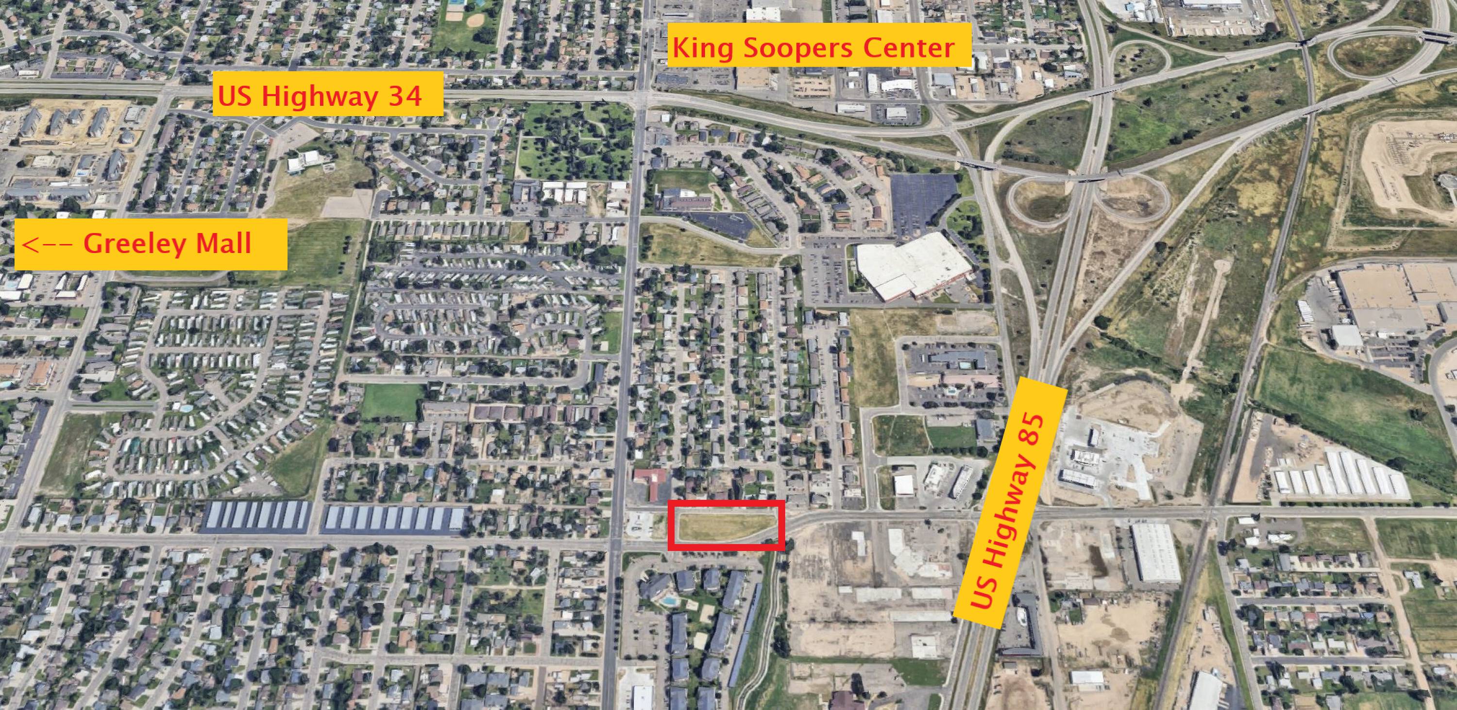 The Evans Commercial Lot, located at 3089-3099 High Dr. in Evans, CO, is a 1.13-acre parcel zoned (C3) Commercial High Intensity District. The site is positioned near Highway 34, 11th Avenue, and Highway 85, offering high visibility and accessibility. The location benefits from a significant daily traffic flow, including 11,005 vehicles per day at 11th Ave and 31st St. Situated next to the new Roasty’s drive-thru coffee and across from The Verge apartments, this in-fill lot is suited for ventures such as fast food, retail, or office space.
