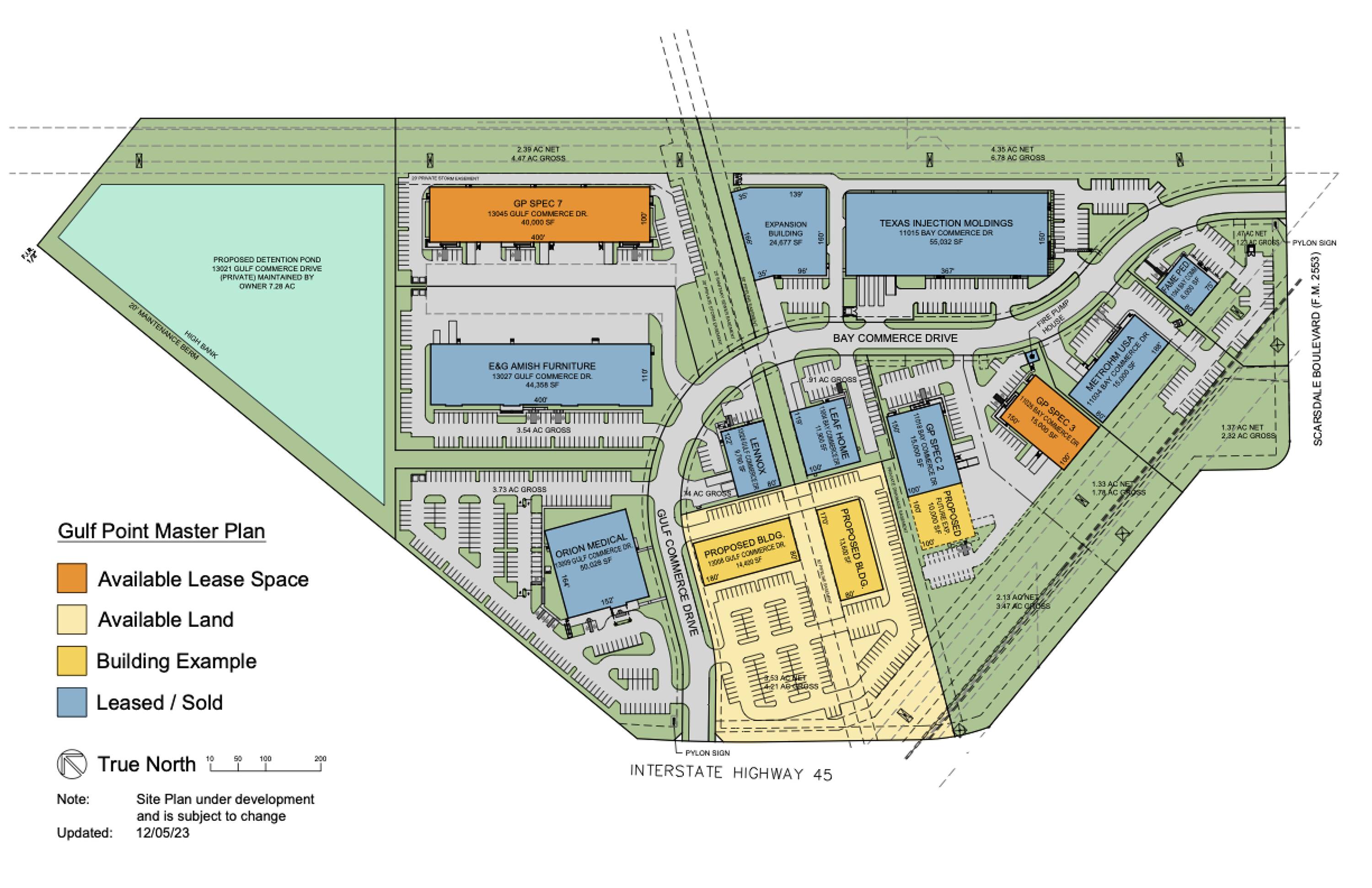 Master-planned business park with I-45 frontage and flexible site options.