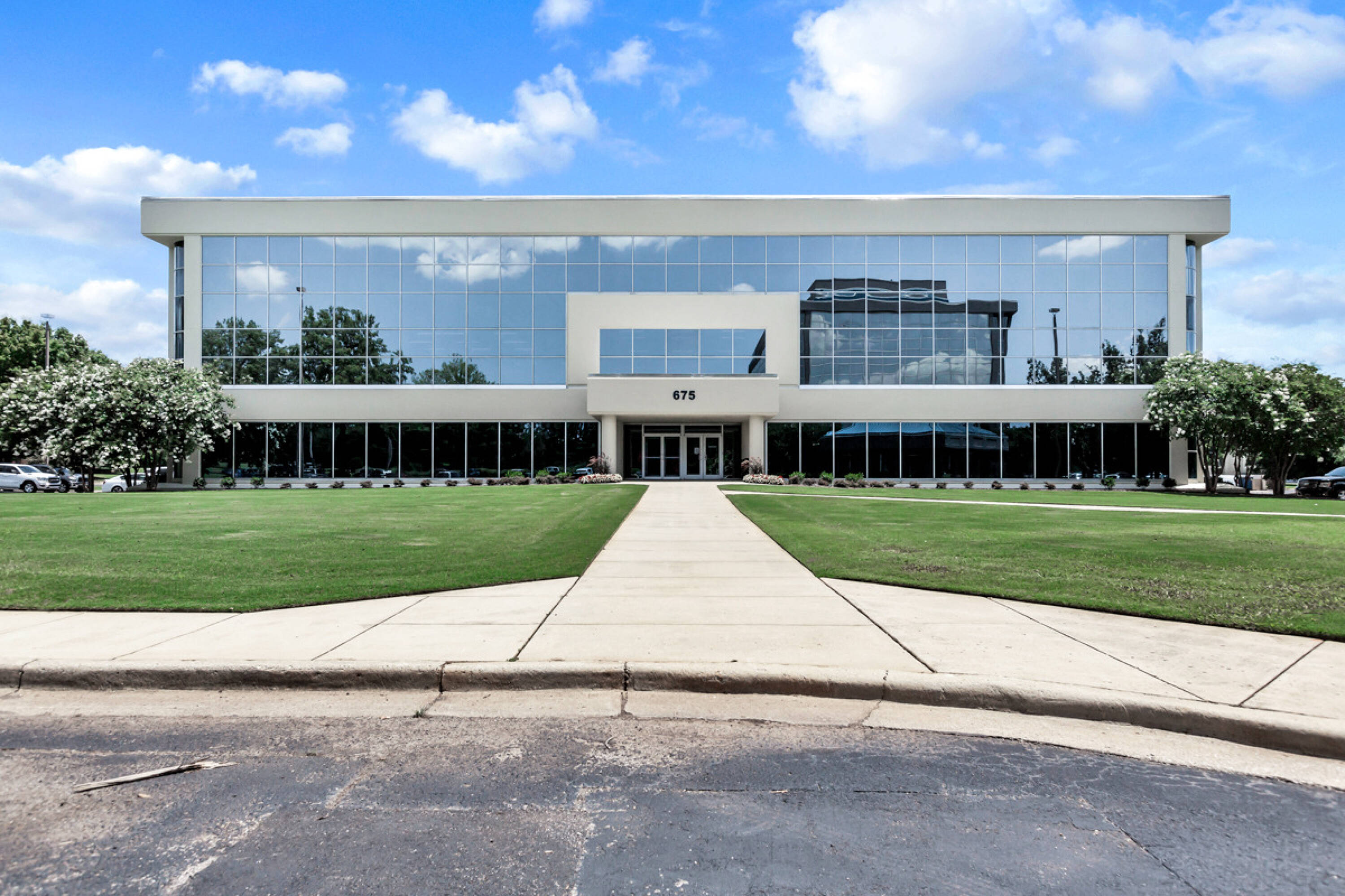 Three-story office building in Cummings Research Park West for rent.