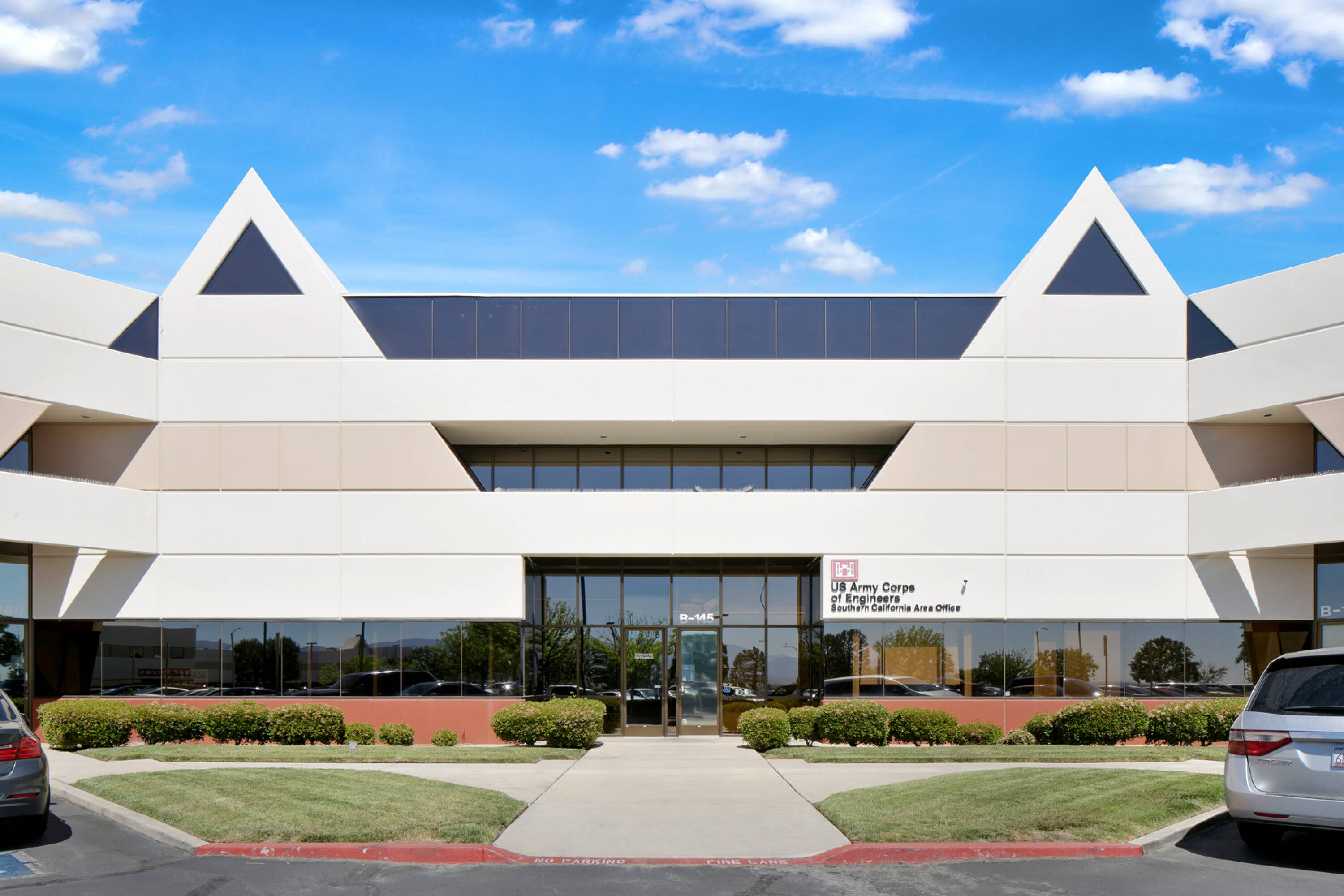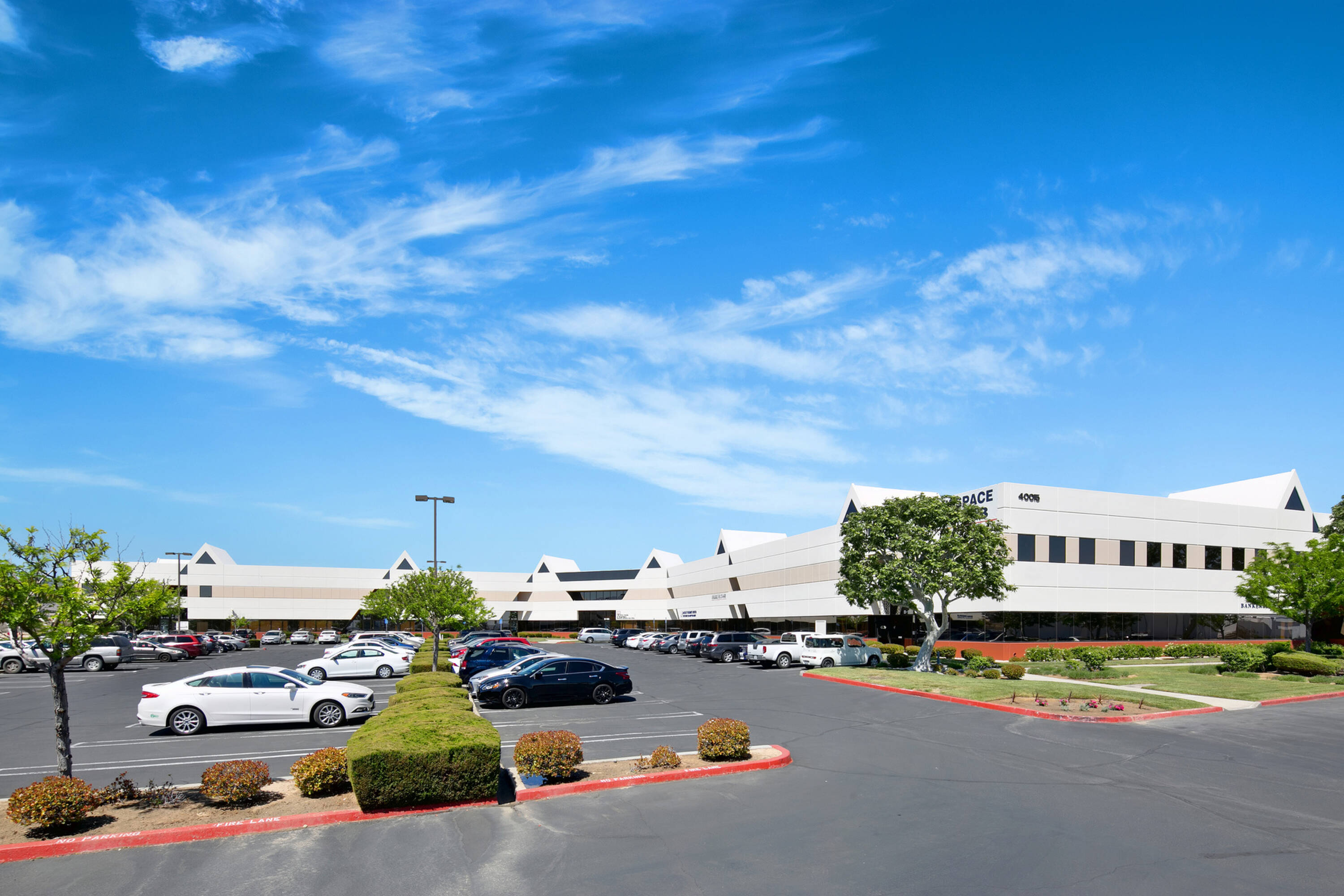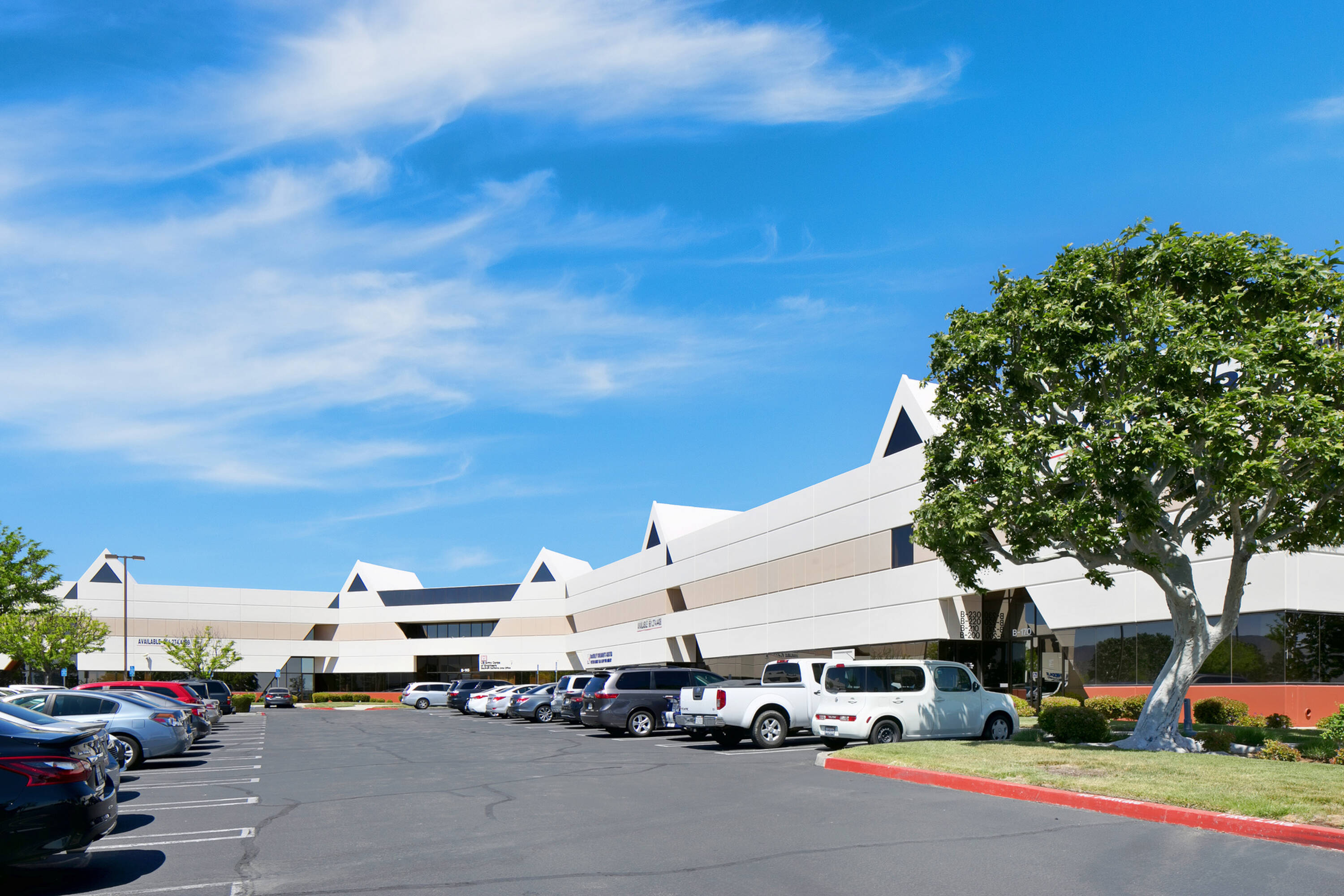 This suburban two-story office complex features a modern glass façade and unique architecture. The property benefits from beautiful landscaping and exterior suite access. It offers easy access from Palmdale and Lancaster.