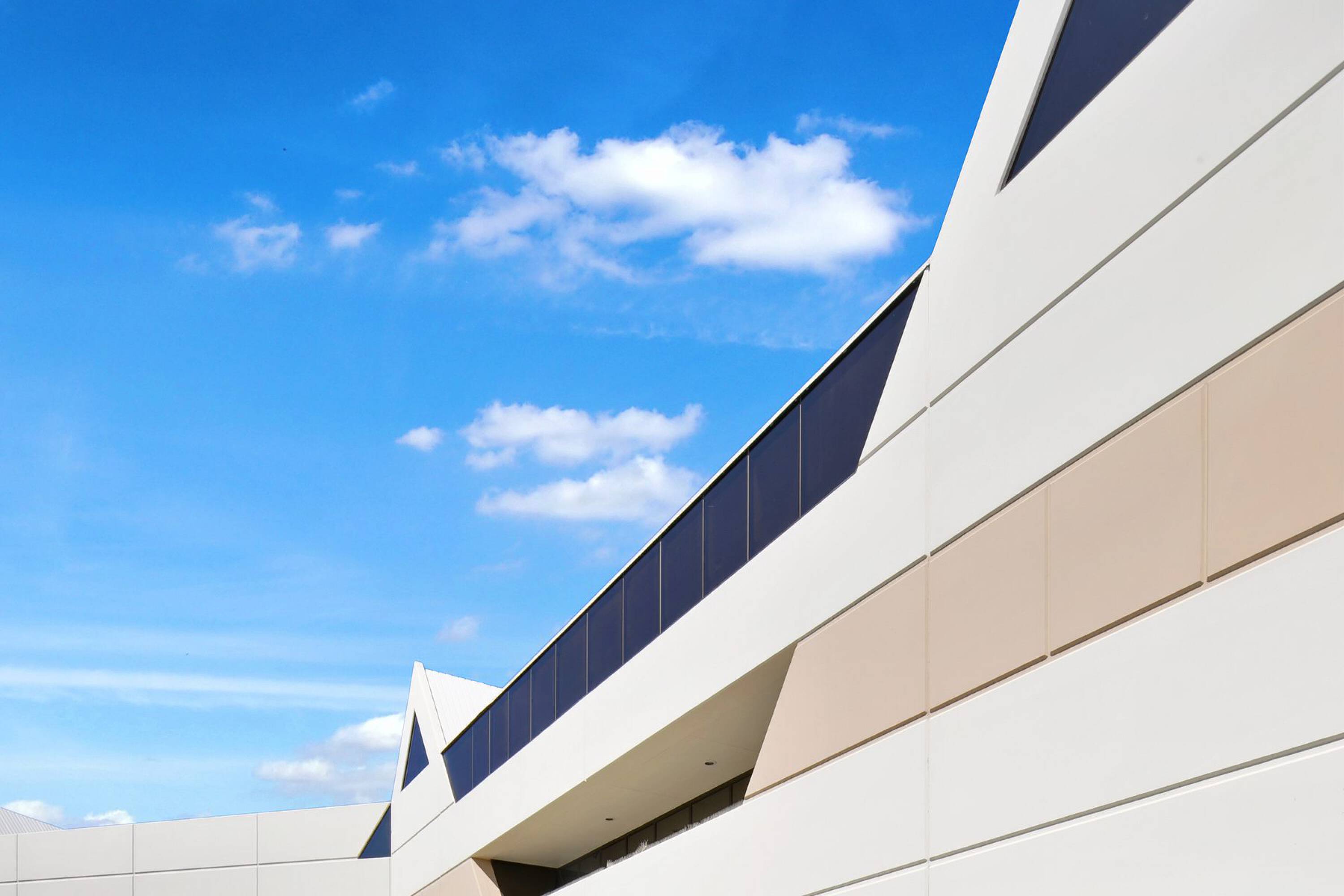 Office building - Two-story office complex with modern glass façade and landscaping.