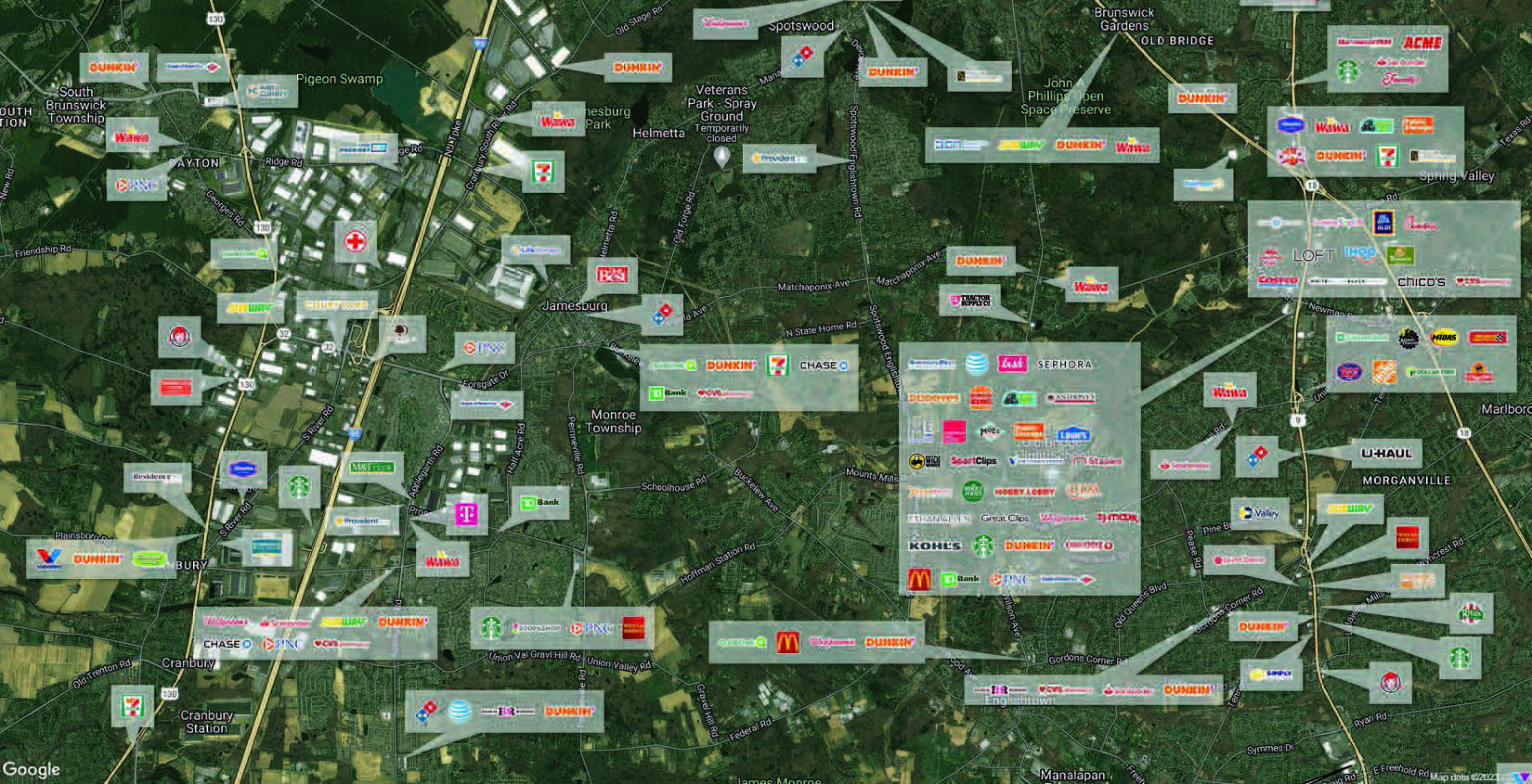 Commercial space available for lease in Monroe Township, NJ.