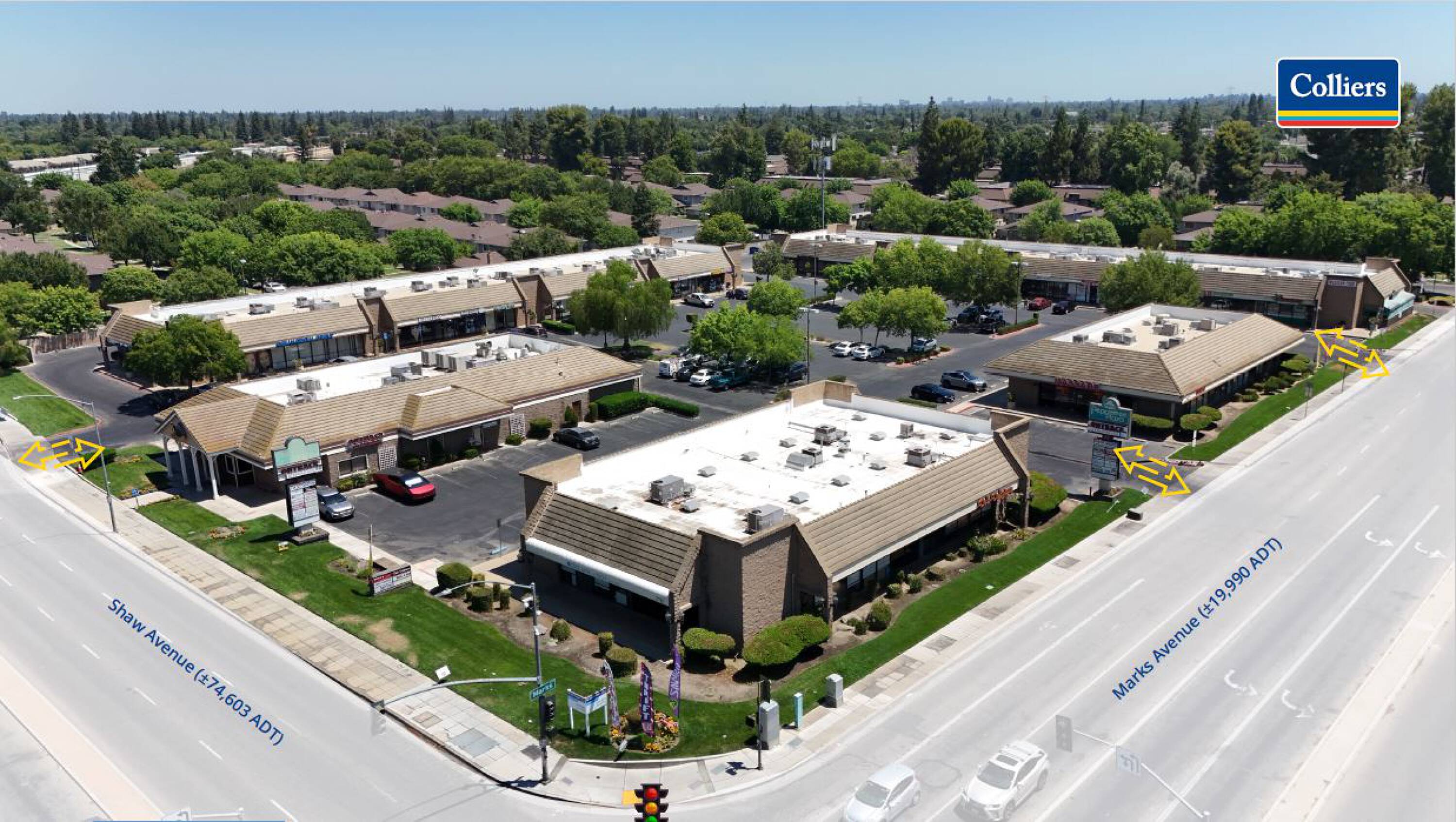 Prime retail and restaurant spaces in a high-traffic Fresno location.