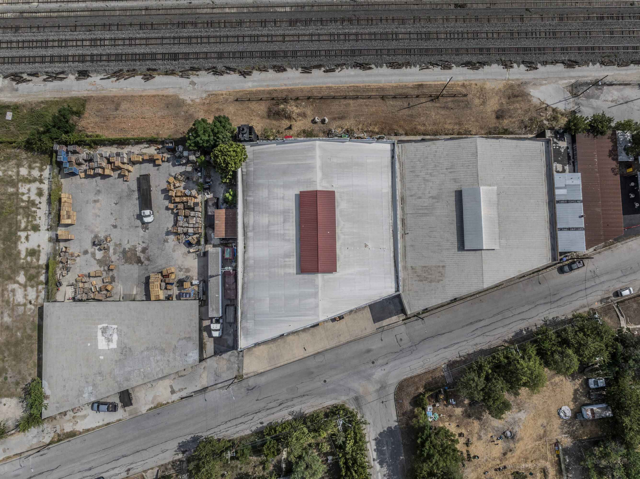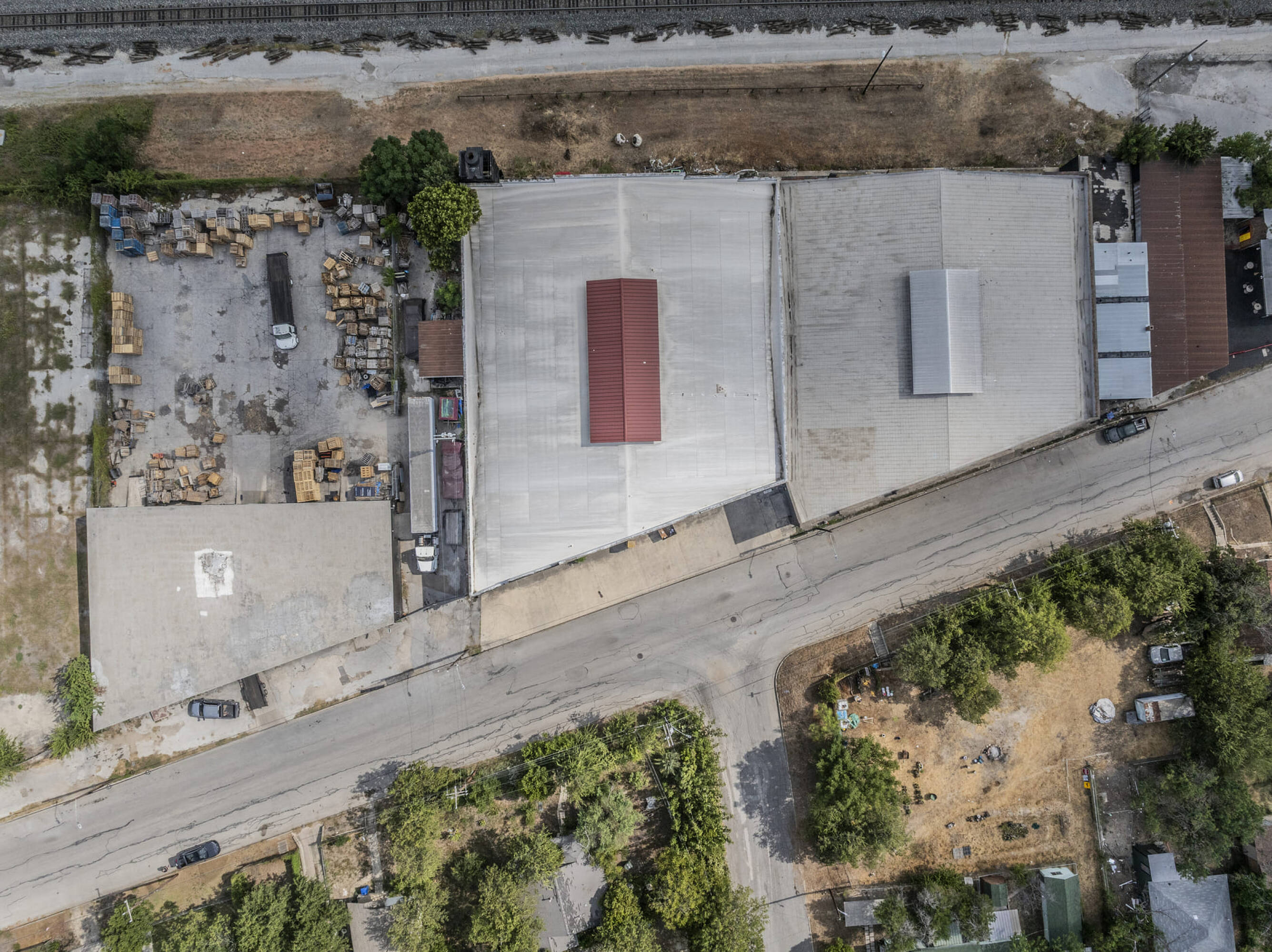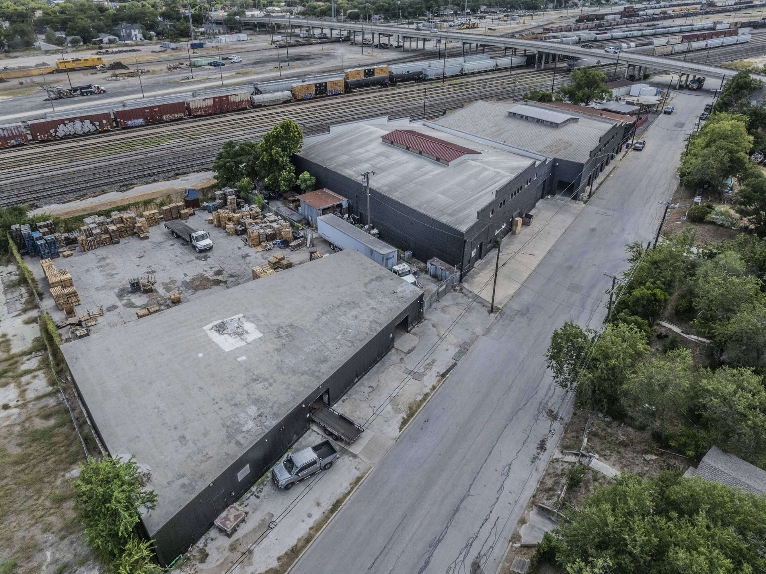 Industrial warehouses near downtown San Antonio with high traffic visibility.