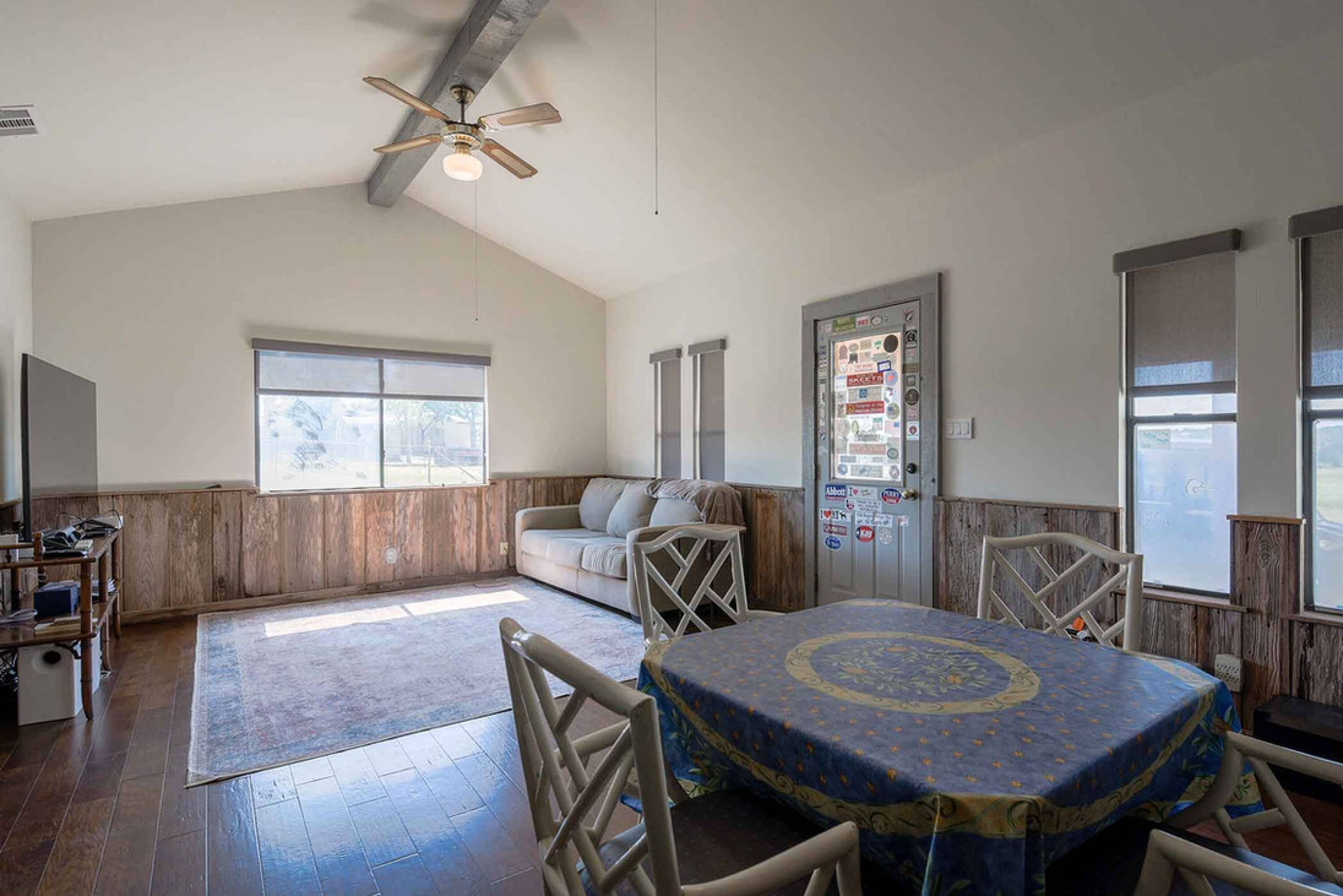 This property presents an opportunity for a home, recreational ranch, or development. The ranch features topography with a gentle roll, oak trees, and open fields. Willow Creek and additional ponds provide supplemental water for wildlife and Longhorn cattle. Improvements include a 4,300 square foot custom main residence, a guest cabin, a pole barn for equipment storage, working pens, and a large barn. A recreational skeet range is also present.