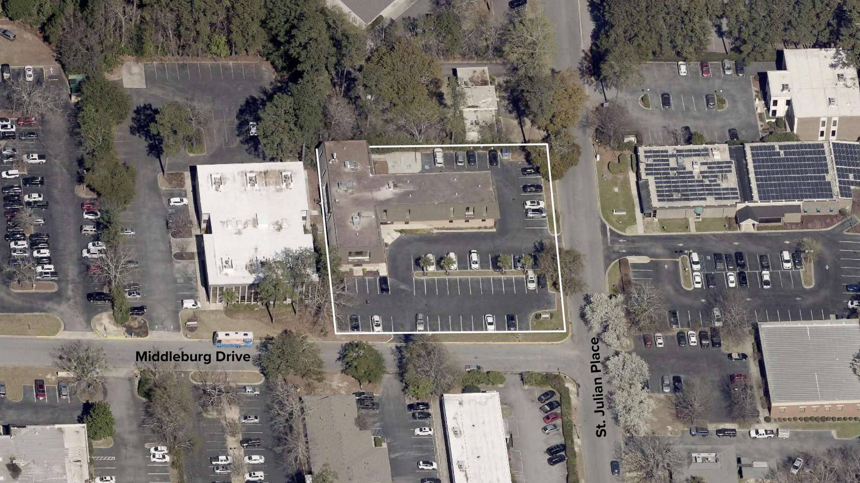 This medical office building, offering between approximately 2,500 and 14,442 square feet, is available for sale or lease. The property is situated on St. Julian Place and Middleburg Drive, within the Forest Acres area.