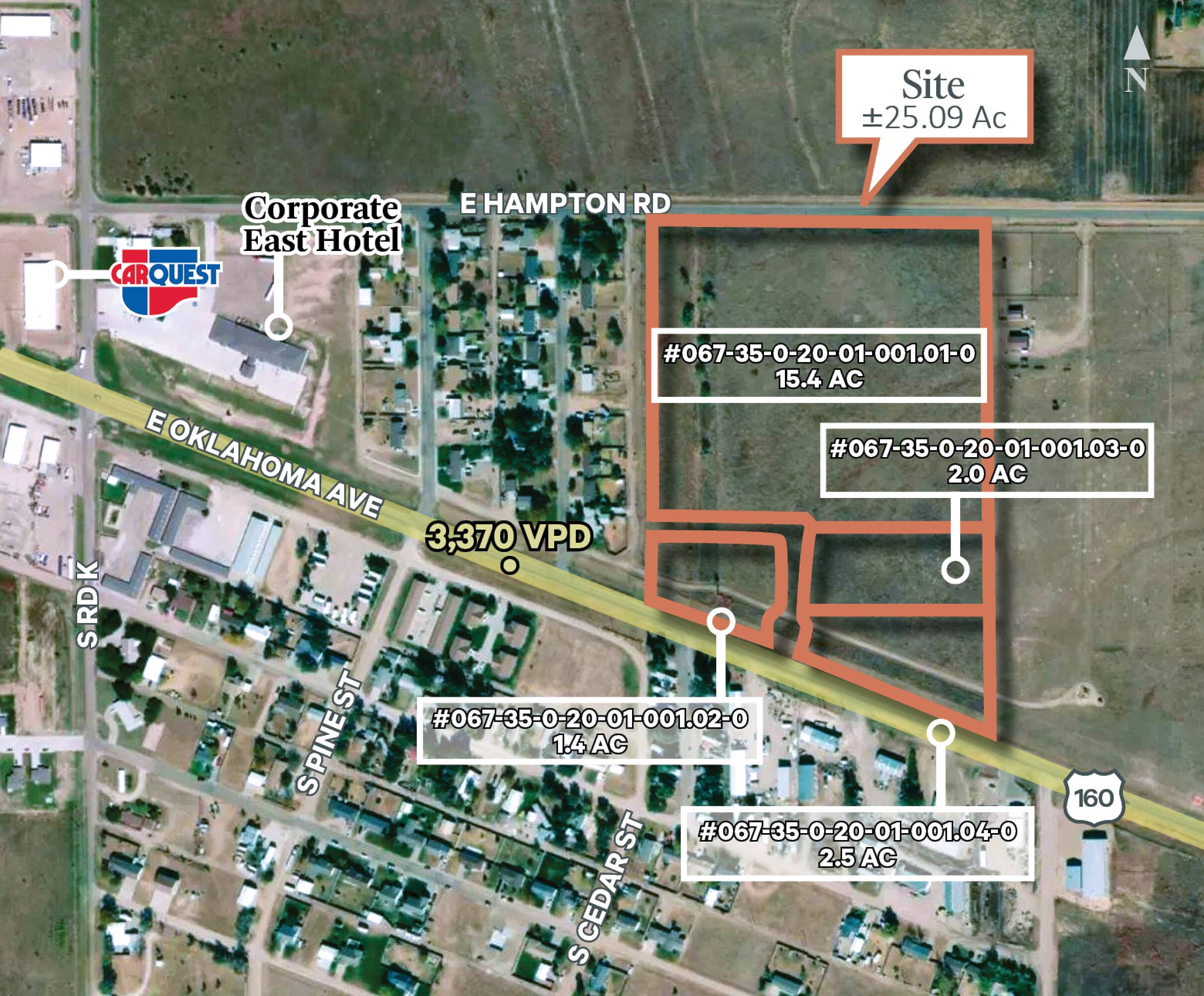 Land parcel with extensive frontage in Ulysses, Kansas.