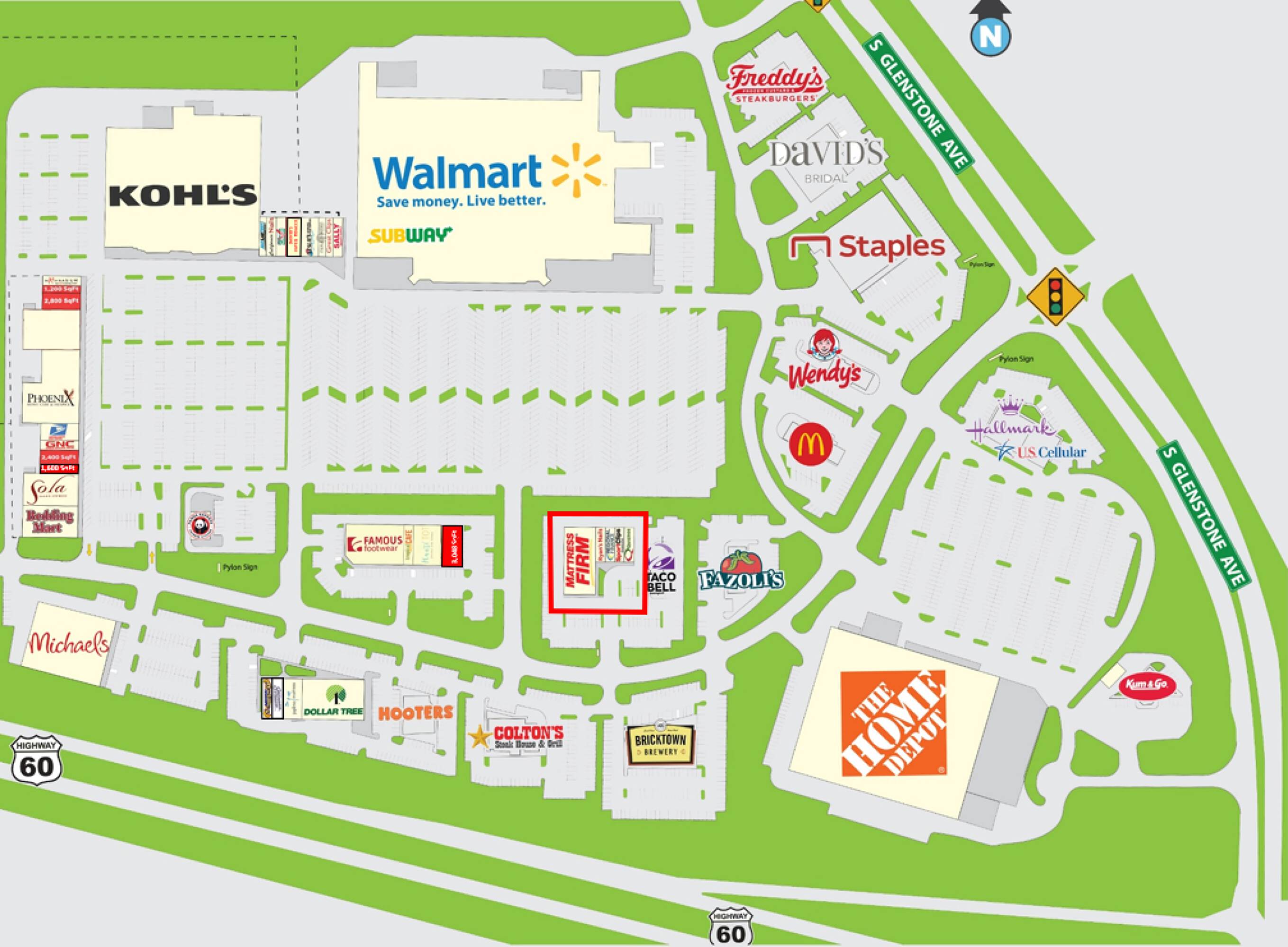 Retail space for lease, anchored by major retailers.