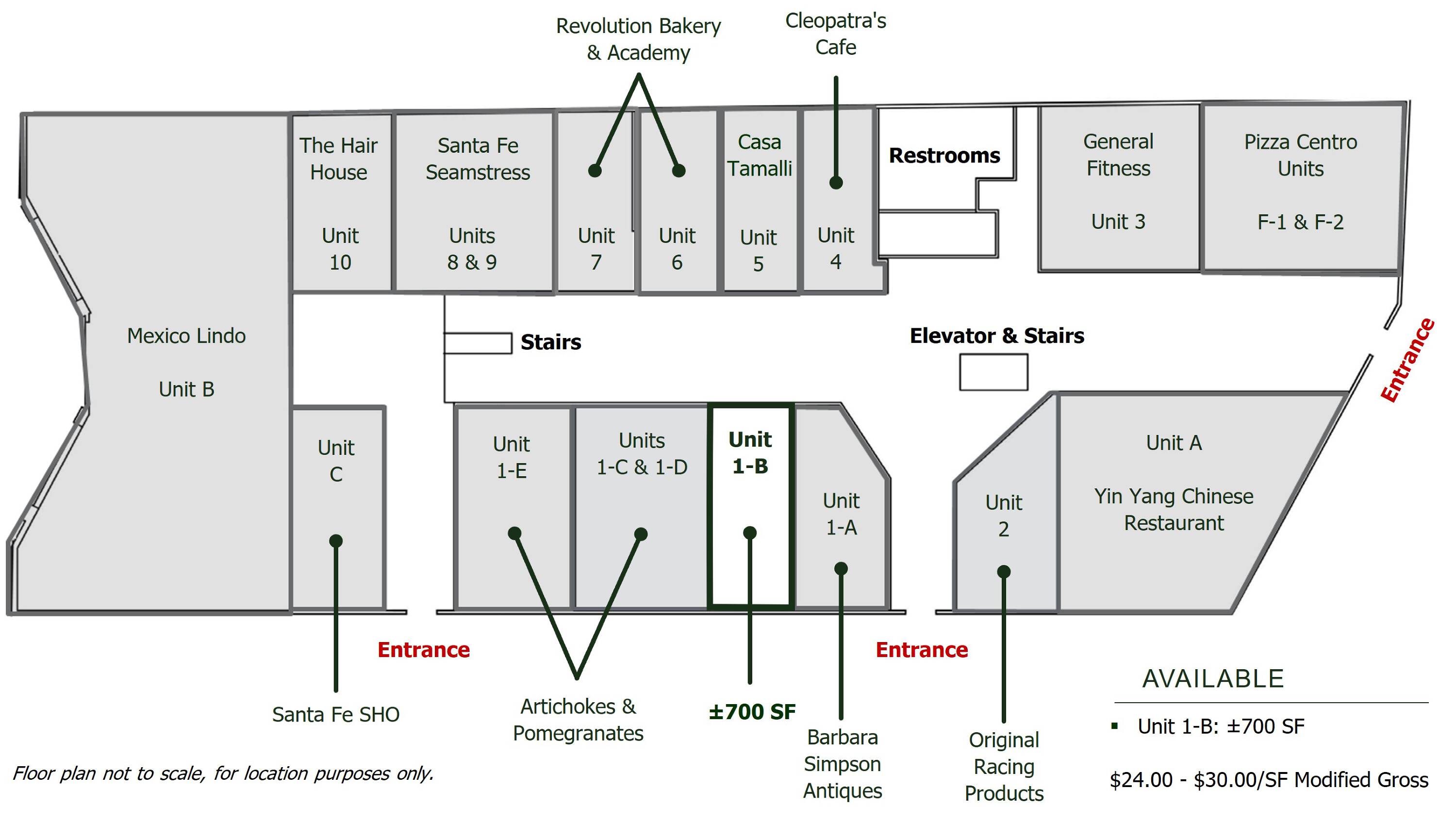 Retail and office units for rent in Santa Fe.