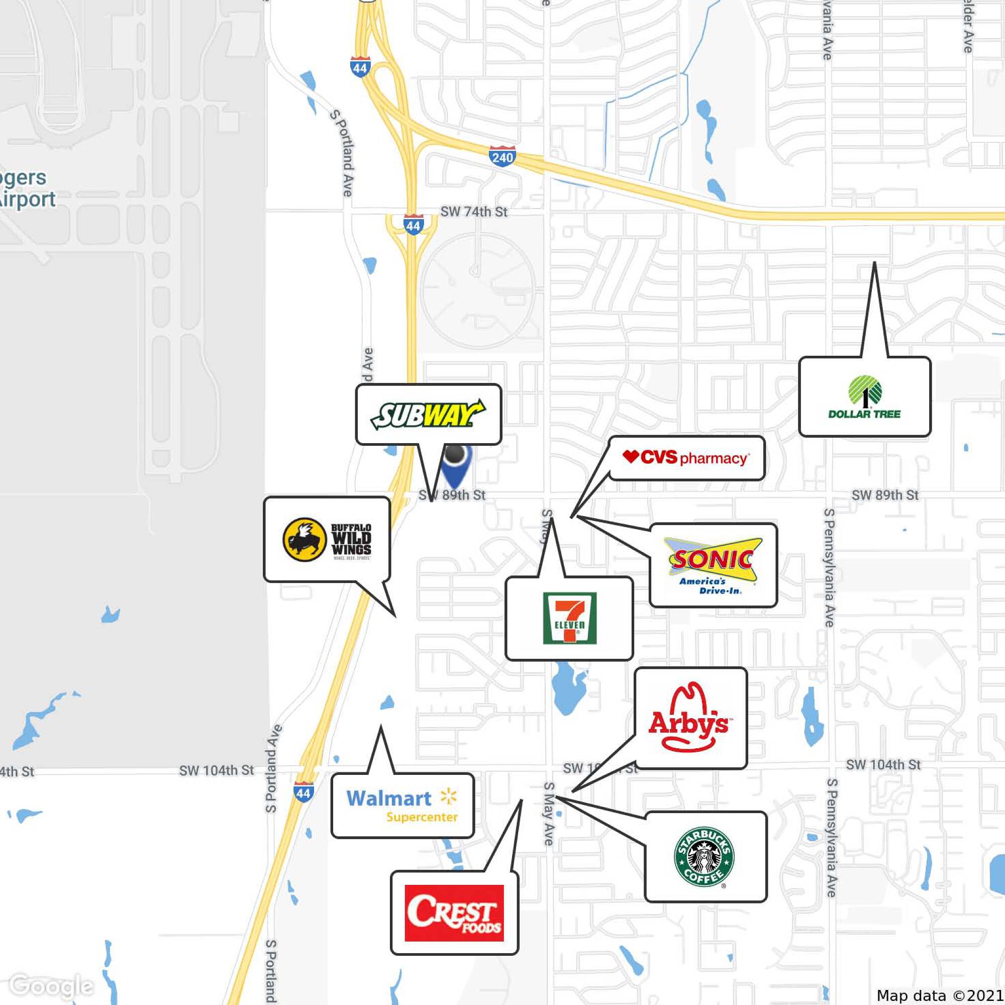 This is a new retail space for lease in South Oklahoma City. The property is easily accessible from S May Ave and benefits from a large daytime population. The Shoppes on 89th are located near a car wash, drug store, fast food restaurant, convenience store, and liquor store. The property draws traffic from multiple nearby apartment complexes and a fulfillment center.
