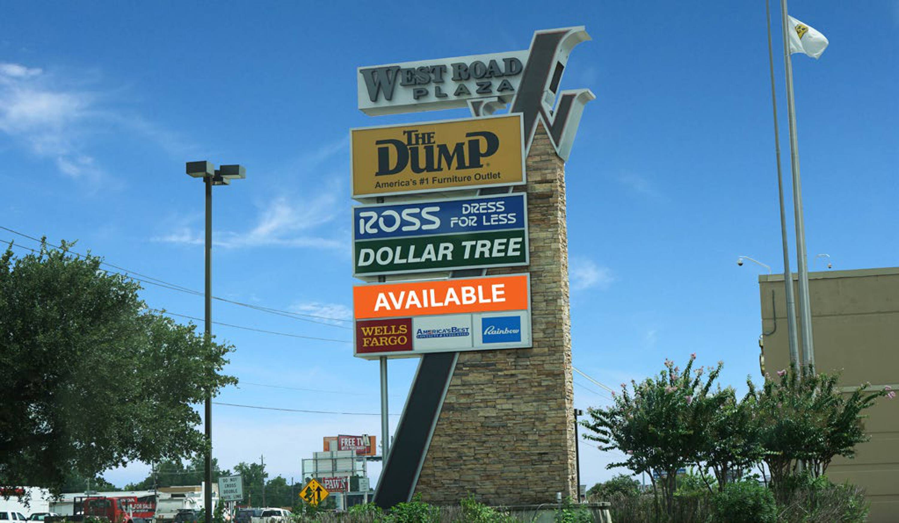 This retail space benefits from excellent visibility on Interstate 45, with exposure to over 250,000 vehicles daily. The location within West Road Plaza provides access to a high volume of customer traffic, with the plaza receiving approximately 3.2 million annual visits. Situated at a signalized intersection, the property offers convenient access with 8 entry points. The tenant mix includes a variety of businesses such as Joe V's, The Dump, Five Below, Dollar Tree, Ross Dress for Less, Marshall's, and Petco. Pylon signage is available.