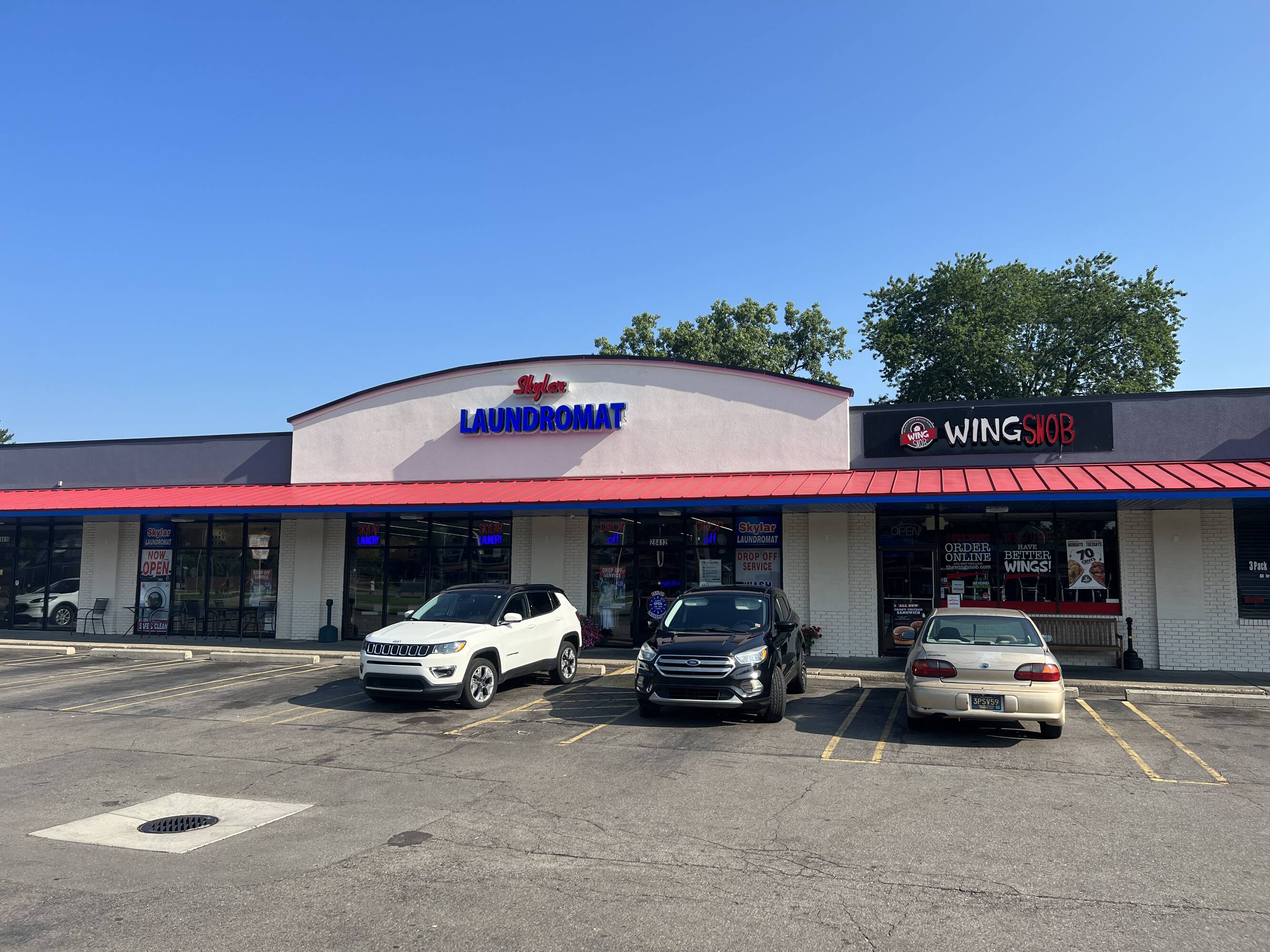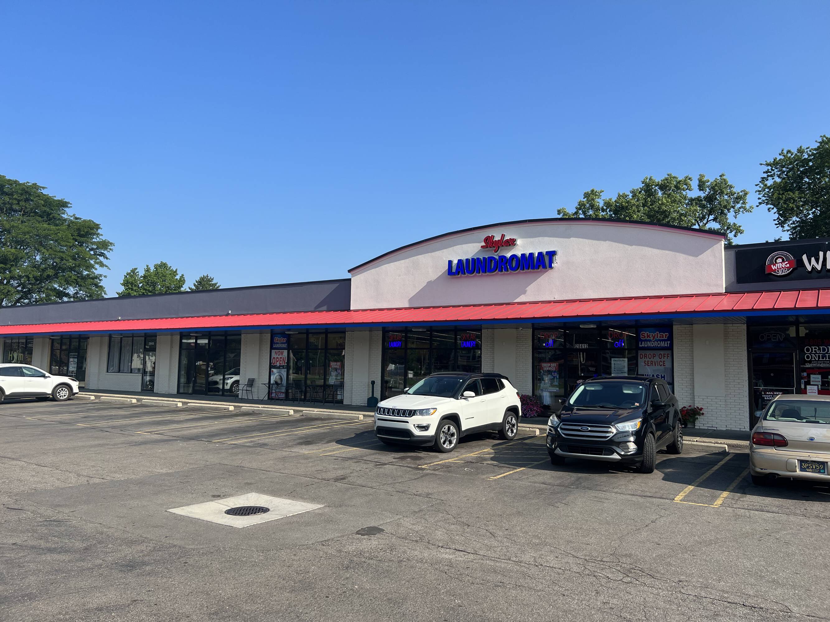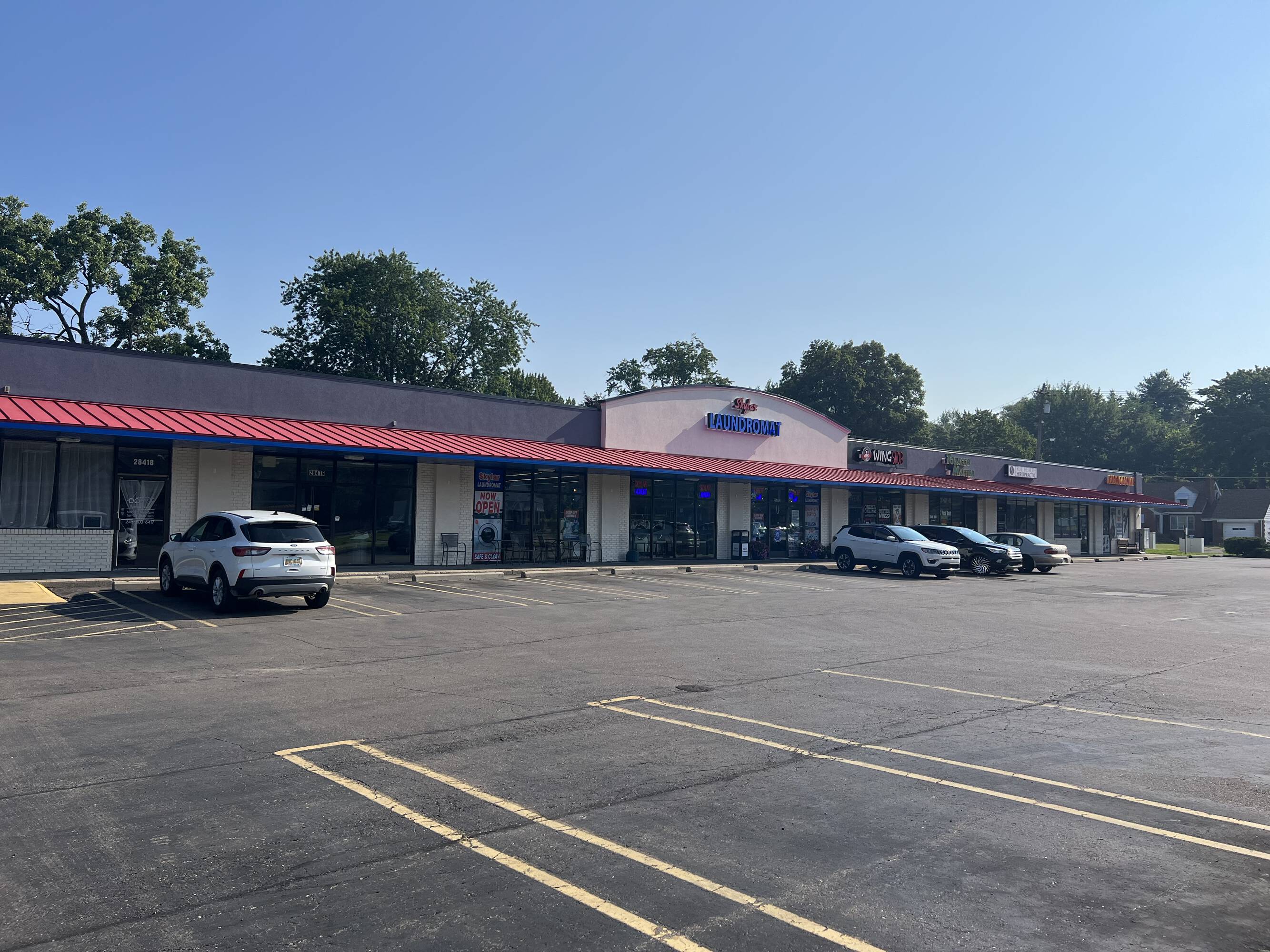 Available for lease are spaces ranging from 1,000 to 1,200 square feet within a well-maintained shopping center located in Livonia. The center already hosts Wing Snob and Skylar Laundromat.