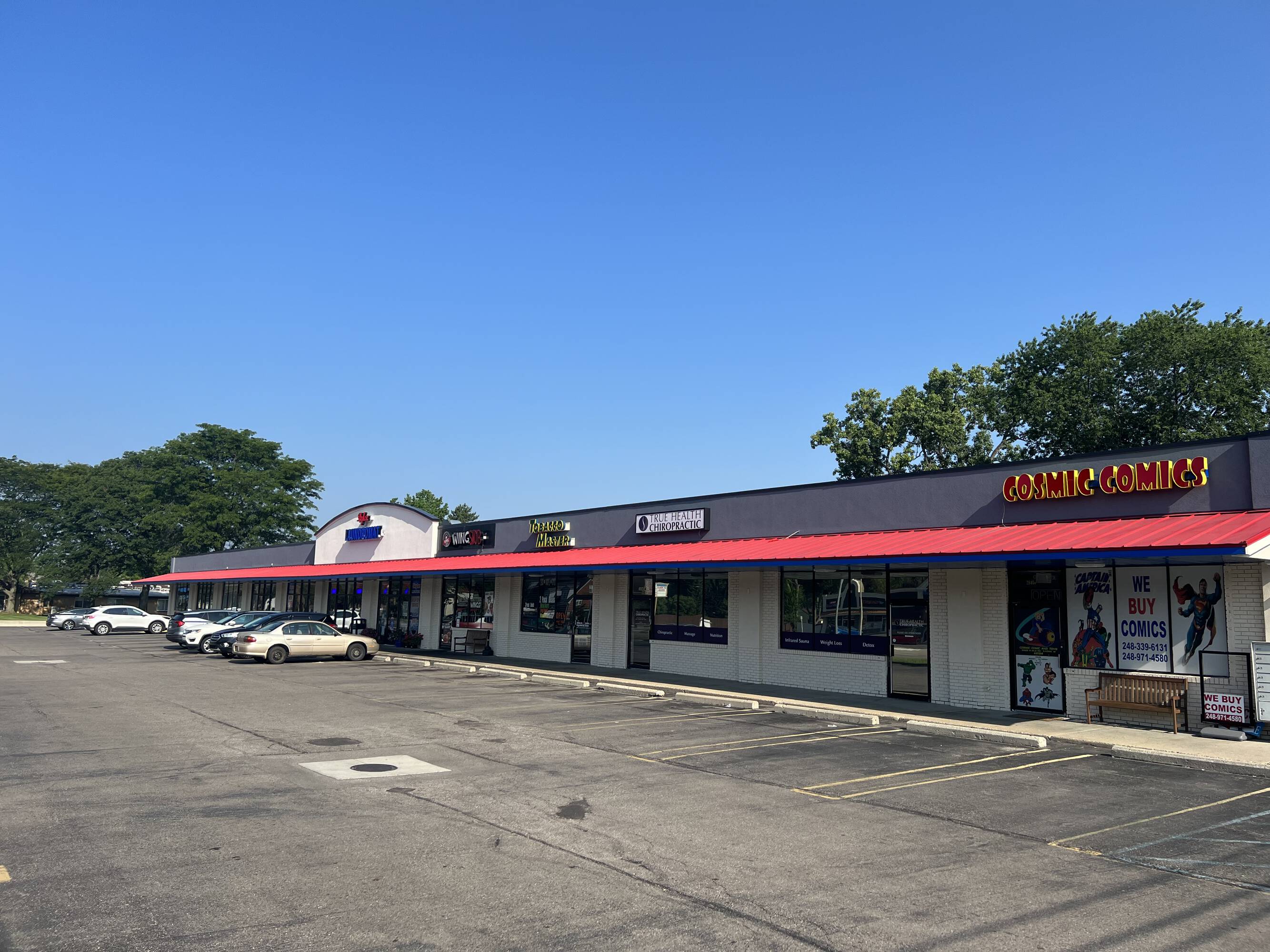 Shopping center - Well-maintained Livonia shopping center with spaces for lease.