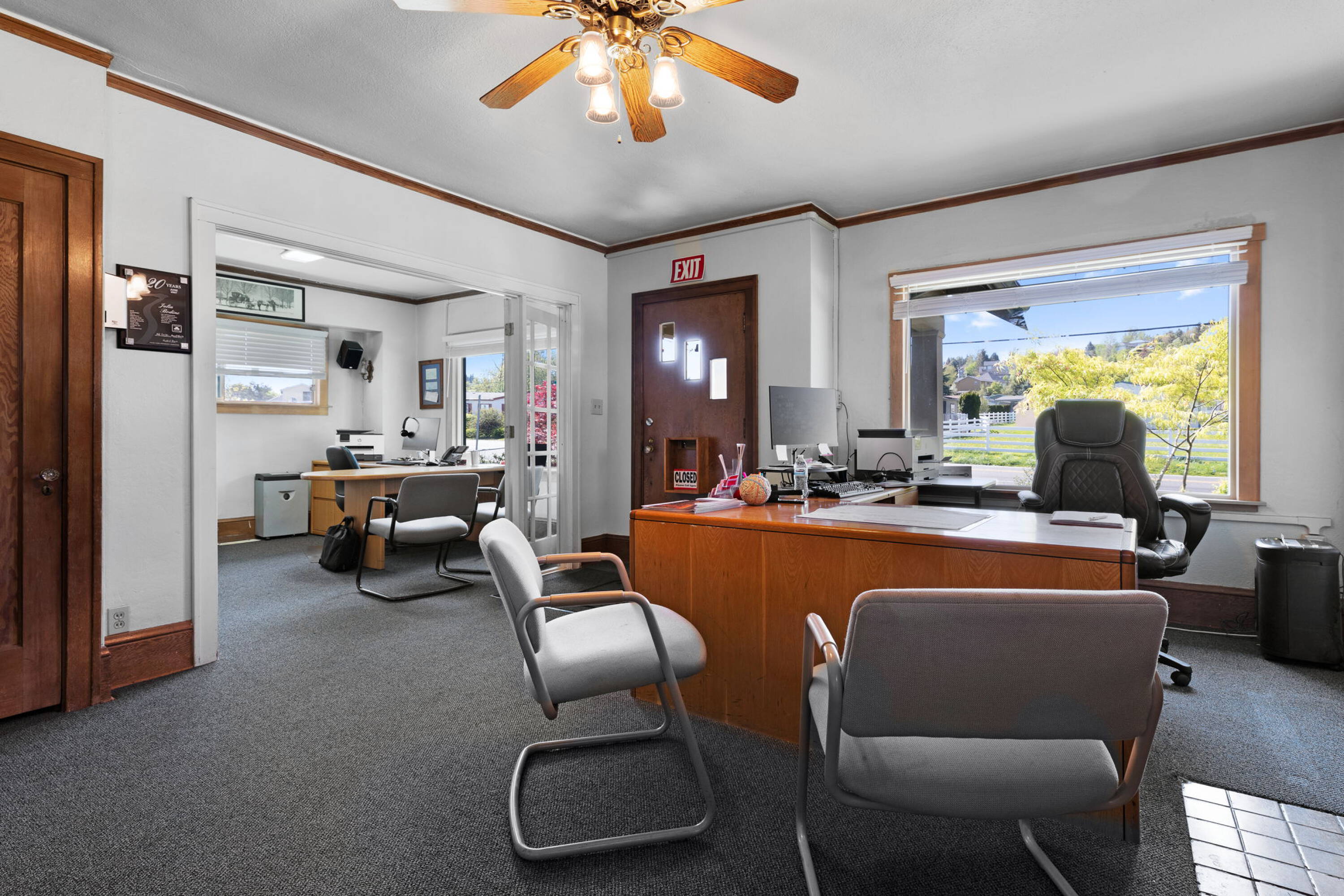This flexible commercial building, totaling 2,572 square feet, presents an ideal owner/user opportunity in the desirable Powell Valley neighborhood. Situated on a 0.23-acre (10,205 SF) lot, the property is zoned for Conditional Use Permit for Office Use and is currently used as an insurance agency. The main level, encompassing 936 square feet, features a lobby/reception area, one private office (with potential for up to 3 offices), a dedicated conference/meeting/co-working area, a full kitchen with breakroom/nook, and one full bathroom. The upper level, spanning 700 square feet, includes two offices/private rooms, a reading nook or storage area, and one half bathroom with hardwood floors throughout. The basement level, also 936 square feet and with separate exterior access, offers two offices/private rooms, one open/co-working or flex space, a full kitchen, a full bathroom, a laundry room, and a storage area. The versatile layout is suited for multi-tenant or hybrid work models. Additional highlights include plenty of off-street parking, prominent street exposure, and monument signage opportunity. This property offers a strategic mix of residential charm and commercial functionality, ideal for small businesses seeking flexible workspace in a community-oriented setting. It presents an excellent opportunity for a daycare or pre-school, live/work setup, professional office or counseling services, or a creative studio or co-working use.