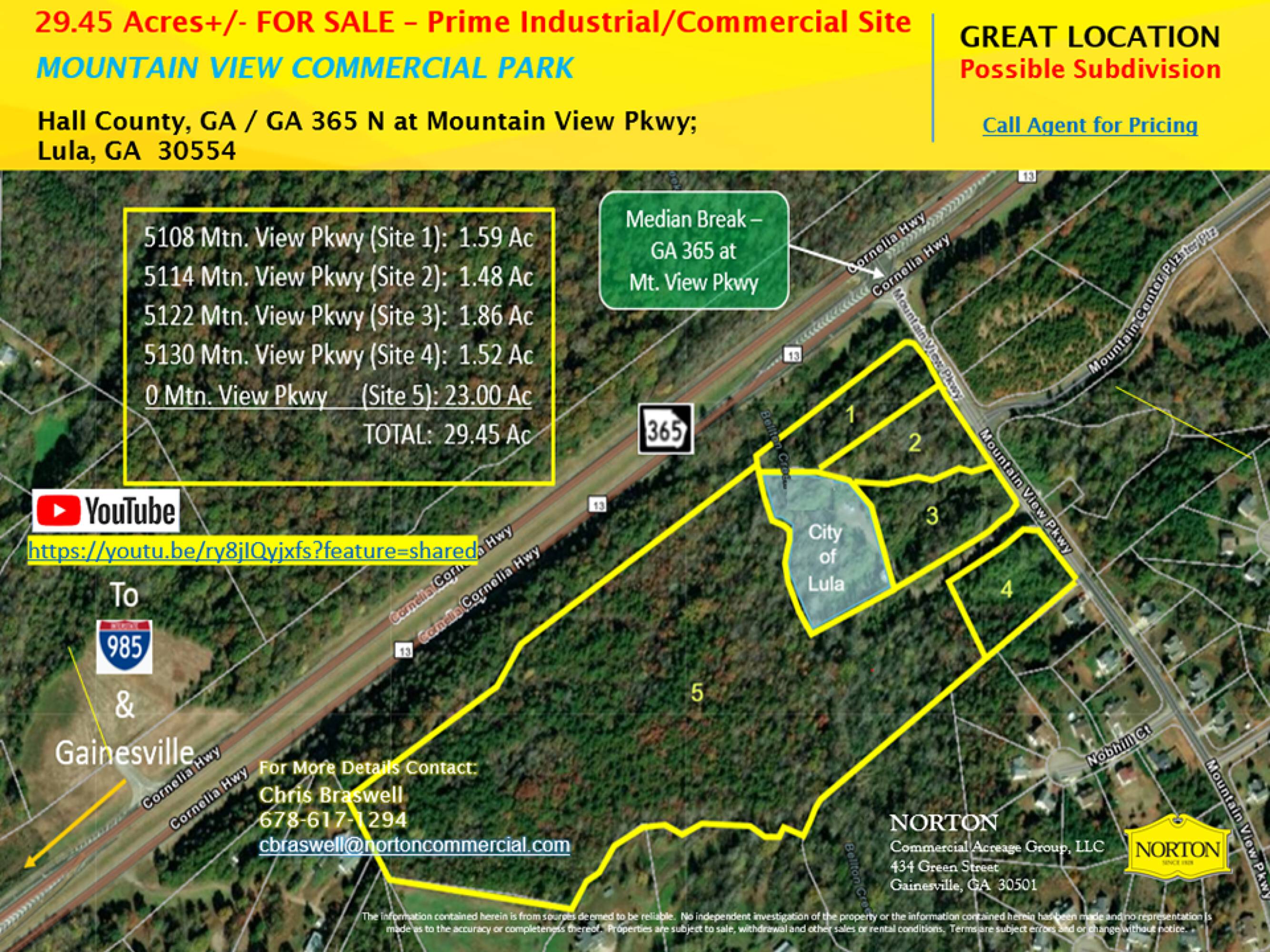 This property features: Prime Location: Minutes from the new Inland Port.; High Visibility: Approximately 2,000 ft of Ga. 365 road frontage.; Convenient Access: Median Break located off 365 and Mountain View Parkway.