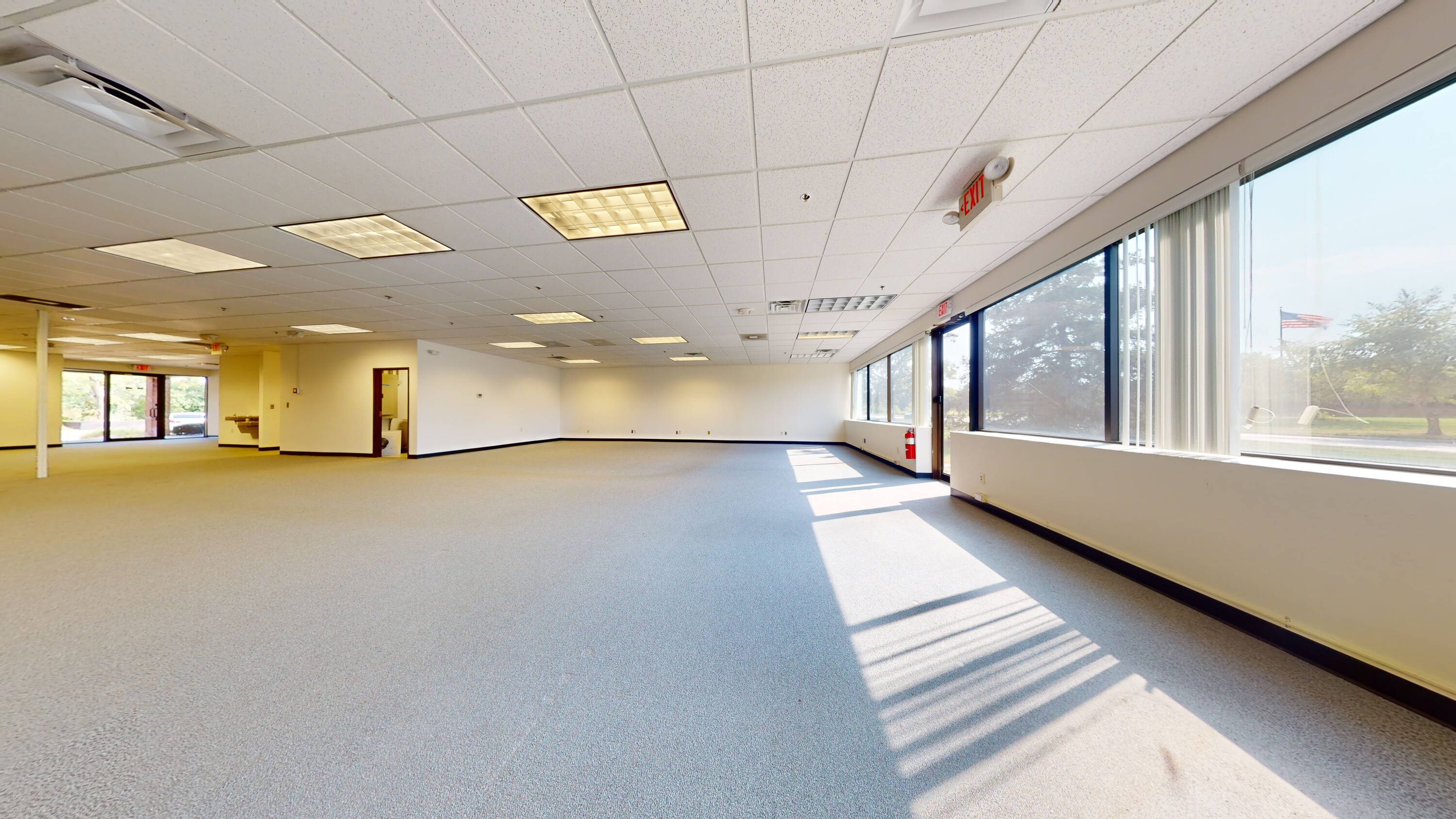 Flex office space with open floor plan and ample parking.
