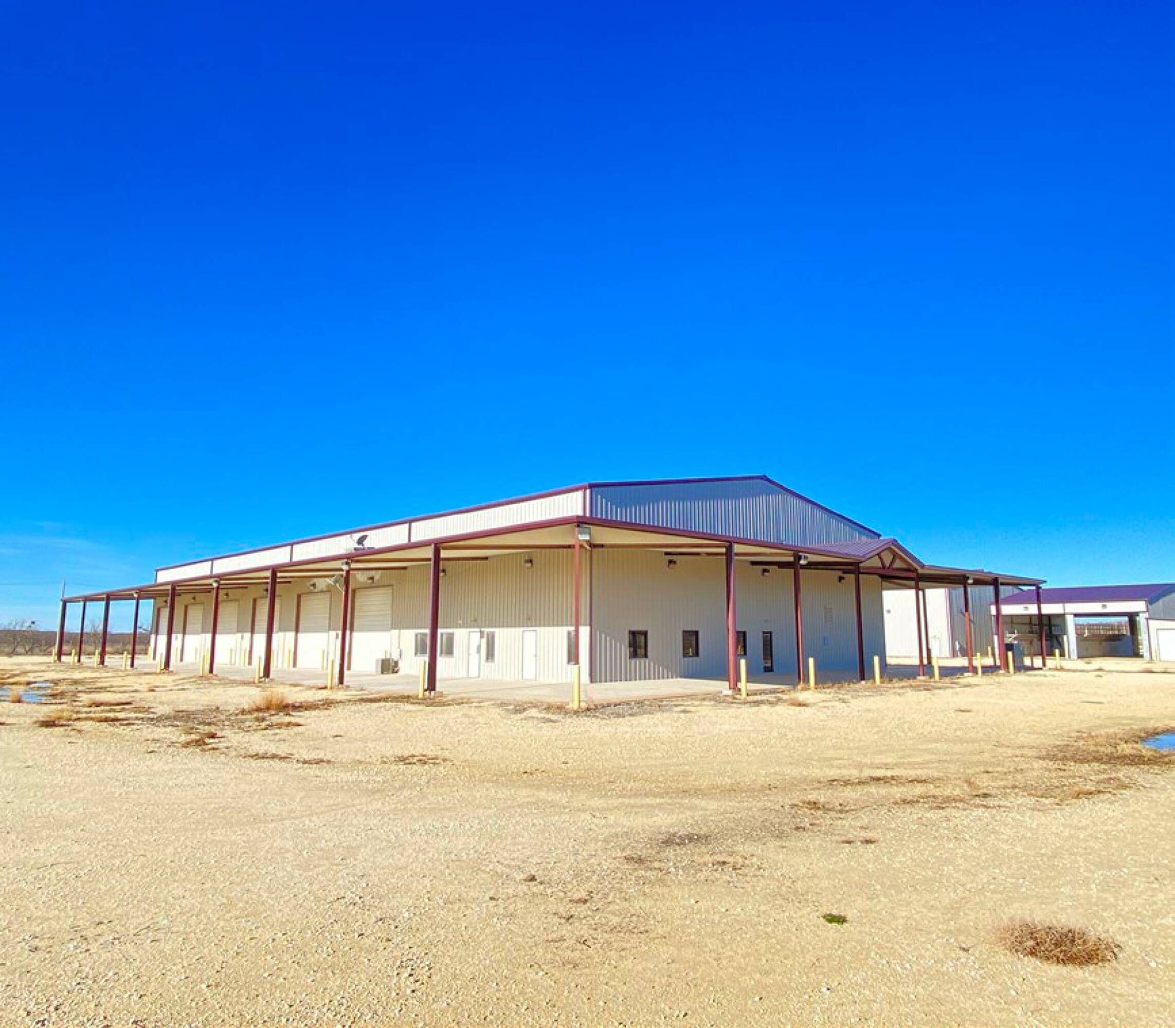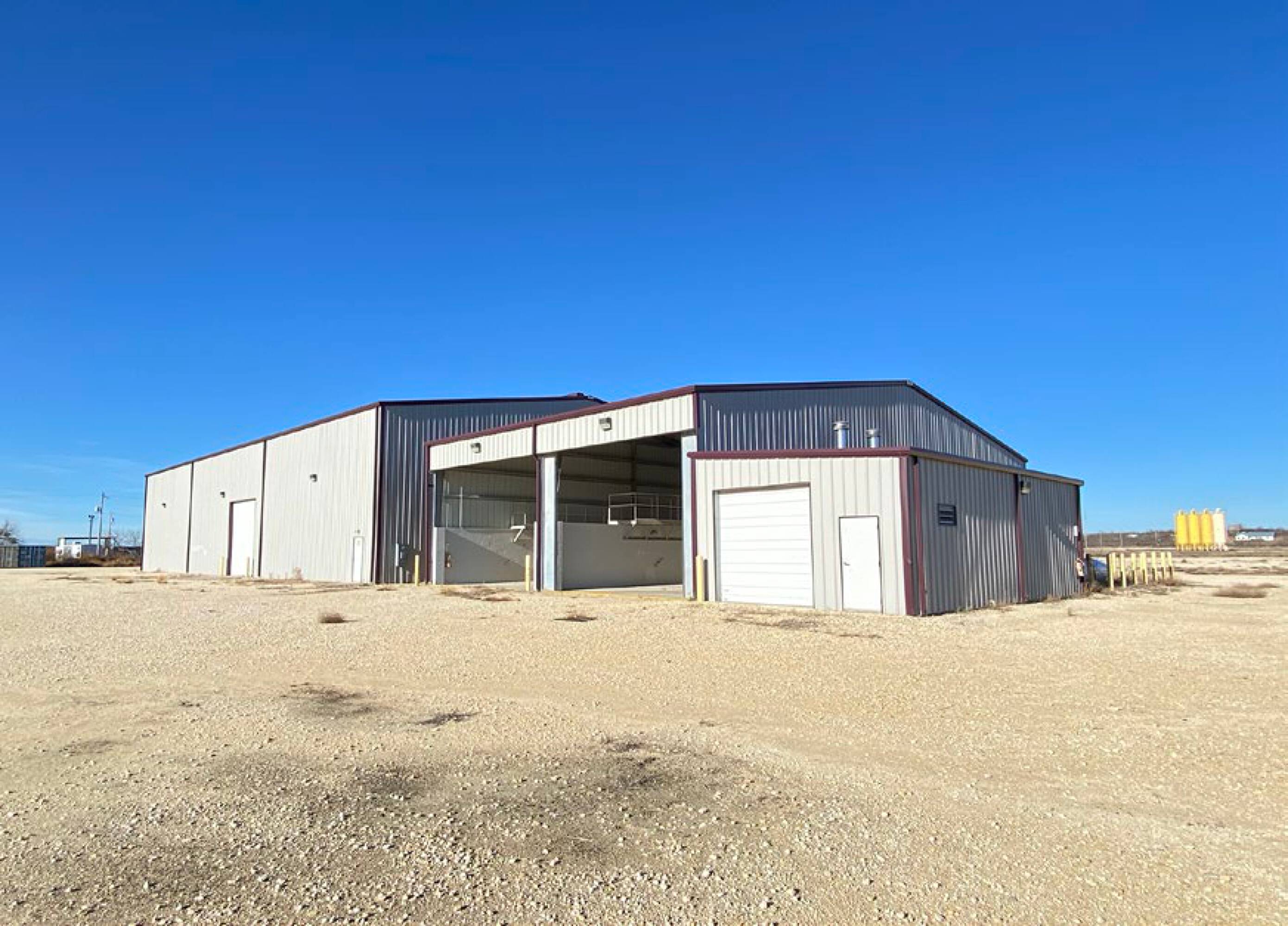This top-quality oilfield and industrial service facility is well-equipped for heavy equipment and vehicle fleet service. The property features a significant outside storage area and oversized drive-through service bays, making it ideal for large-scale service work in the region. The facility was formerly utilized in conjunction with the rail spur and sand silos on the adjacent land, and these features may be available for a user. Nearby workforce housing and other amenities are available for long-distance commutes to job sites.