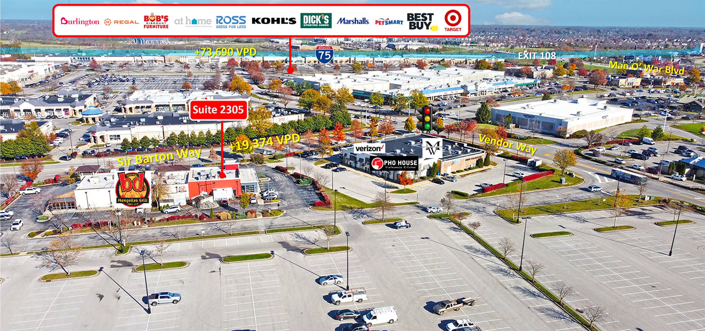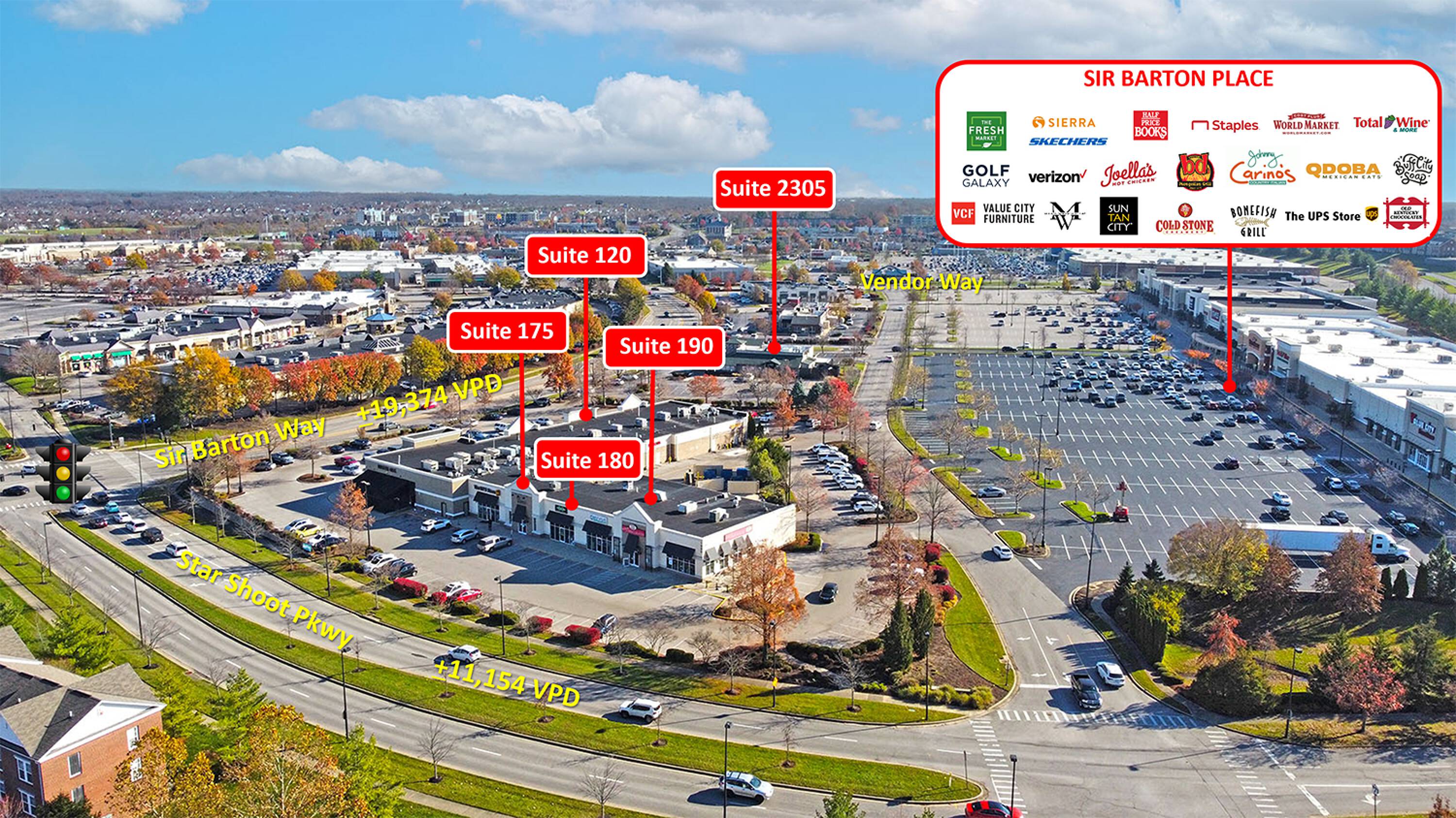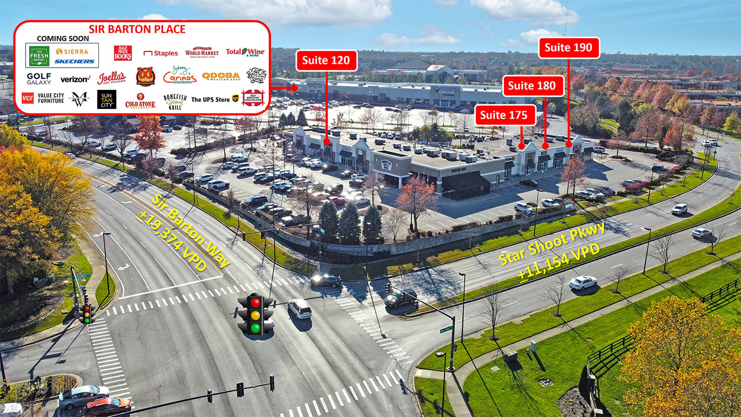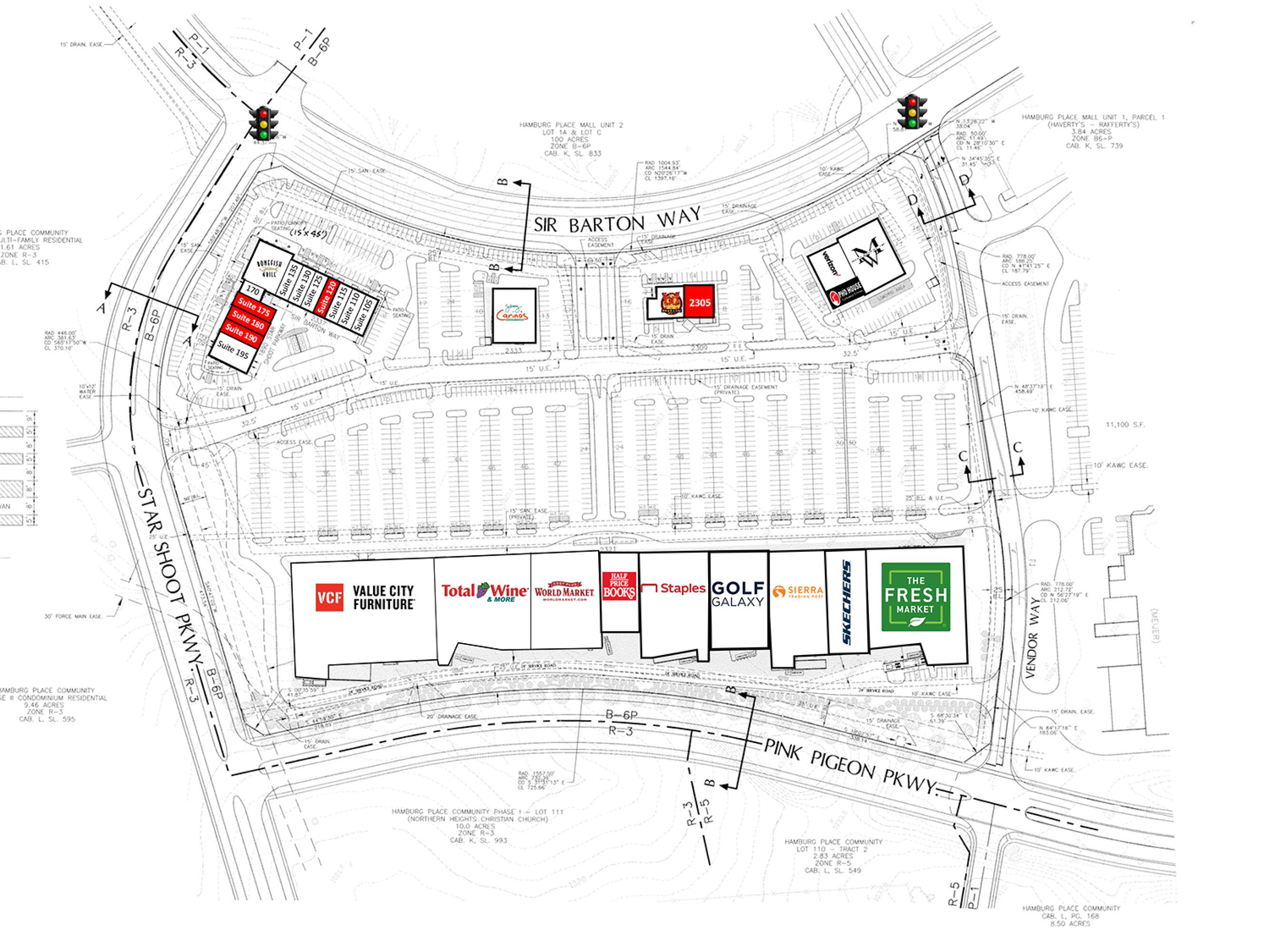 Retail space is available within Sir Barton Place, situated in Hamburg Place. Hamburg Place is a regional shopping center and office development located off I-75 and minutes from downtown Lexington. The development includes 160 acres of professional offices, 1,200 acres of residential development, and over 3 million square feet of retail space.