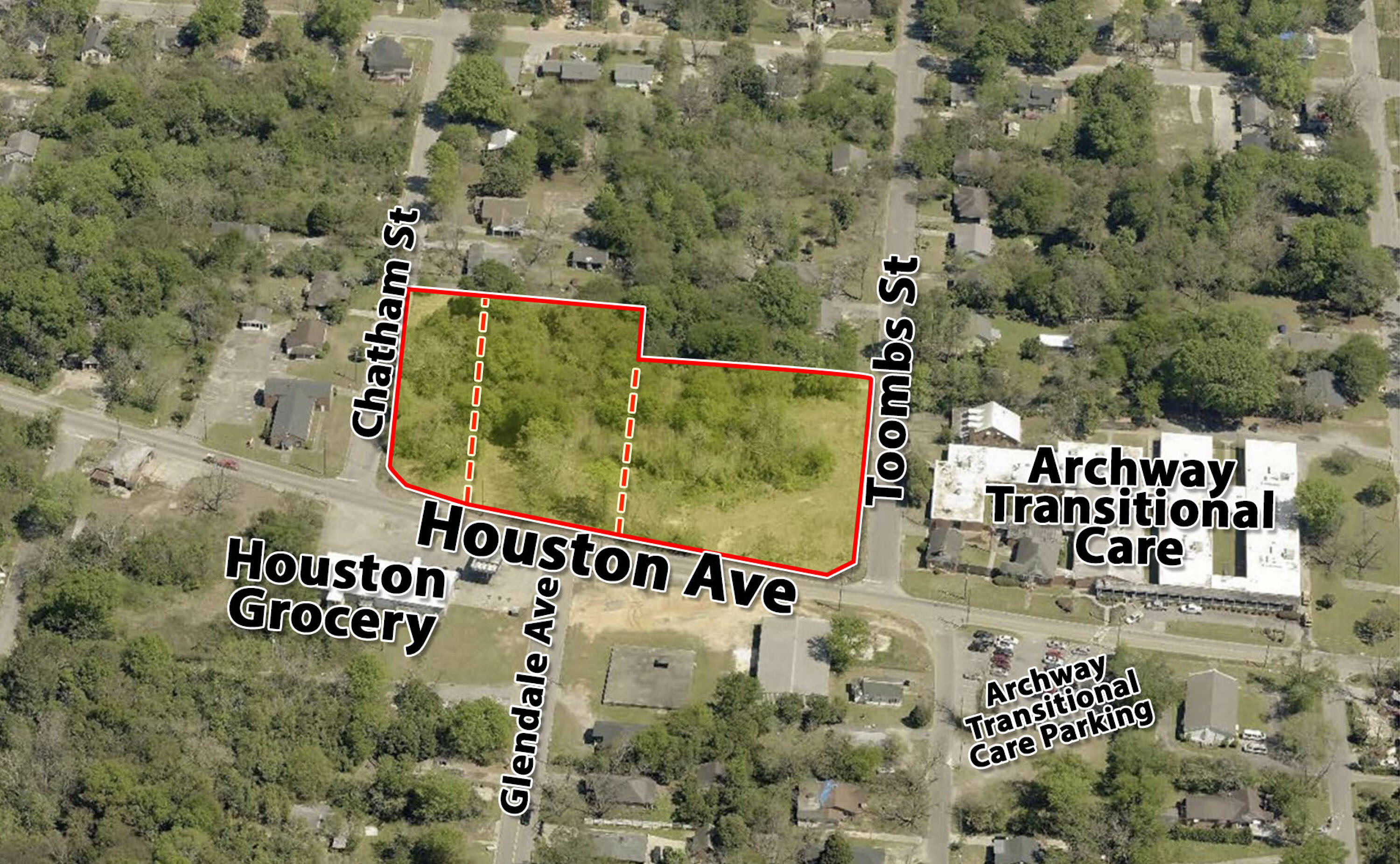 This property features: Less than 1 mile from I‑75 and Pio Nono Avenue (Highway 41); Three separate road frontages (Houston Ave, Chatham Street, and Toombs Street); Three (3) lot parcel
