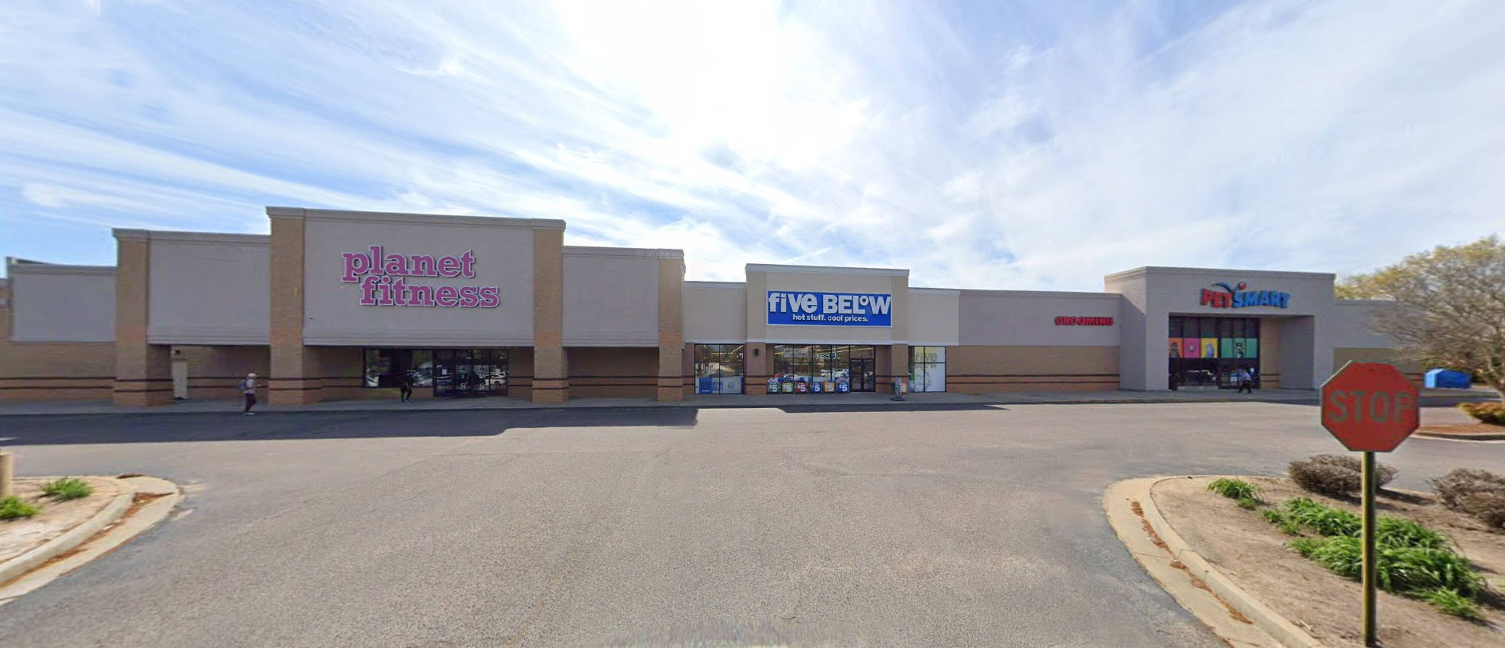 Retail spaces available in a co-anchored shopping center.