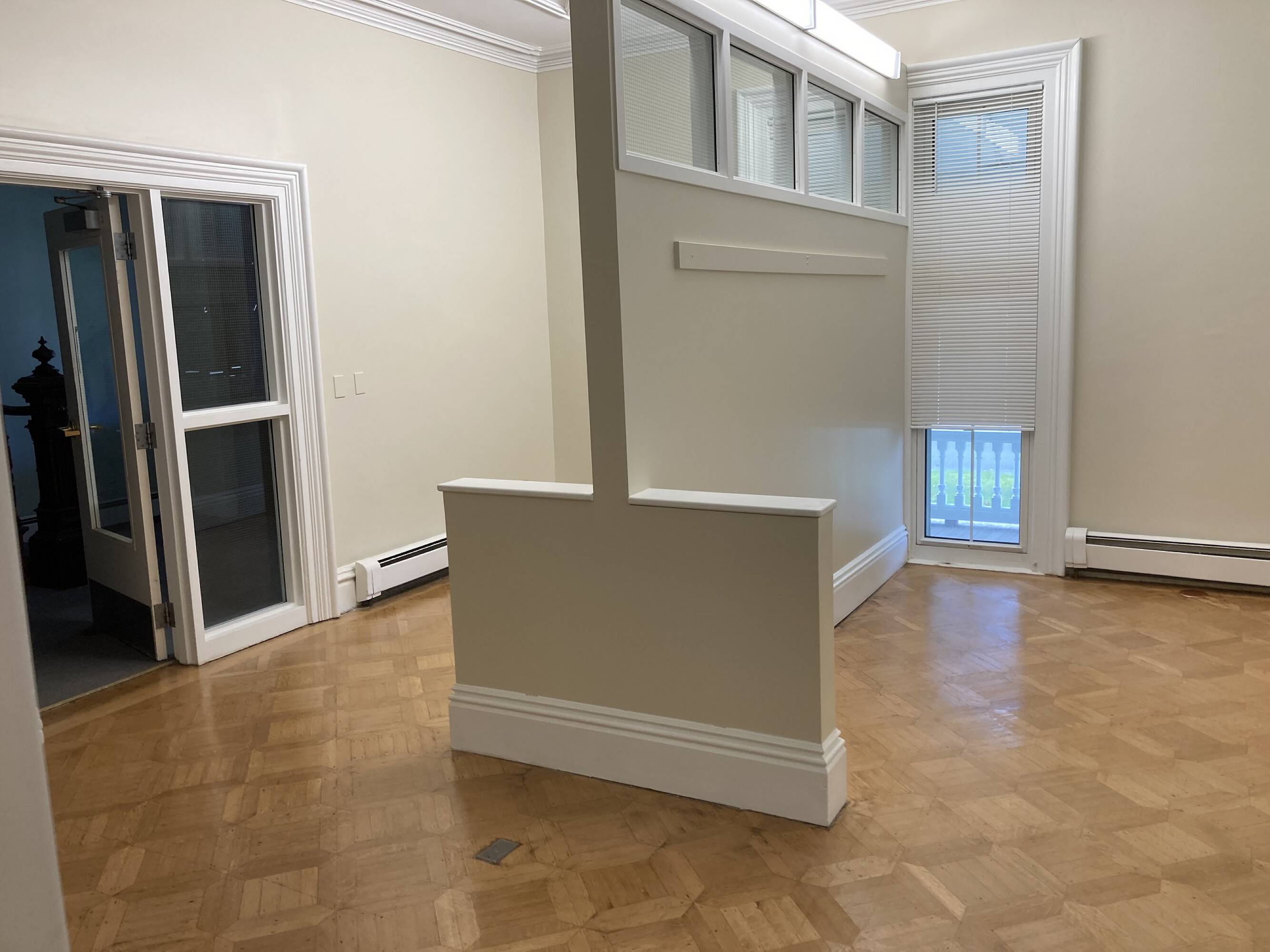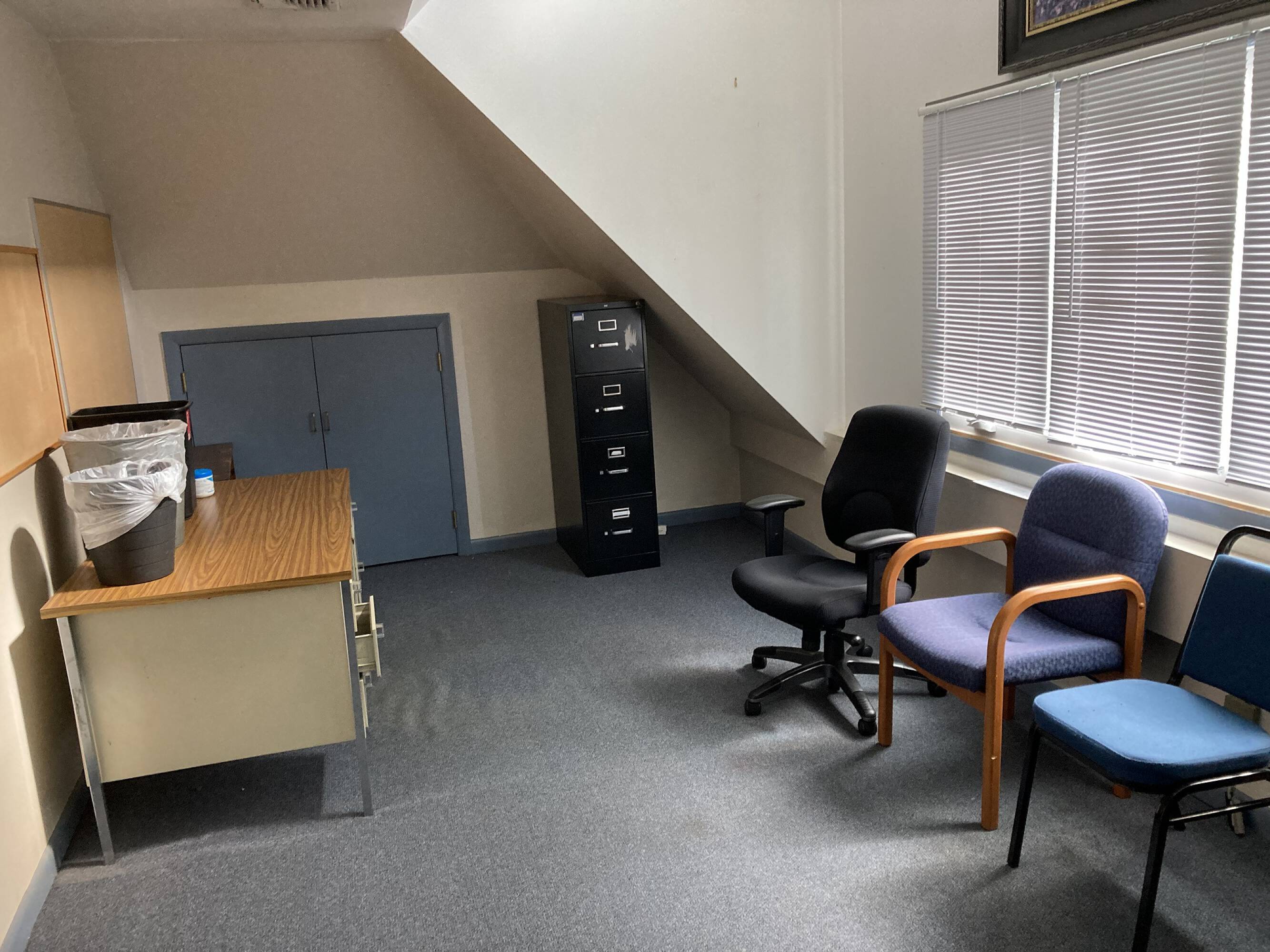 Small office spaces are available for lease, with rents starting at $315 per month, including utilities. The property features a shared kitchen, bathroom, and conference room. It is located in a well-maintained 1920s building, offering both on- and off-street parking. The building has frontage on Granite and Channing Streets and includes refinished hardwood floors. The property is located across the street from Williams Park and provides quick access to I-95.