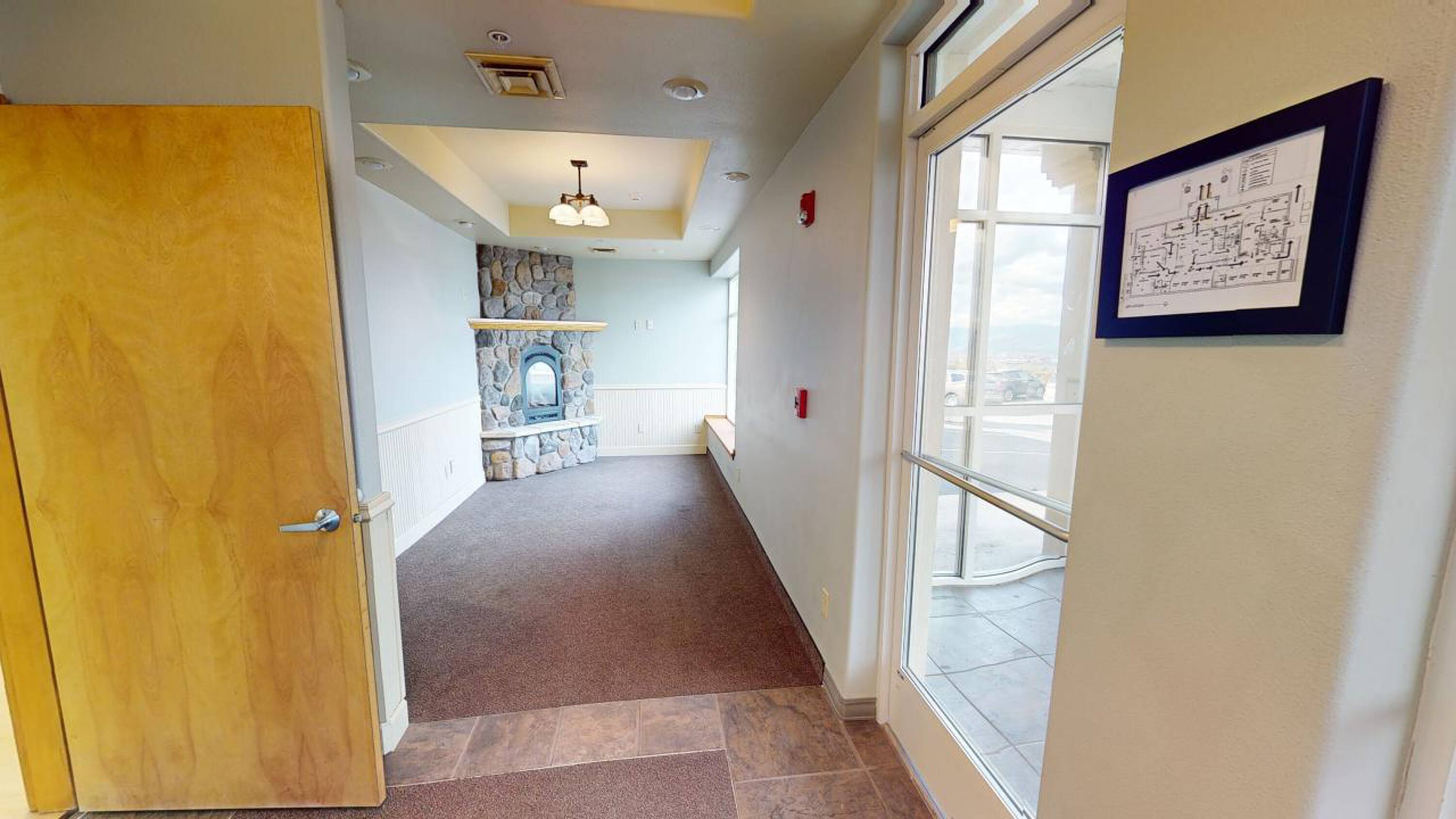 This condominium unit features a double entrance, a large waiting area with a fireplace, and a reception area. It includes a break room with a kitchenette, an electrical room, three procedure rooms, a chart room, a report room, and an equipment storage room. The unit also contains a hot water closet, two offices, a janitor’s closet, and five bathrooms, specifically five half baths. A nurses’ station, an open examination area that can be partitioned with curtains, and an open recovery area with partitions are also present. The unit is equipped with multiple gas-forced air-heating systems with central air-conditioning. The electrical system has been updated to accommodate medical office use, featuring two electrical panels. Procedure areas are equipped with oxygen and medical infrastructure. A 100% dry fire suppression sprinkler system and typical security features with keyed entries are in place. The unit has the potential to be split into two separate units and is located in Lewiston, ID.