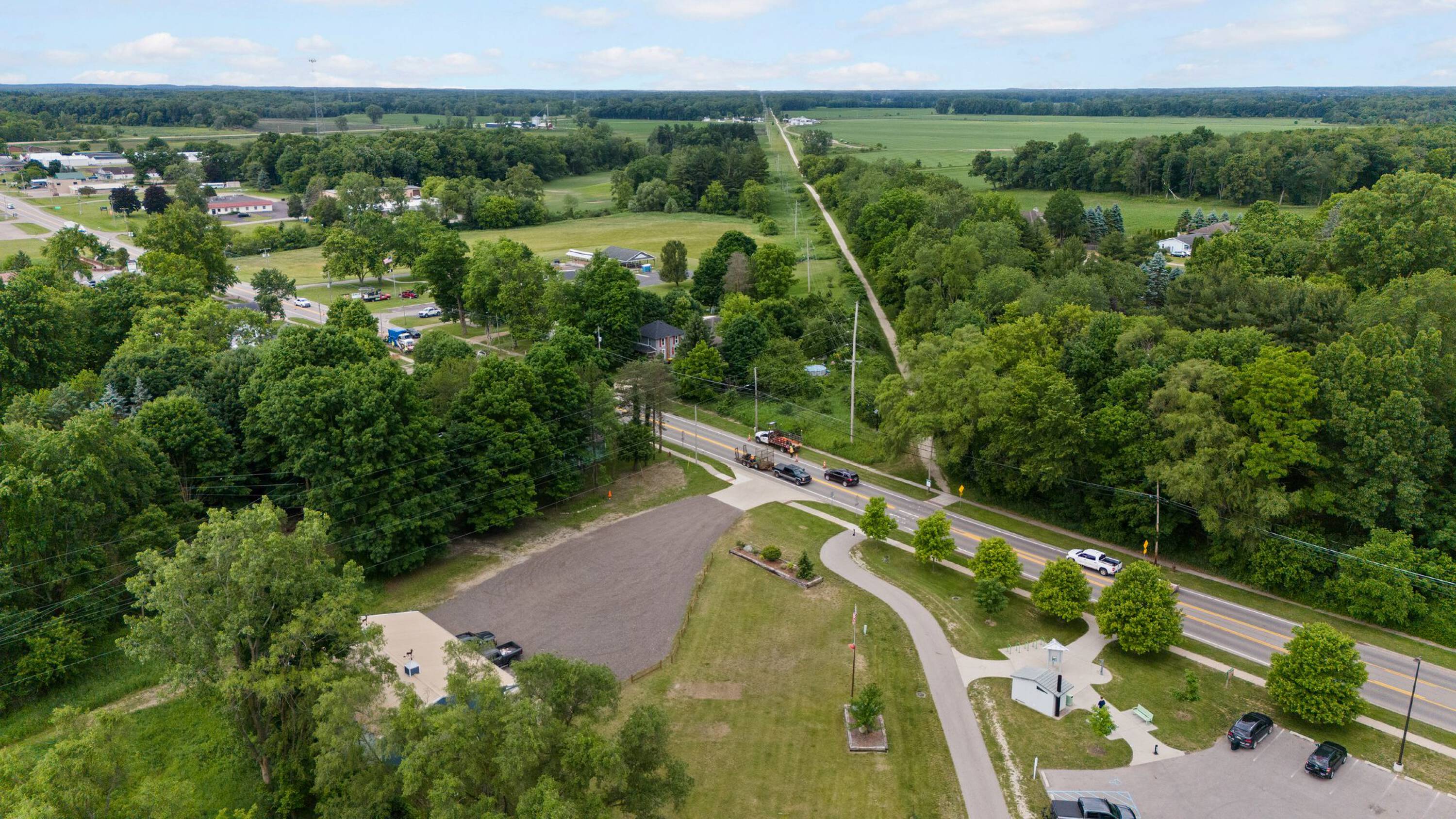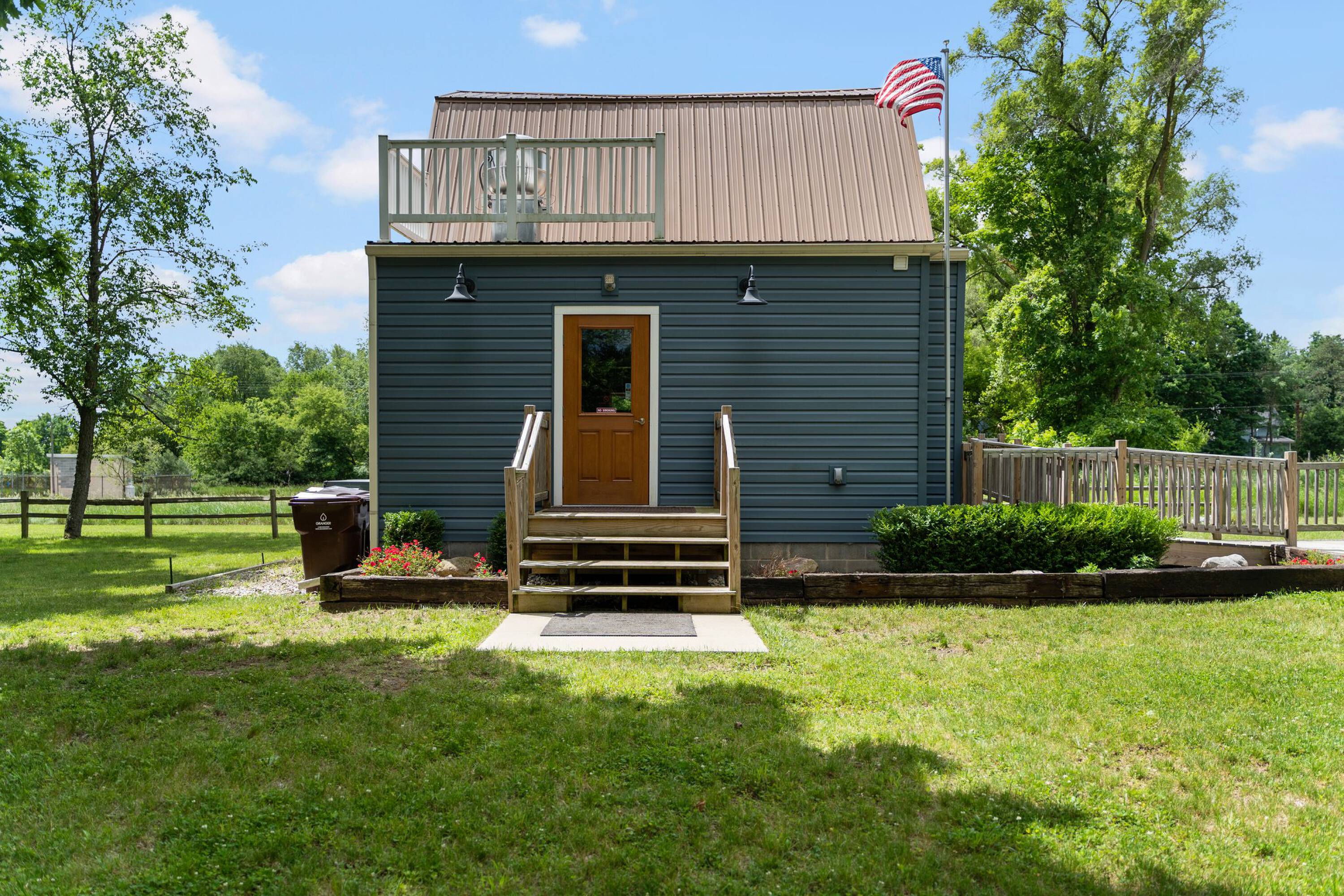 This historic building, renovated in 2019, is located along the Mike Levine Lakeland Trail in Stockbridge. The property offers a business opportunity for a new owner to establish a local establishment. It features a commercial kitchen and an included list of items. Potential uses include a sandwich shop, coffee shop, cafe, or bike shop. A ride-up window caters to horseback riders and bikers. The property has space for picnic tables or a gazebo in the yard. The location is near the middle of the trail, between Lakeland and Jackson. Park and basketball courts are within walking distance. An upstairs room is plumbed for a full bath and could be finished as an office, workspace, or studio apartment. The business is handicap accessible, with public parking nearby. The property size is 1440 square feet.