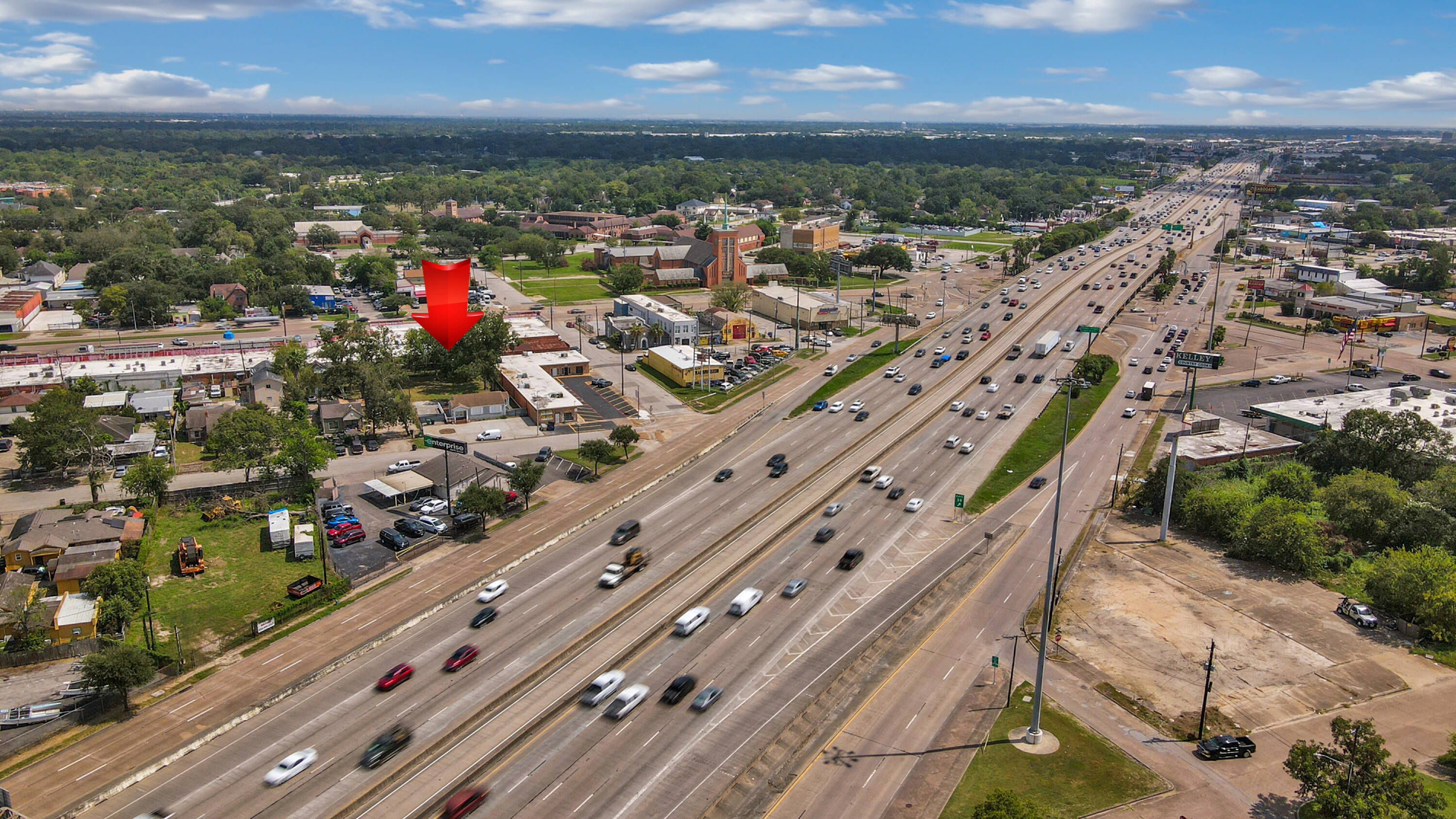 Versatile storefront with I-45 visibility and expansion potential.