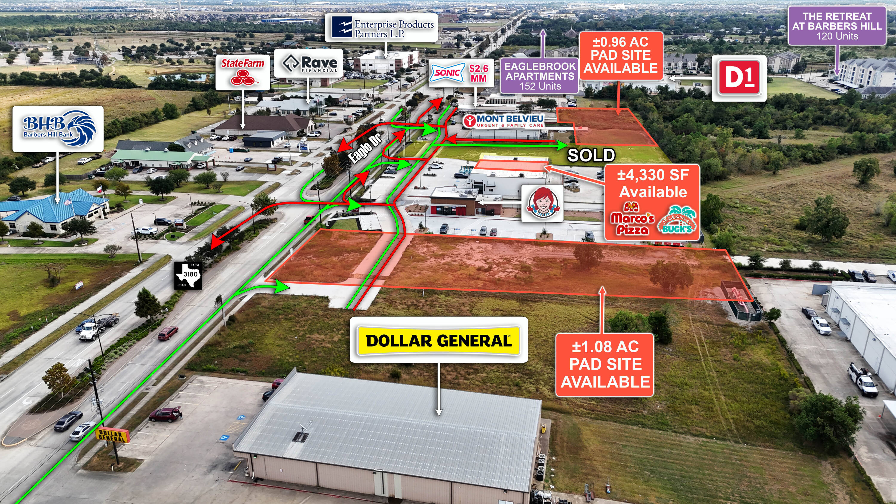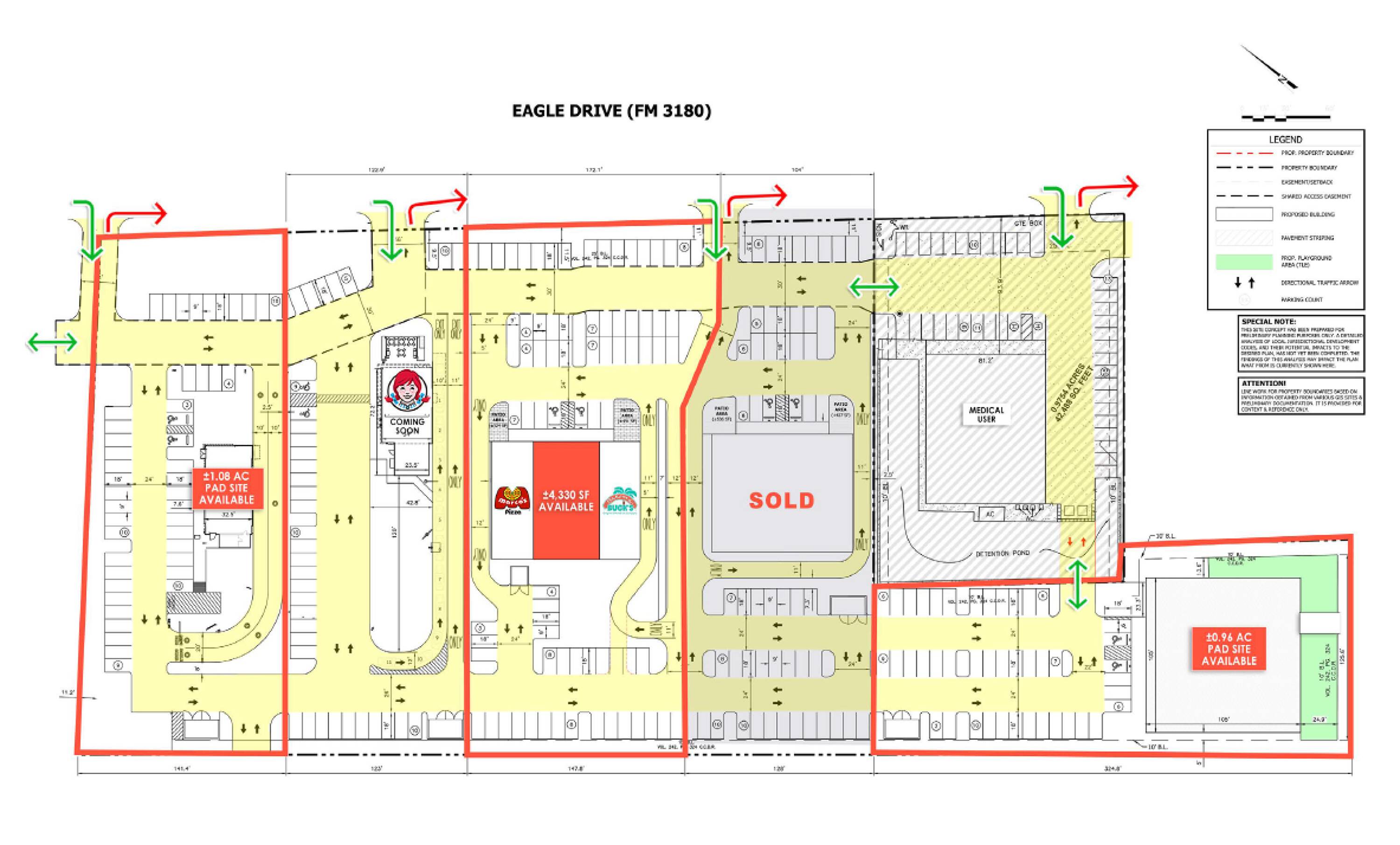 Pad site and shopping center space near Riceland community.